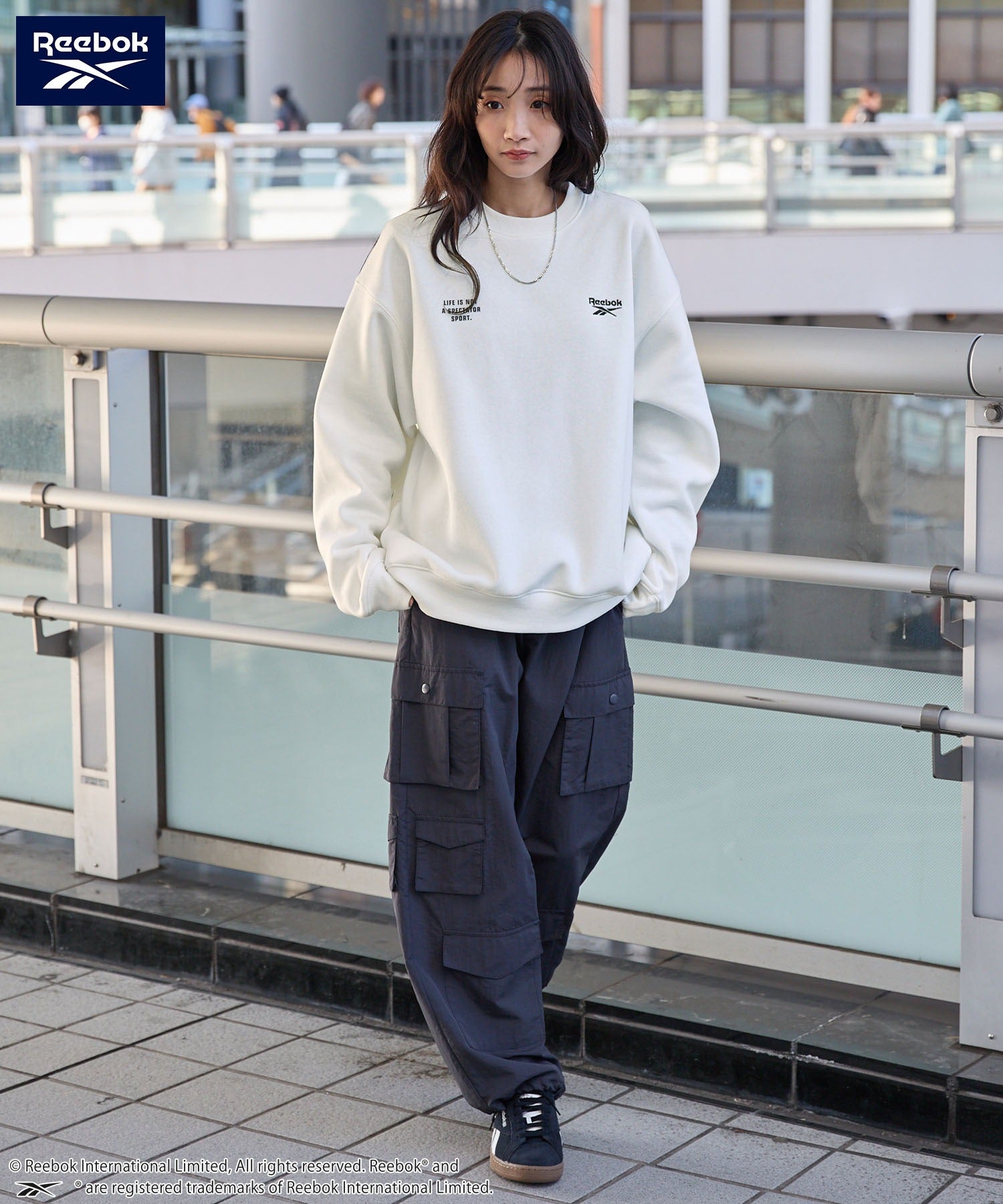 選用混紡聚酯與棉質的刷毛衛衣布料,內裡刷毛柔軟蓬鬆,觸感細膩,提供極佳的穿著體驗,胸前有 Reebok 的刺繡與印花,領口採用簡約標準的圓領設計,經典百搭。寬鬆的版型設計,男女皆可輕鬆駕馭。