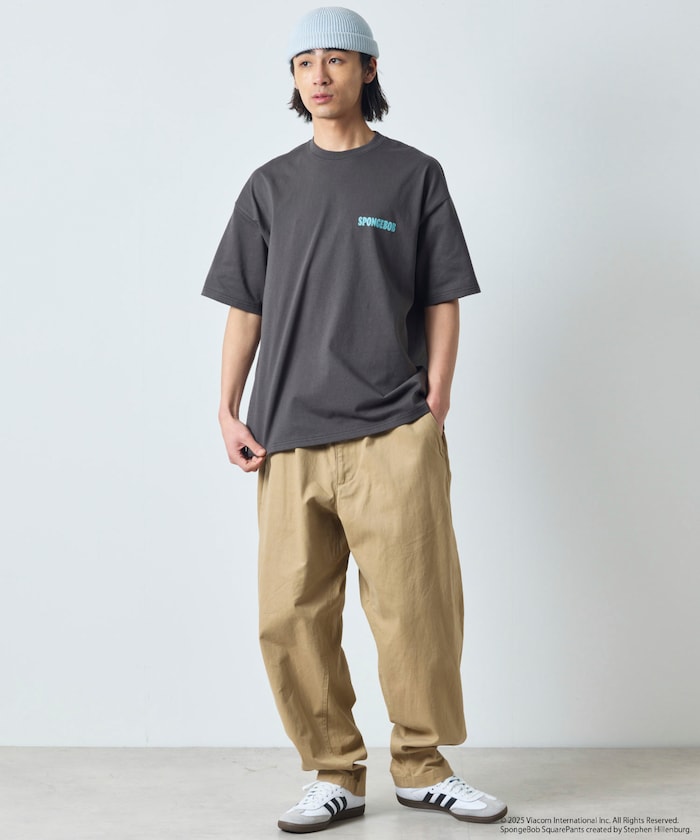 限定的 SPONGEBOB 海綿寶寶T恤上衣,背面印有海綿寶寶原創設計圖案,展現玩趣潮流風格。胸前則為簡約的 SPONGEBOB 標誌,經典百搭不單調。適度的Oversize剪裁,無論男女皆可輕鬆駕馭,適合情侶、好友穿搭,是一件能輕鬆融入日常造型的實用單品。