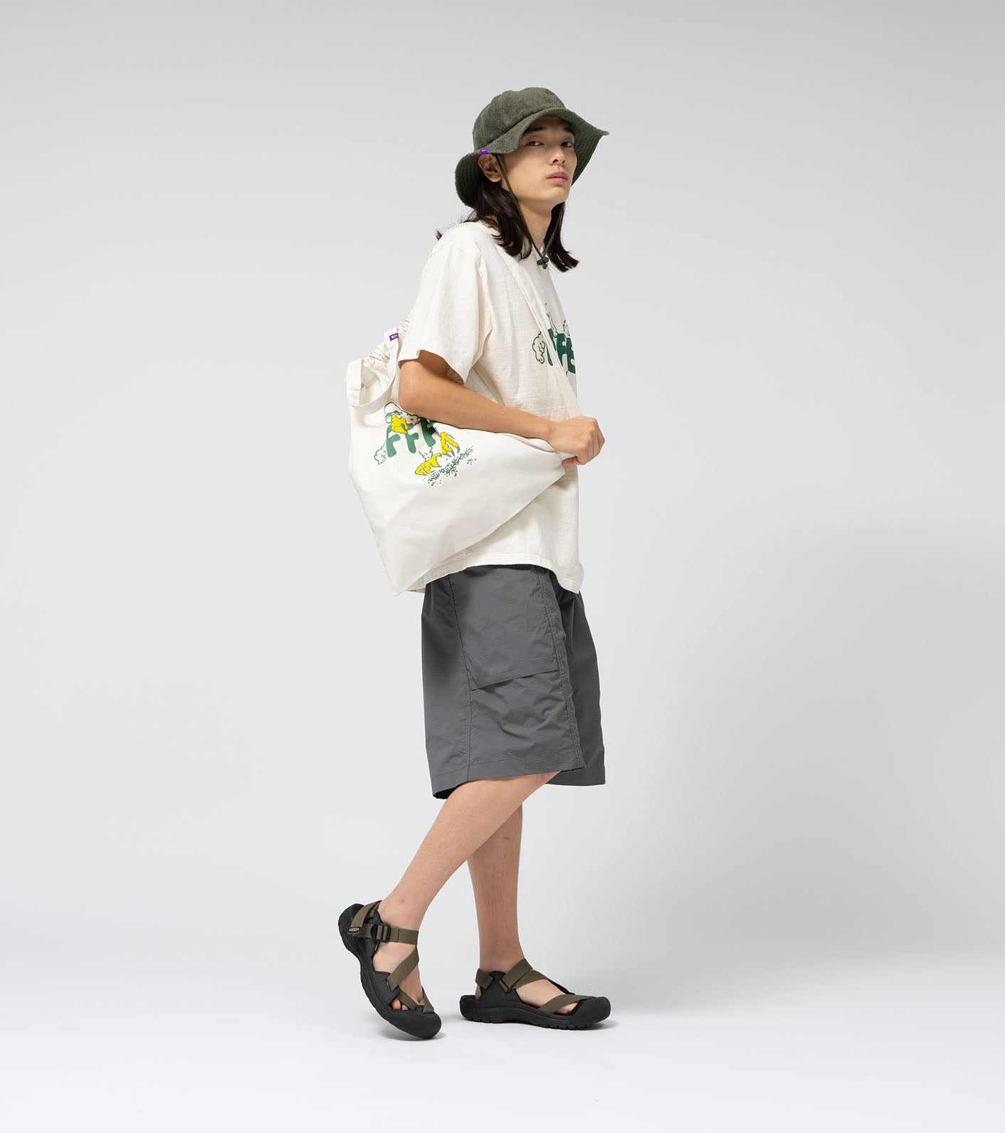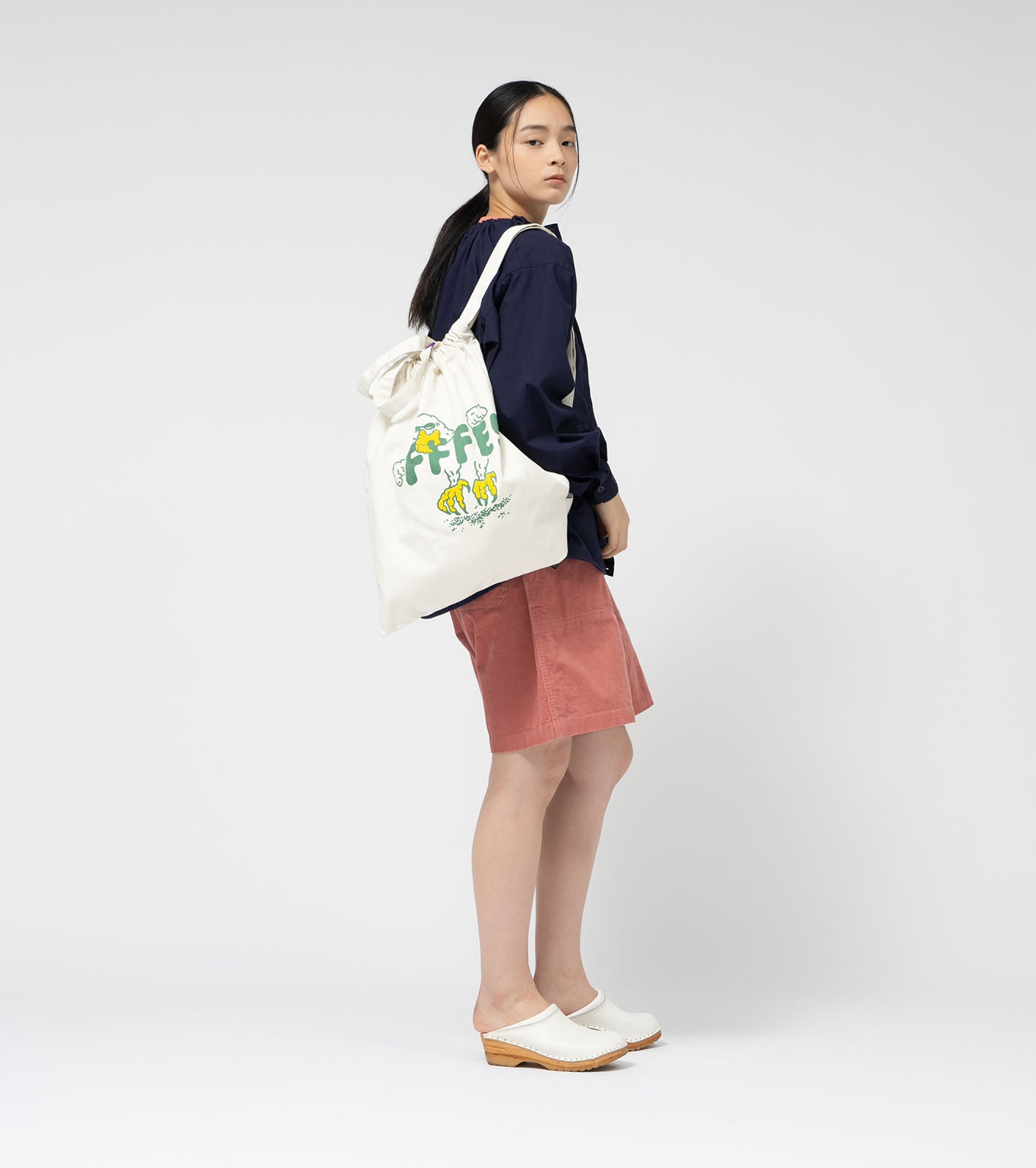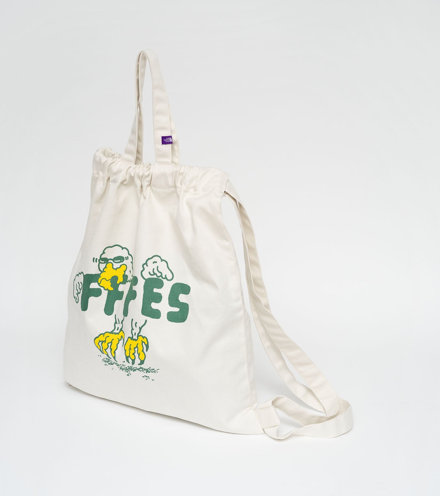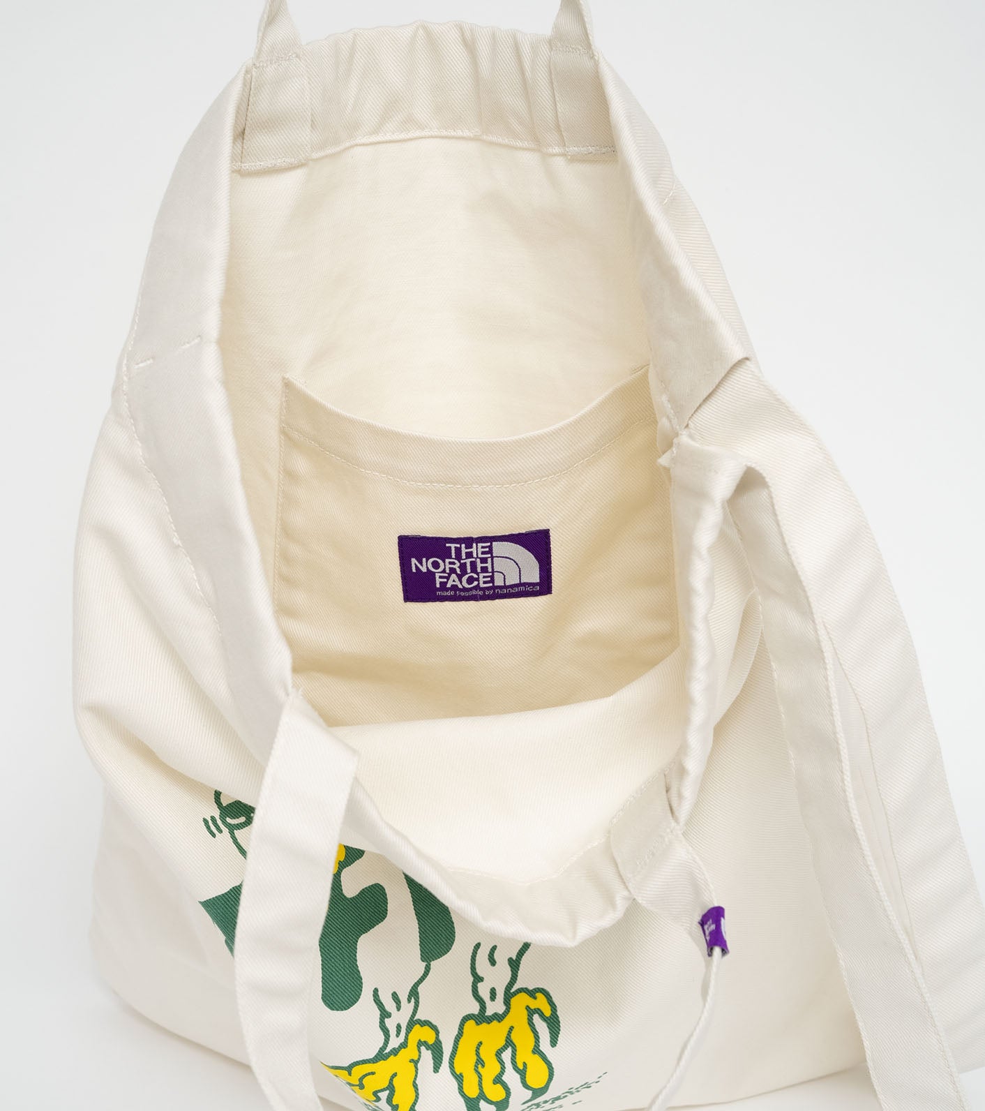 採用有機棉斜紋布製成的托特包,以日本瀕臨絕種的日本金雕為主題創作的設計,正面印有藝術家m2n創作的藝術作品,提把上縫有 THE NORTH FACE Purple Label 品牌標籤,可依照需求肩背或手提。