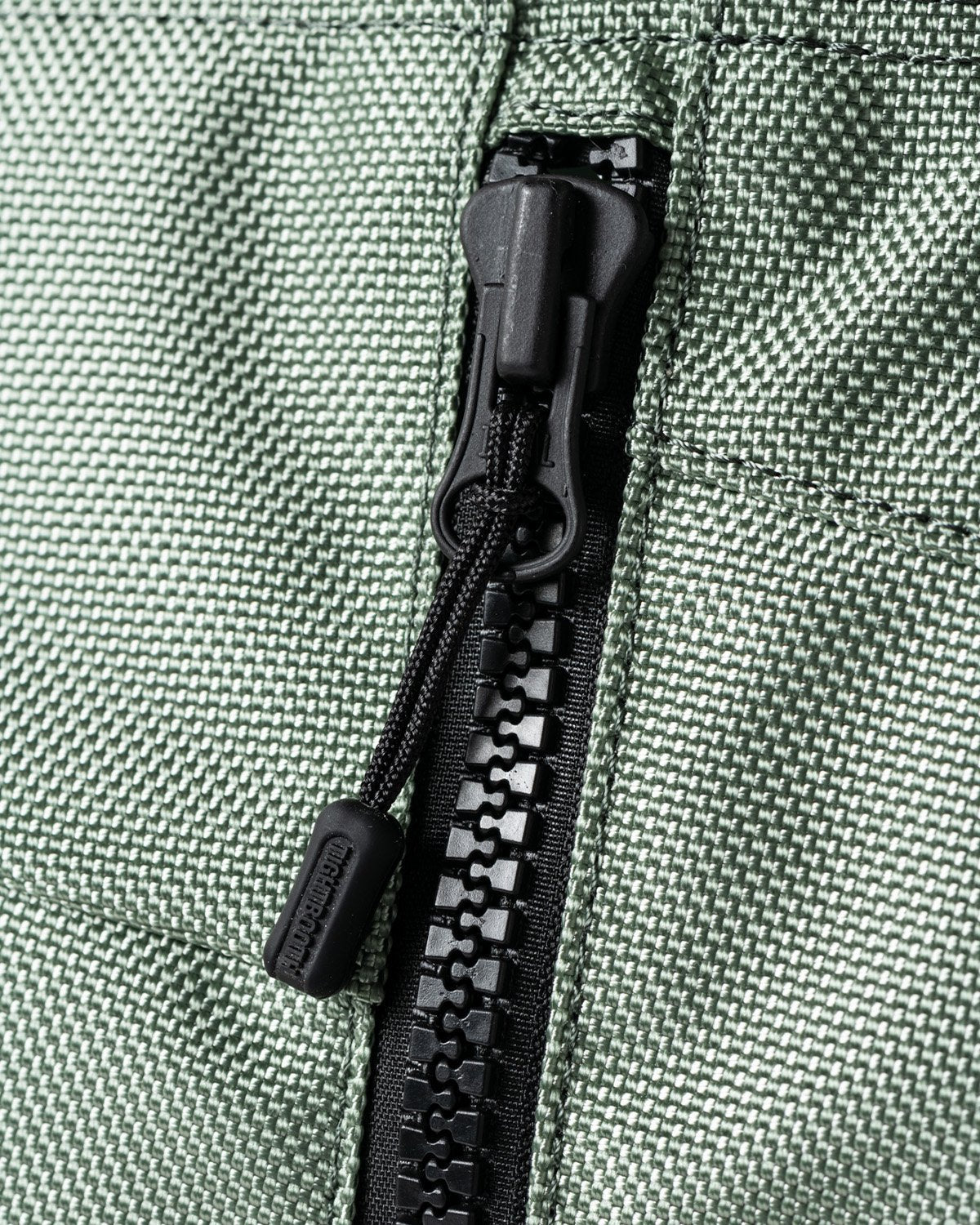 商品採用尼龍面料,包包正反兩面採用不規則拼接設計,正面沿著設計線條設有兩個拉鍊口袋,內部也設有拉鍊內袋,方便收納小物。正面右側口袋有品牌標誌,口袋及拉鍊頭等個細節處皆展現精緻的設計感,除了手提還附有可調整長度的肩背帶,可依個人需求做調整。