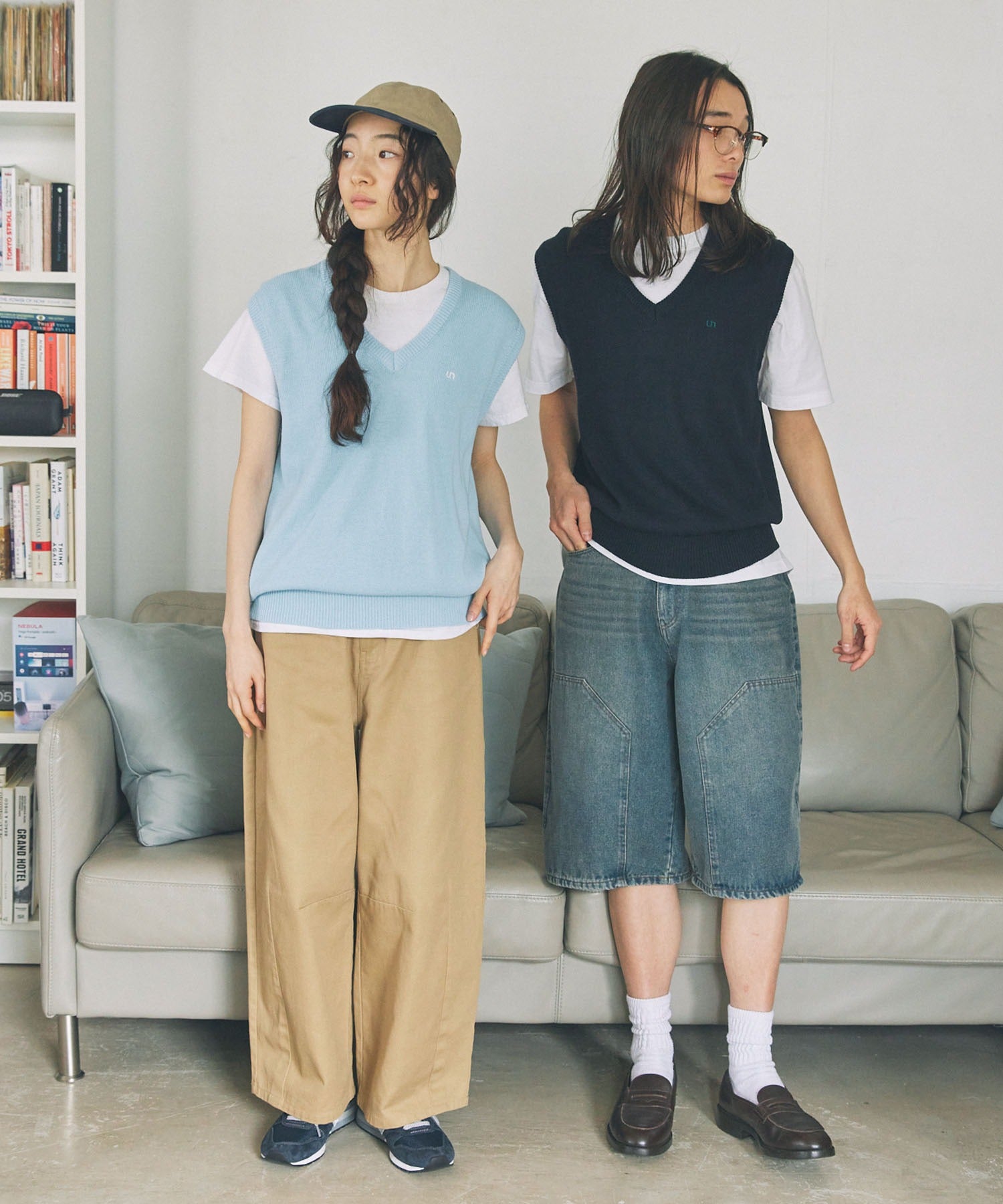 散發經典氣息的V領針織背心,簡約卻不失設計感,俐落的V領剪裁搭配撞色品牌標誌,成為造型亮點。寬鬆的剪裁及加寬的袖口設計,提供輕鬆舒適的穿著體驗,恰到好處的中長版型,無論是紮進褲子內或自然垂墜穿搭都很適合,採用中性設計,無論男女皆可輕鬆駕馭。