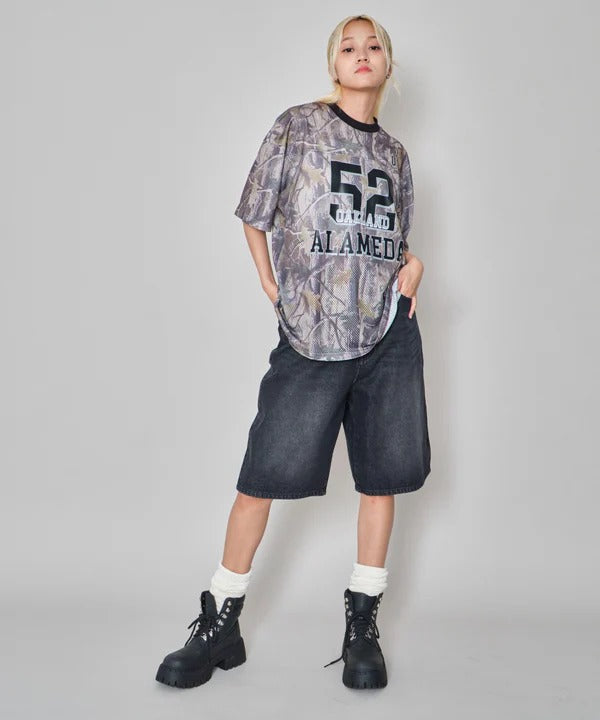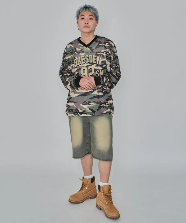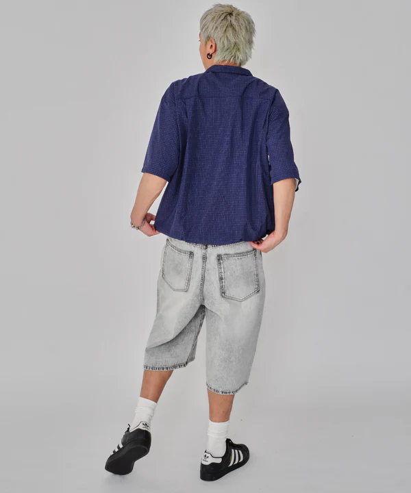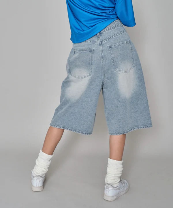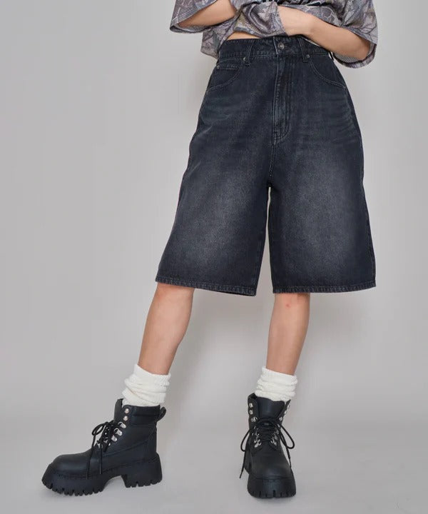 以喇叭褲為基礎設計,轉化為短褲版型,可輕鬆駕馭休閒、簡約、街頭等風格。寬鬆剪裁設計,穿著感受輕鬆自在,帶有復古氛圍的設計,為穿搭增添特色,適中的膝上長度,展現率性俐落感,是一款能長時間穿搭、變化多樣又實穿的萬用短褲。