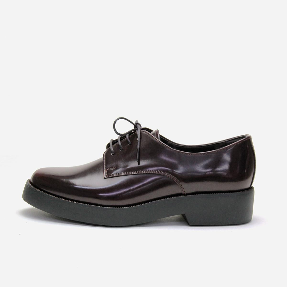 超越外觀想像輕盈及柔軟的 EX 綁帶鞋,鞋面採用鍍膜玻璃皮革,打造出獨特的光澤感,鞋底選用 EXTRALIGHT® 材質,具備輕量、柔軟及優異的緩震性能,讓步行更加舒適。鞋跟約 40mm,整體為厚底設計,提供穩定的支撐感,簡約的設計搭配適中的份量感。