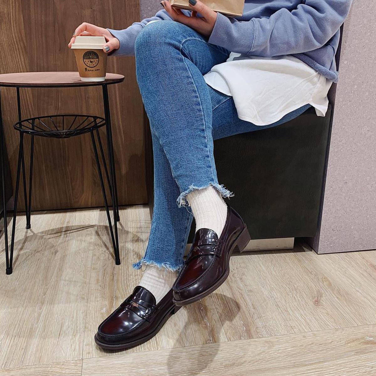 鞋面採用經塗層處理的亮面玻璃皮革,打造出光澤感十足的特色鞋款,搭配棕色鞋底作為低調的點綴。簡約的樂福鞋設計,搭配從鞋面到鞋尖的俐落線條,無論休閒或略帶正式的穿搭都能完美契合,鞋內空間設計較大,可搭配另售的配件自由變化造型,增添穿搭樂趣。