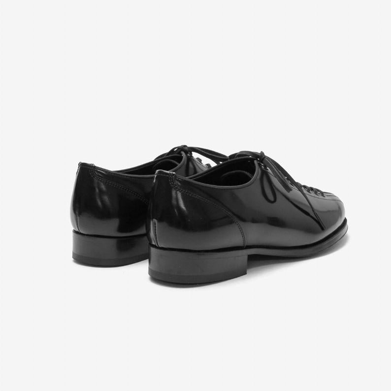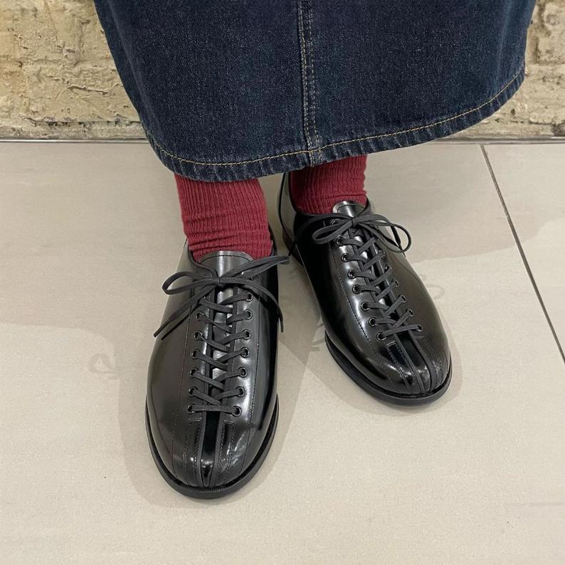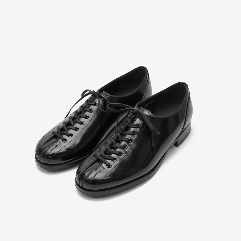 鞋面採用了 塗層處理的玻璃皮革,讓這雙鞋擁有獨特的光澤感。同時,選用了 比一般玻璃皮革更柔軟的材質,讓穿著時感受到更高的舒適度和靈活感。內底與鞋墊皆內置雙層海綿 (Double Sponge) 緩衝設計,大幅提升避震與支撐性,確保長時間行走依然輕鬆舒適。設計靈感來自 1950年代美式保齡球球鞋,鞋面設有 8個精緻的鞋帶孔,可以根據需要精確調整鞋帶,讓鞋子能更貼合腳部,提升舒適度與穩定感。雖然是皮鞋,但也加入了運動風格的元素,讓它不僅適合正式場合,也能輕鬆搭配休閒風格,無論是西裝還是牛仔褲,都能輕鬆駕馭。