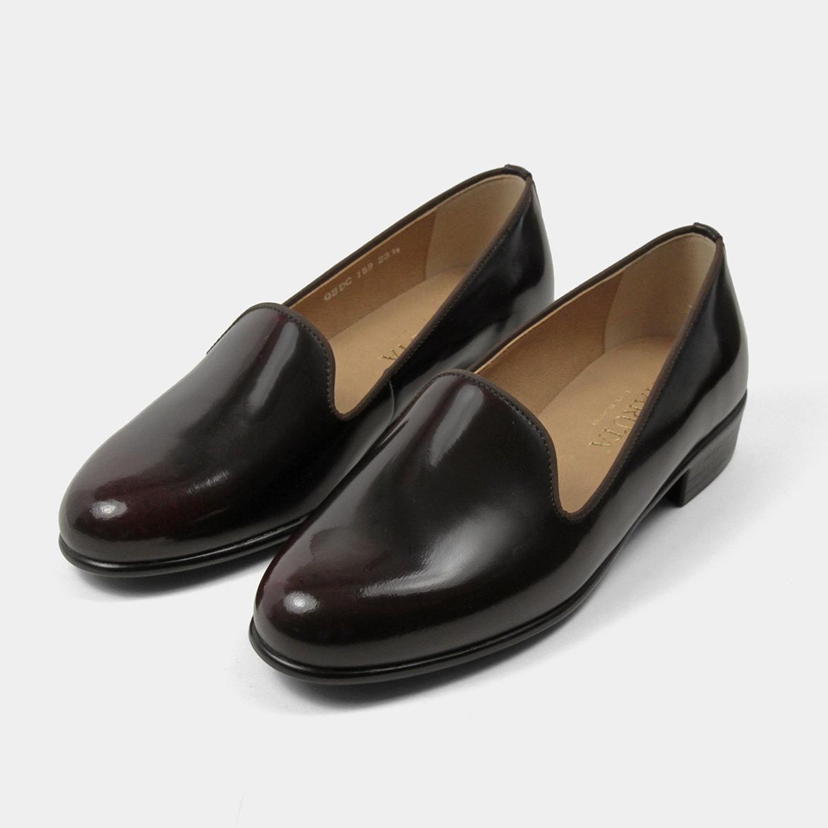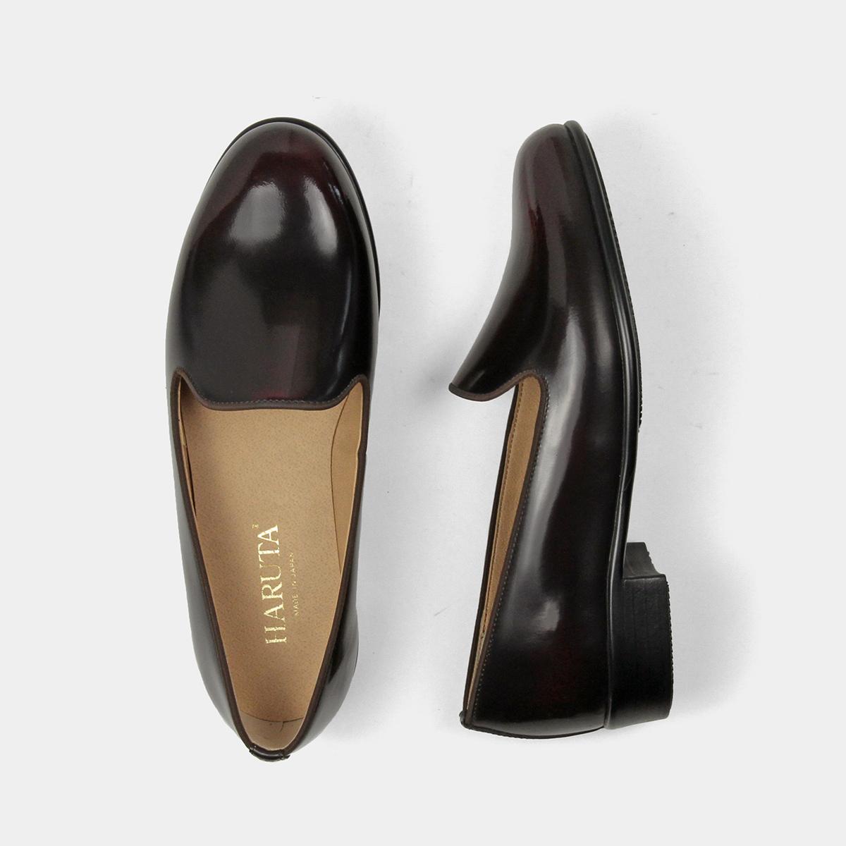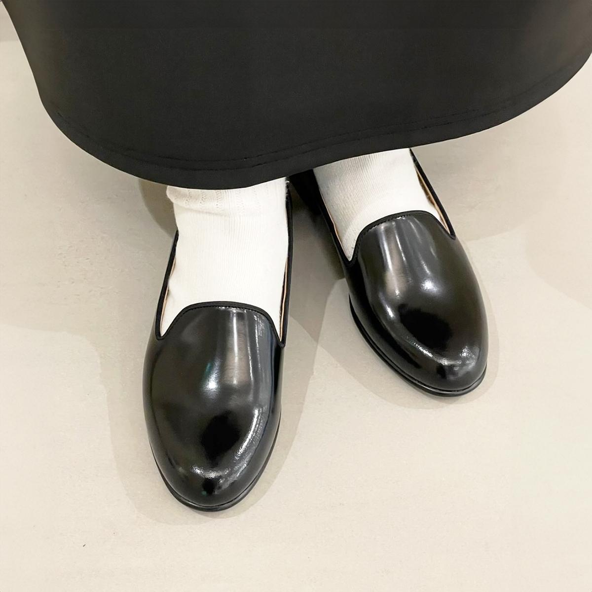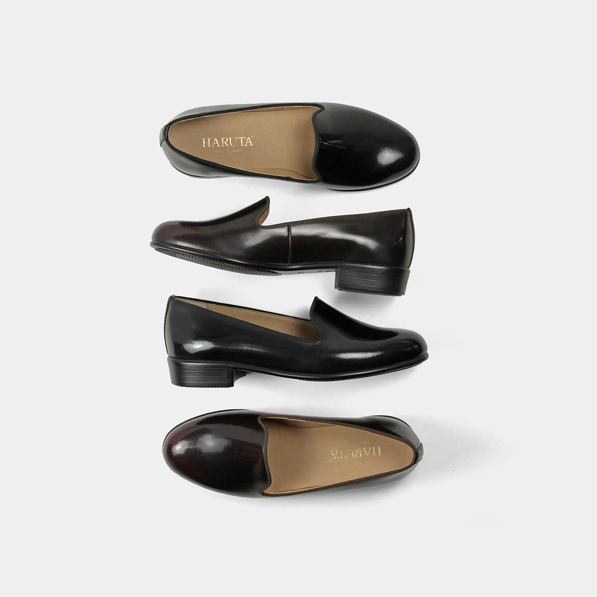與HARUTA經典Spock Shoes #150所使用的楦頭相同,這款鞋擁有圓潤的鞋型與俐落簡約的輪廓,是一雙兼具優雅與實用性的經典鞋款。鞋面選用經過塗層處理的亮面皮革,呈現出光澤感十足的精緻質感,內裡與鞋墊則採用柔軟、透氣性佳的材質製成,減少悶熱感,實現舒適乾爽的穿著體驗。極簡的設計風格不過於張揚,無論是上班通勤、正式場合或是日常外出穿搭,皆能自然融入。