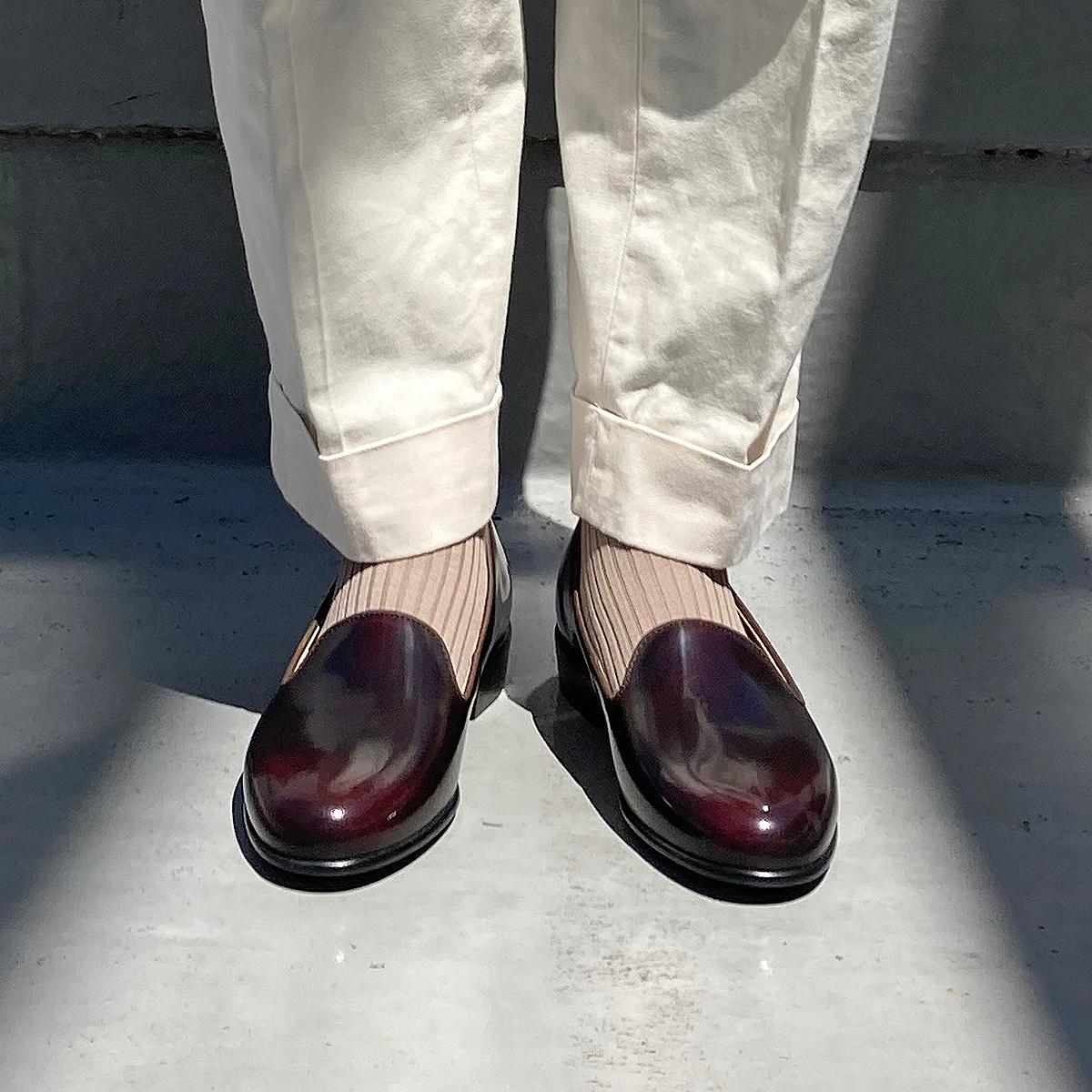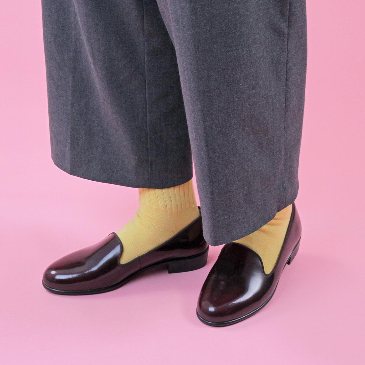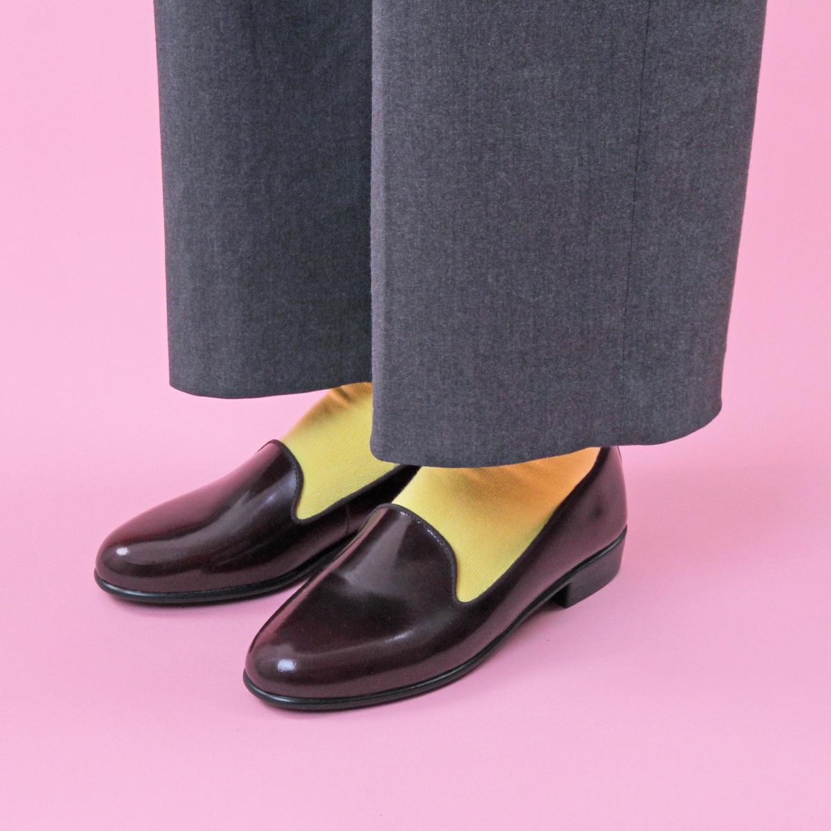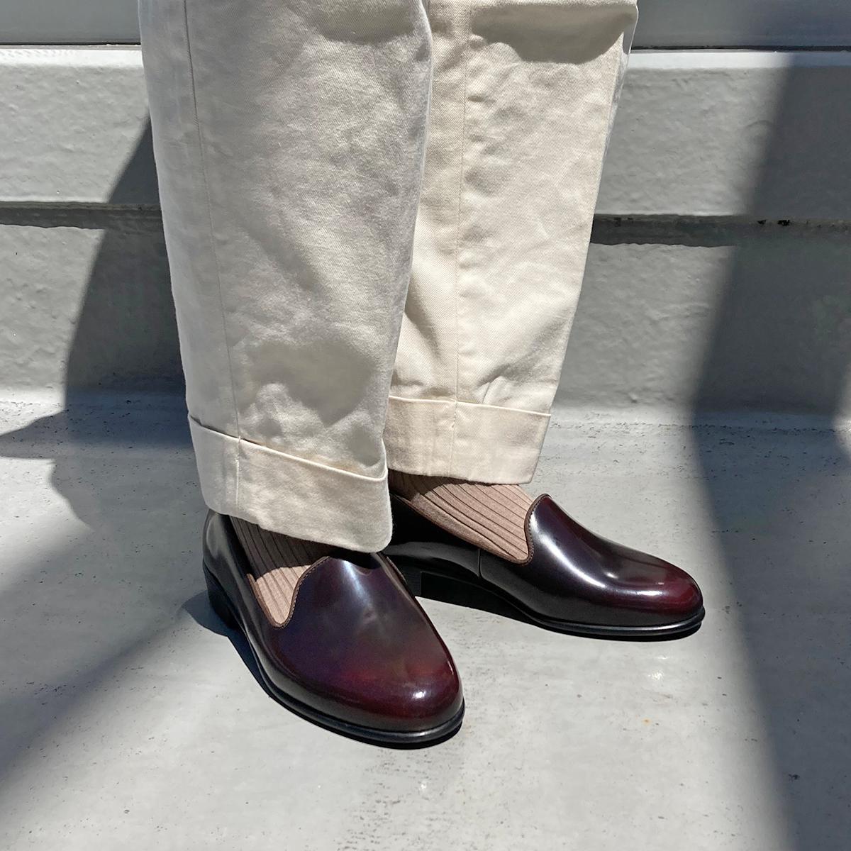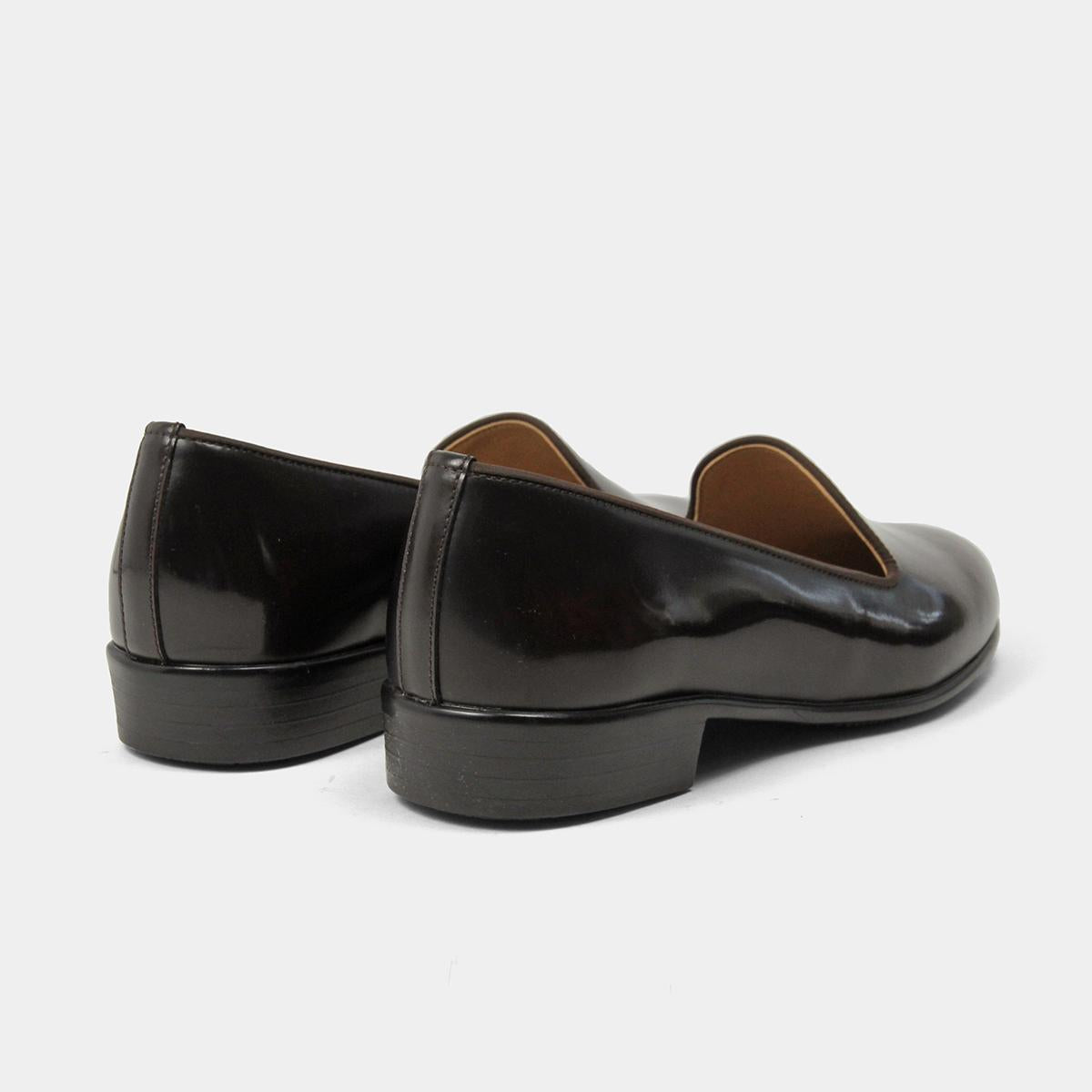 與HARUTA經典Spock Shoes #150所使用的楦頭相同,這款鞋擁有圓潤的鞋型與俐落簡約的輪廓,是一雙兼具優雅與實用性的經典鞋款。鞋面選用經過塗層處理的亮面皮革,呈現出光澤感十足的精緻質感,內裡與鞋墊則採用柔軟、透氣性佳的材質製成,減少悶熱感,實現舒適乾爽的穿著體驗。極簡的設計風格不過於張揚,無論是上班通勤、正式場合或是日常外出穿搭,皆能自然融入。