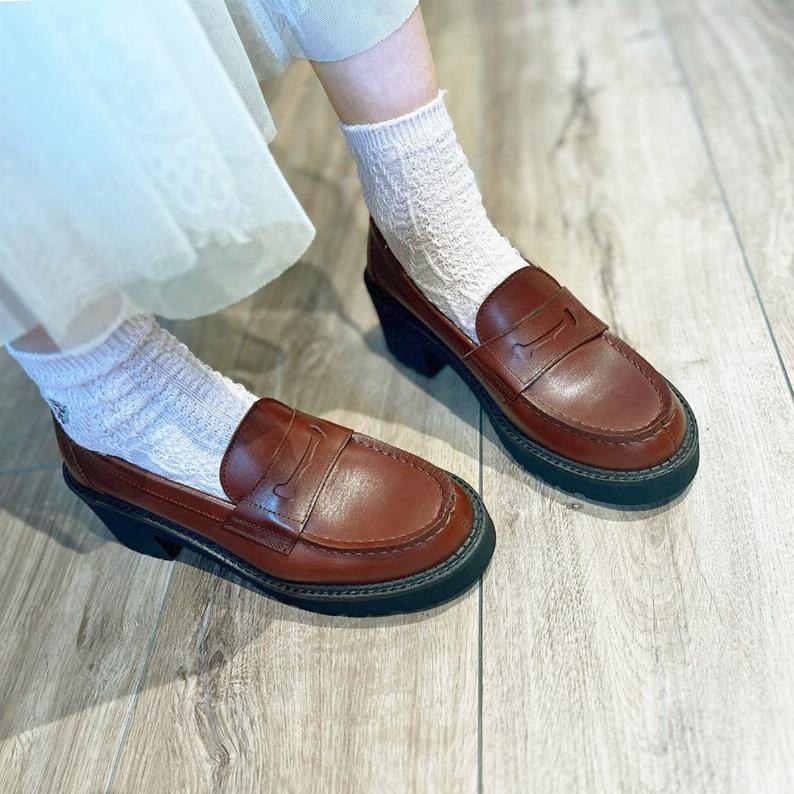此款鞋子為品牌經典 #7400 交叉綁帶鞋款的升級版本,鞋面採用了Scotchgard防水光滑皮革,皮革的光澤感較為低調,加入了輕量且具緩衝性能的EXTRALIGHT® 鞋底,以其厚實的鞋跟,以及使用更具風味的皮革,帶來全新的外觀和穿著感受。這款鞋的設計具備經典的樂福鞋鞋型,擁有濃厚的復古氣息。增高設計的厚底設計,高約 5.5cm 的鞋跟,不僅能增加身高,還能帶來穩定的支撐感,鞋跟較粗,走路時也能感受到更加穩定的步伐。
