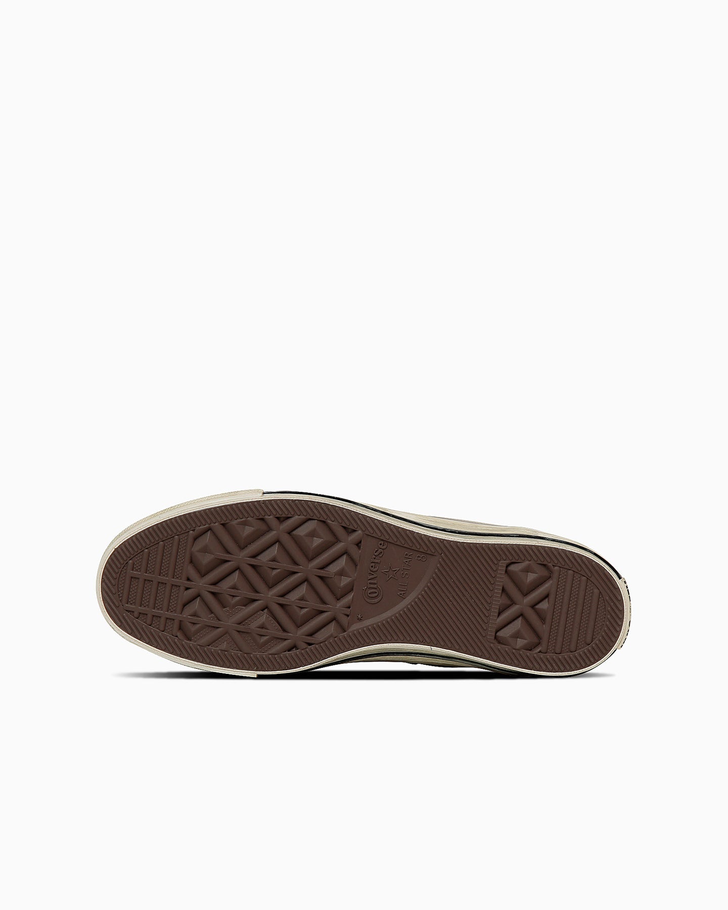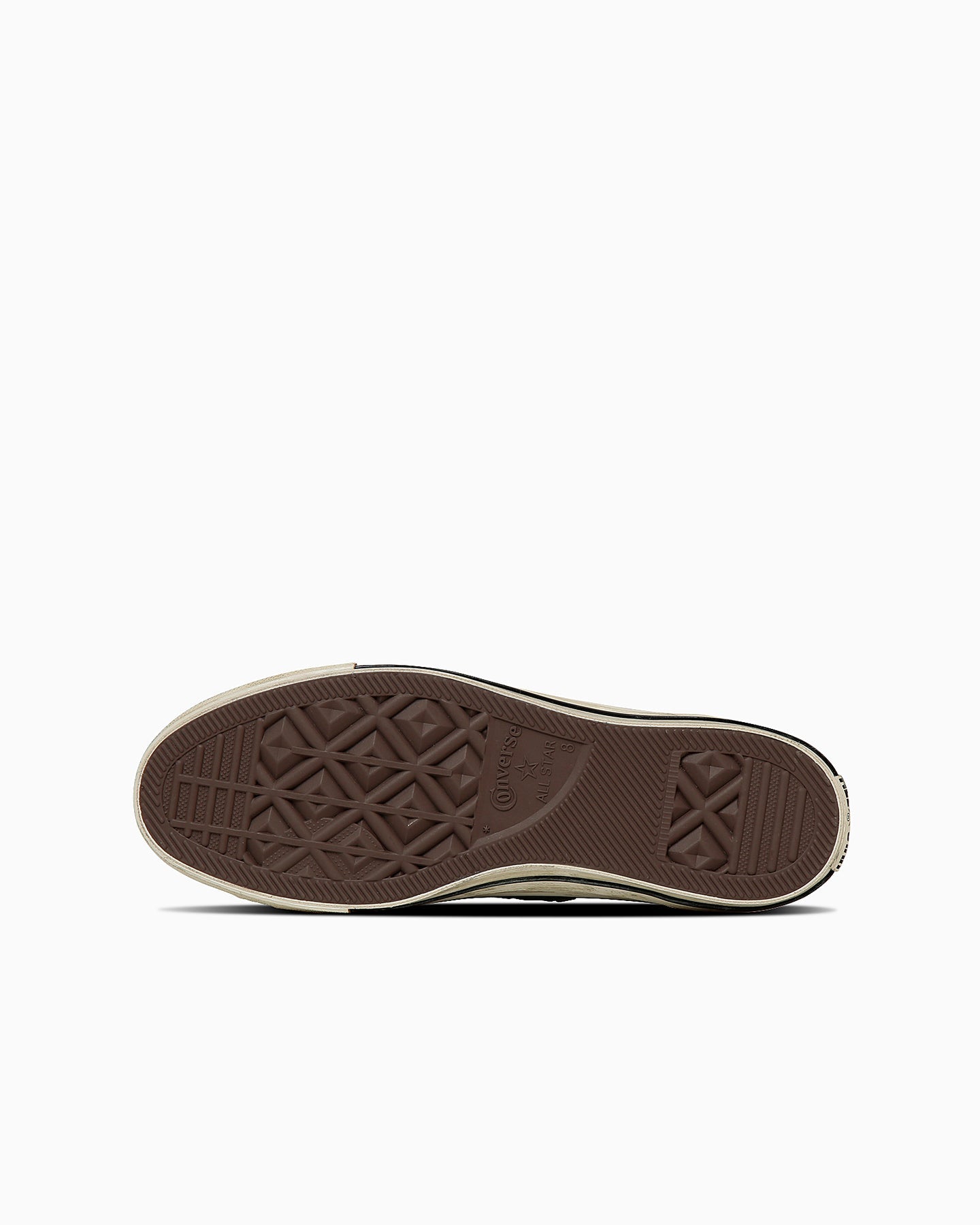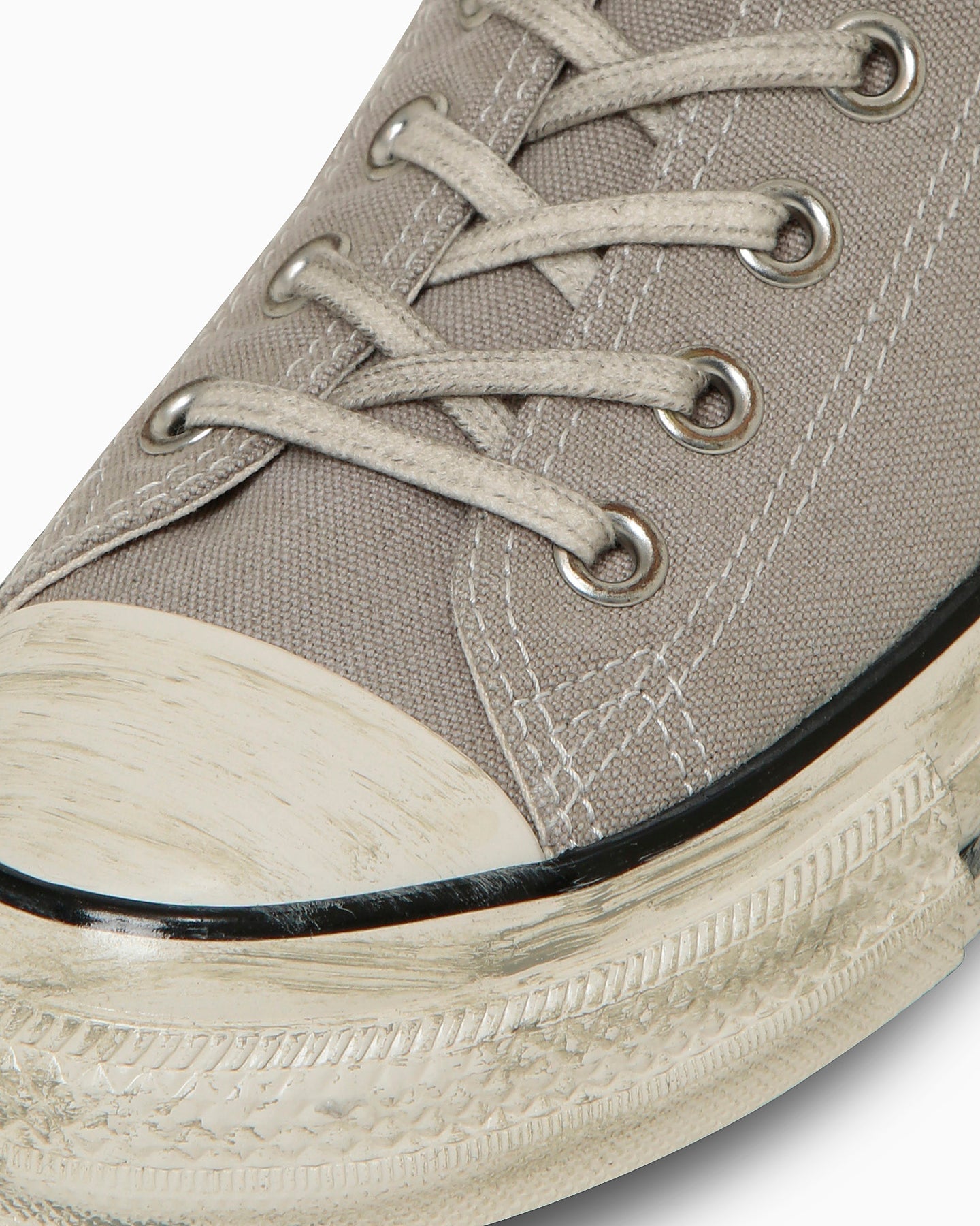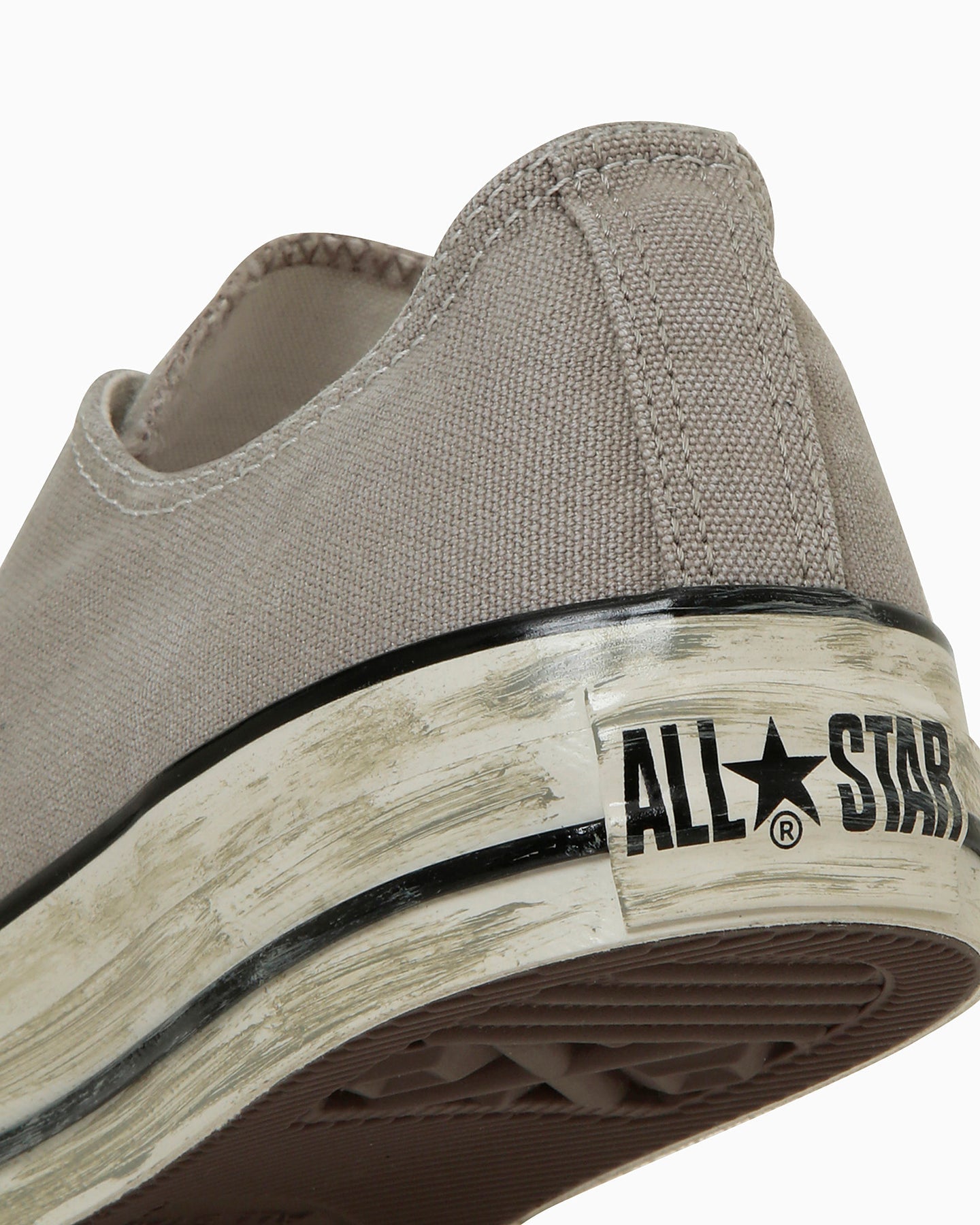 All Star 經典鞋款的復古細節改良版,鞋面採用經過特殊水洗與漂白工藝處理的帆布材質,並在鞋帶與側邊膠條上加入刷舊加工,呈現出如同長時間穿著後自然磨舊的氛圍。