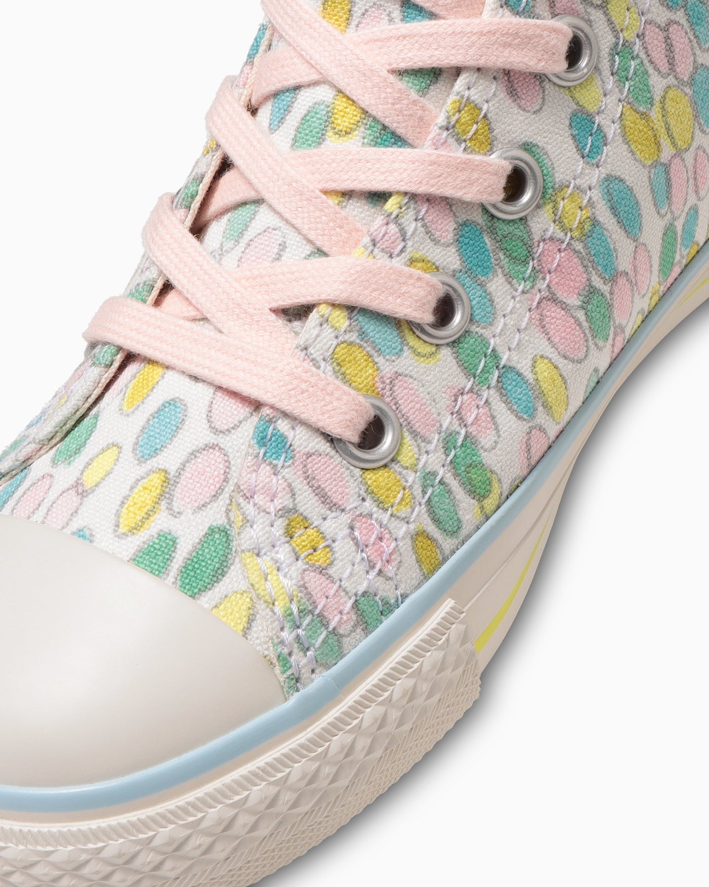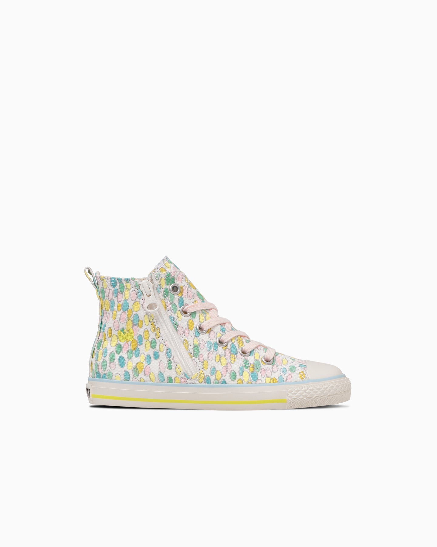 All Star N 兒童版的材質變化款,與品牌 Minä Perhonen 攜手合作推出的限定款。鞋面採用了 Minä Perhonen 設計的 jellybeans 圖案印花材質,整體設計採用柔和的粉彩色調,展現了 Minä Perhonen 的獨特風格。鞋墊印有品牌標誌,側邊的拉鍊設計方便孩子自行穿脫,結合了機能性和設計感,另外還附有水藍色的替換鞋帶。