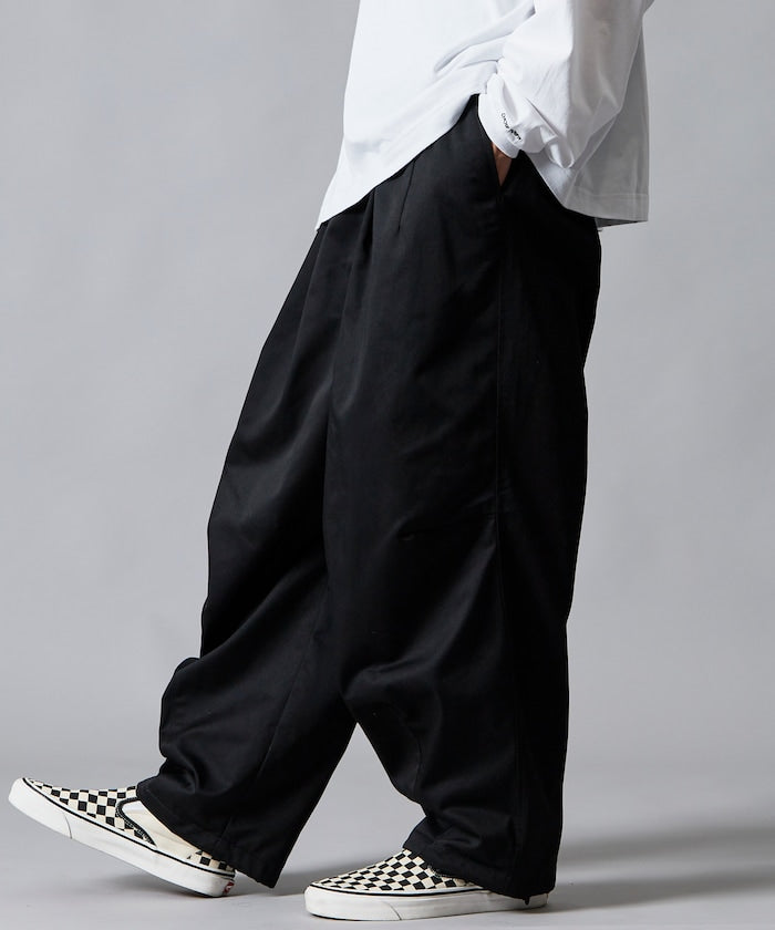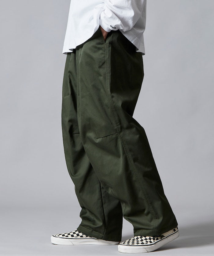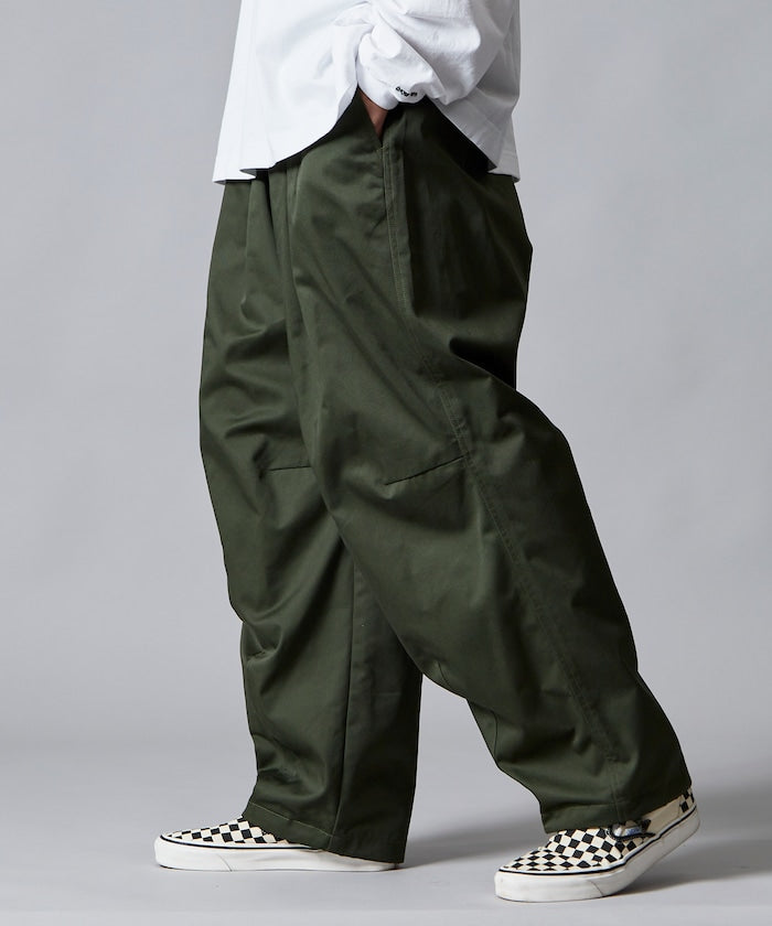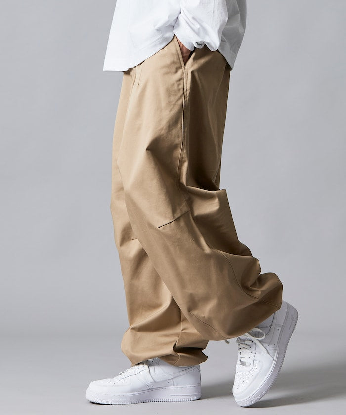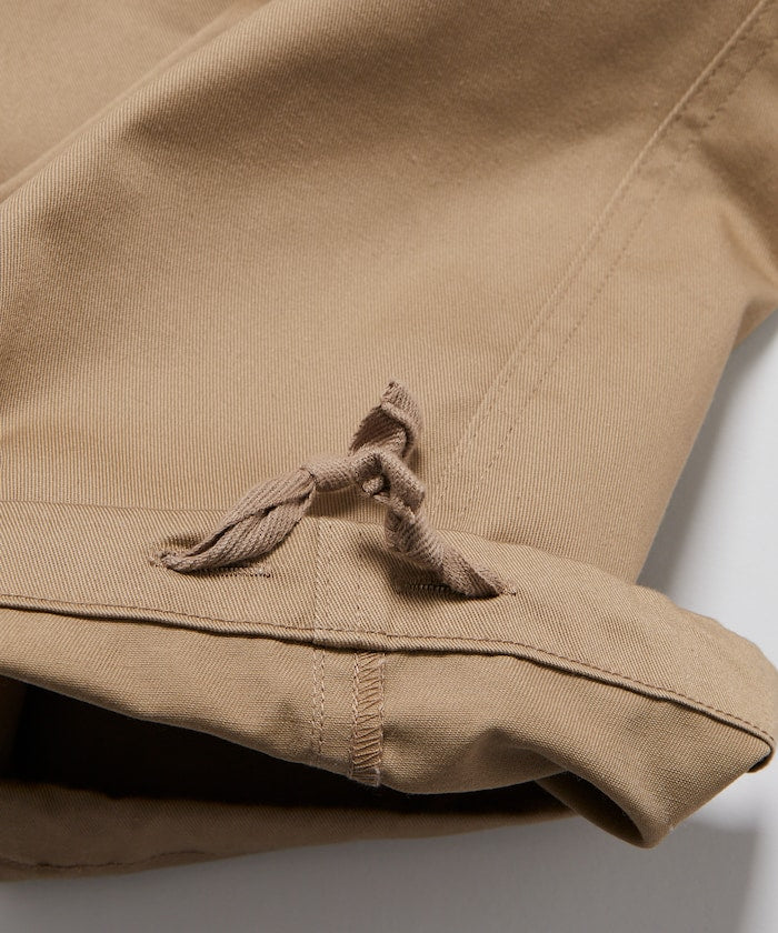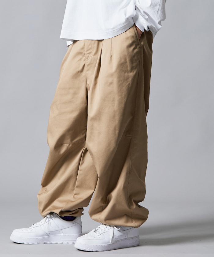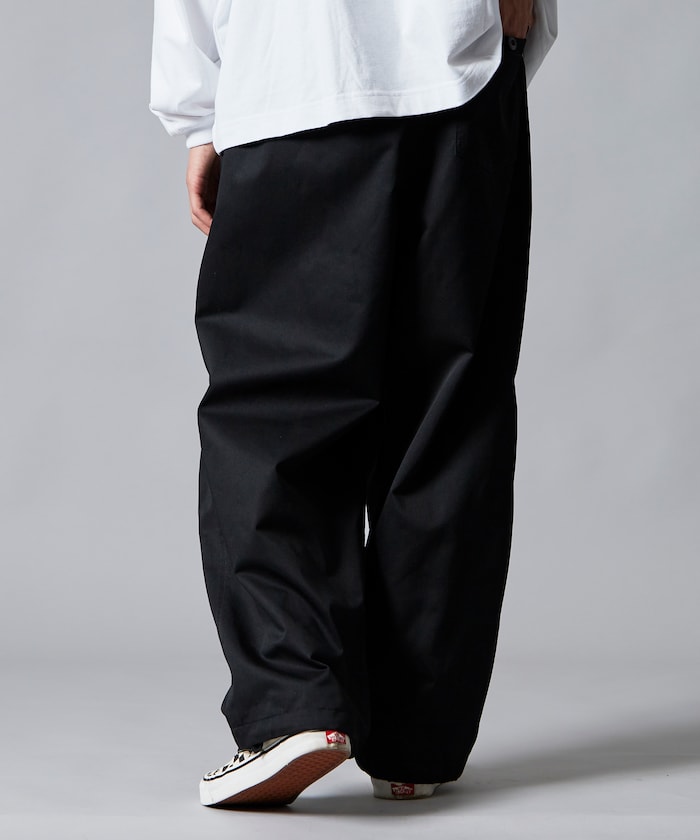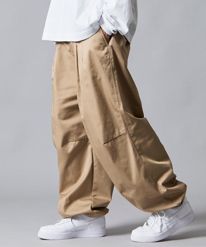這款褲子以其獨特的寬鬆輪廓與細節設計而聞名,腰部的褶皺與褲腳的打摺設計,營造出類似滑雪褲的蓬鬆感,增加整體的立體層次感。此外,褲身設有翻蓋口袋及抽繩,增添濃厚的軍裝風格。布料柔軟且具有適當的挺度,非常適合四季穿著。