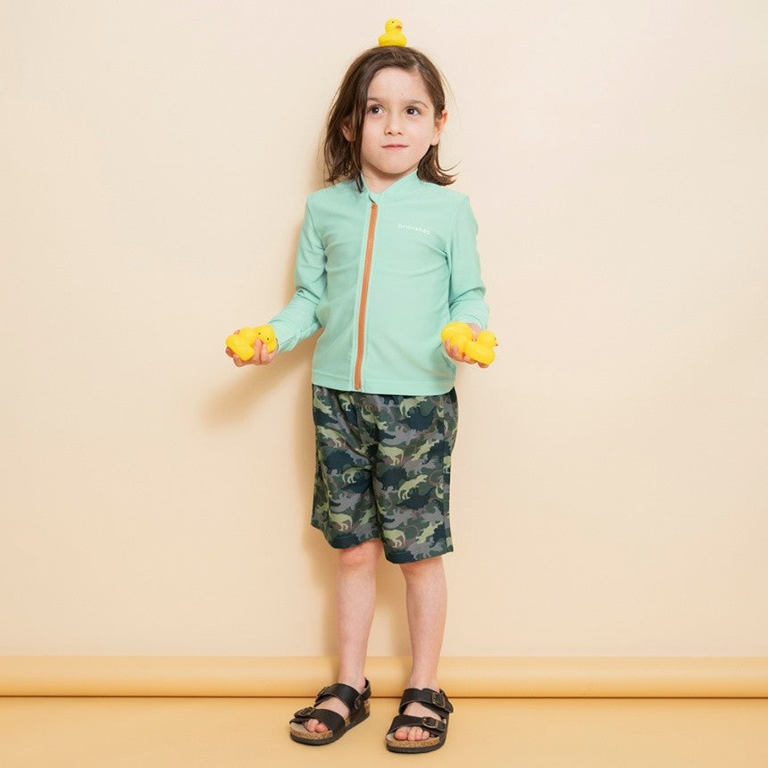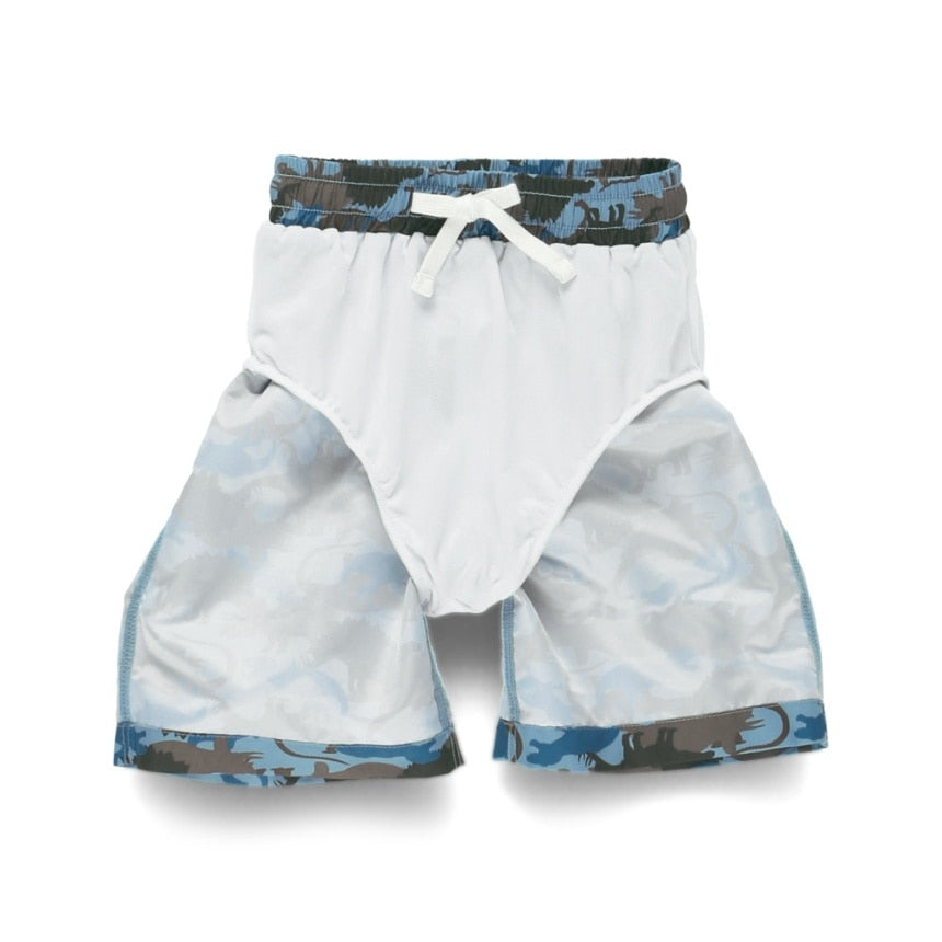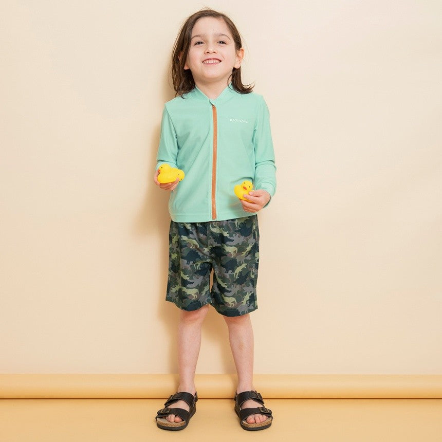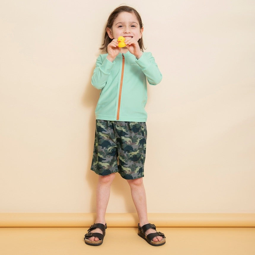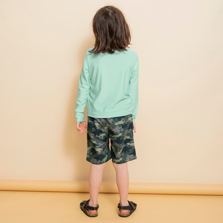 採用了酷炫的恐龍迷彩風印花設計,外型帥氣十足,是一款非常適合玩水的 UV 防曬機能商品,內側附有細緻布料製成的內裡,親膚舒適、穿著感佳,臀部口袋設有排水孔,設計貼心實用。