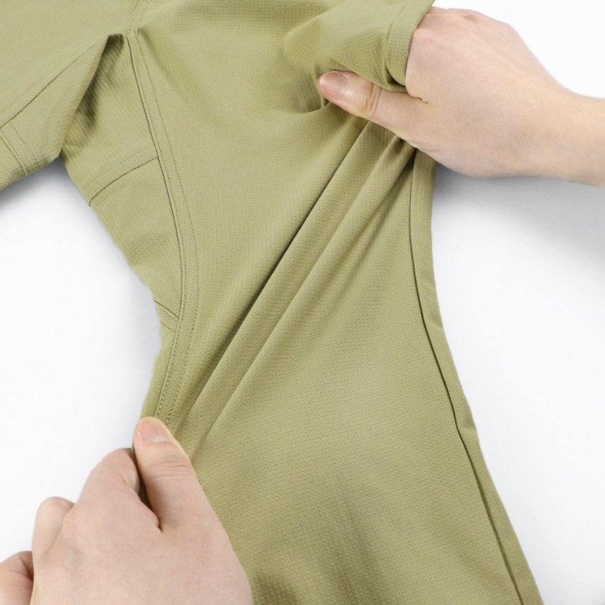 採用具備優異吸汗速乾機能的布料,迅速吸收汗水、不易悶熱,即使在酷暑中也能保持清爽舒適,腰部裝飾的工裝風格束帶設計,增添一抹成熟質感。