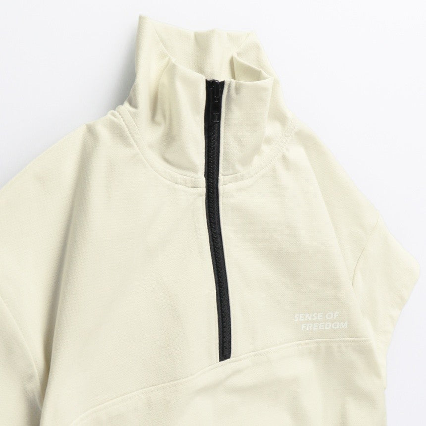 使用吸汗速乾素材,快速排汗不悶熱,讓炎夏也能清爽自在,輕盈舒適的穿著感受,兼具機能與時尚。半拉鍊設計,造型感升級,穿脫方便,簡約卻講究的剪裁與材質,打造有型的穿搭。顏色:黑色、白色