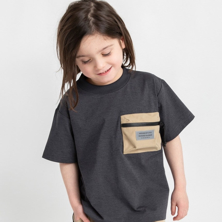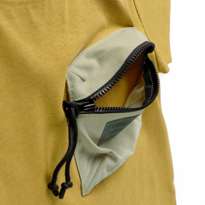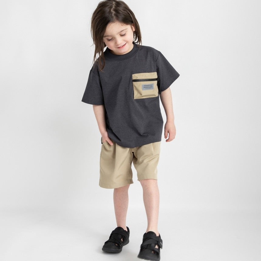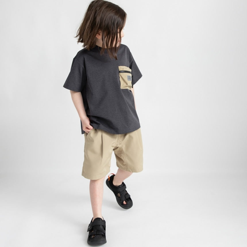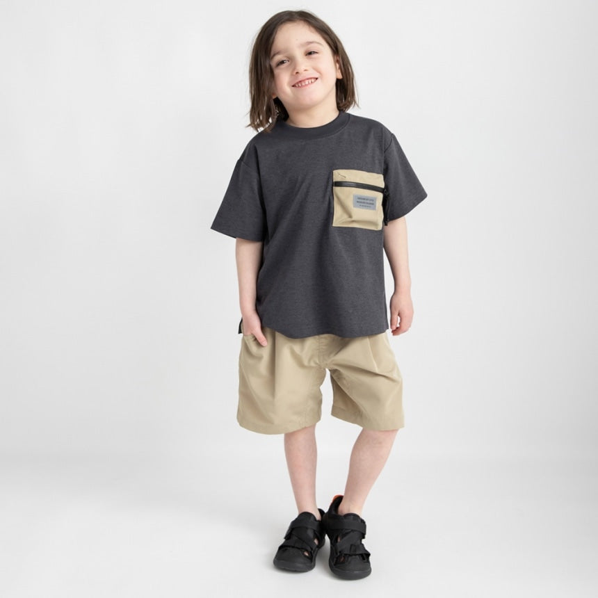 使用具彈性的聚酯纖維材質製成、帶有口袋的短袖T恤,具備吸濕速乾機能,即使在夏天也能保持乾爽、活動自如,此外,擁有 UPF45 的防曬效果,胸前配有拉鍊式大口袋,成為設計上的一大亮點。