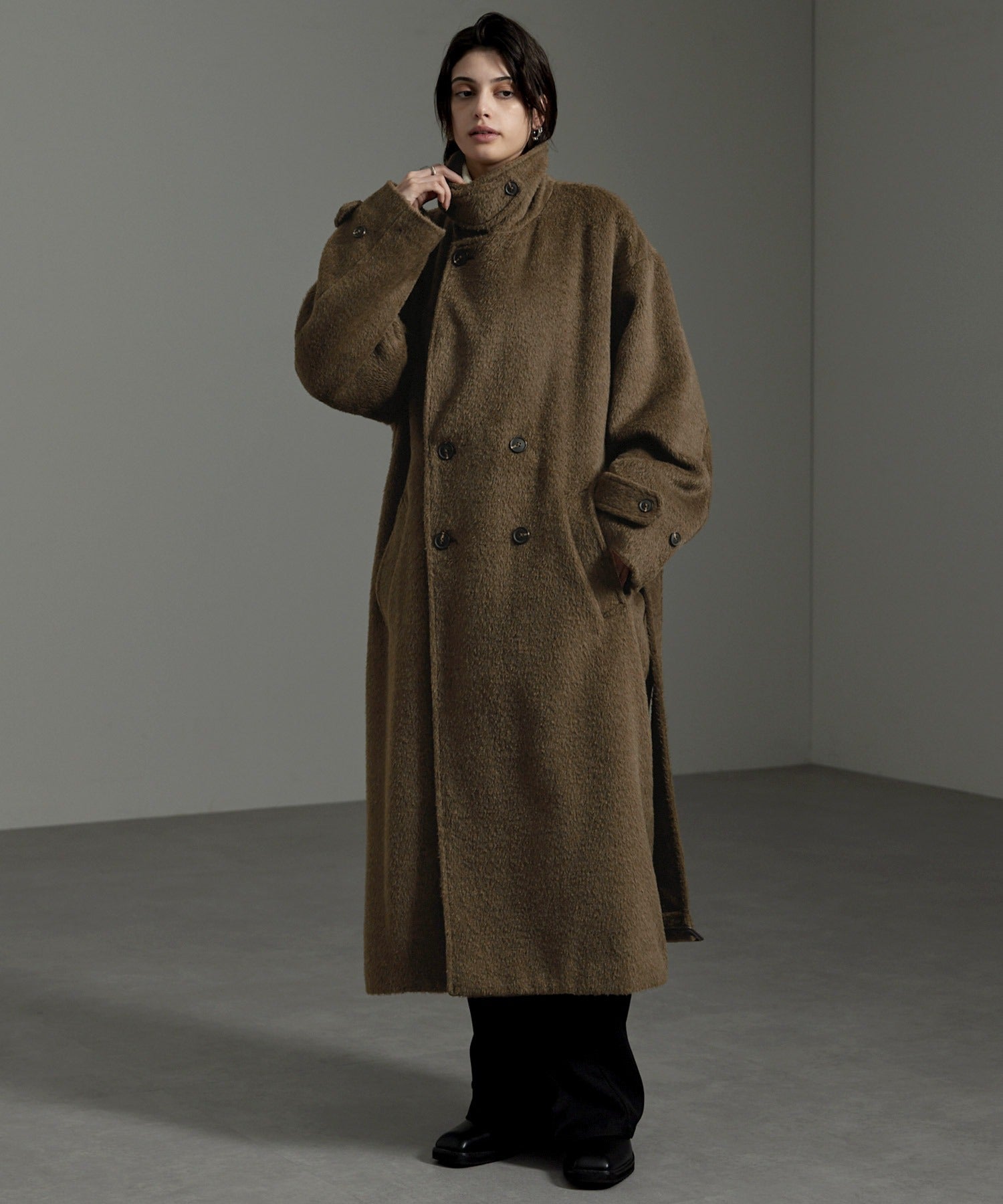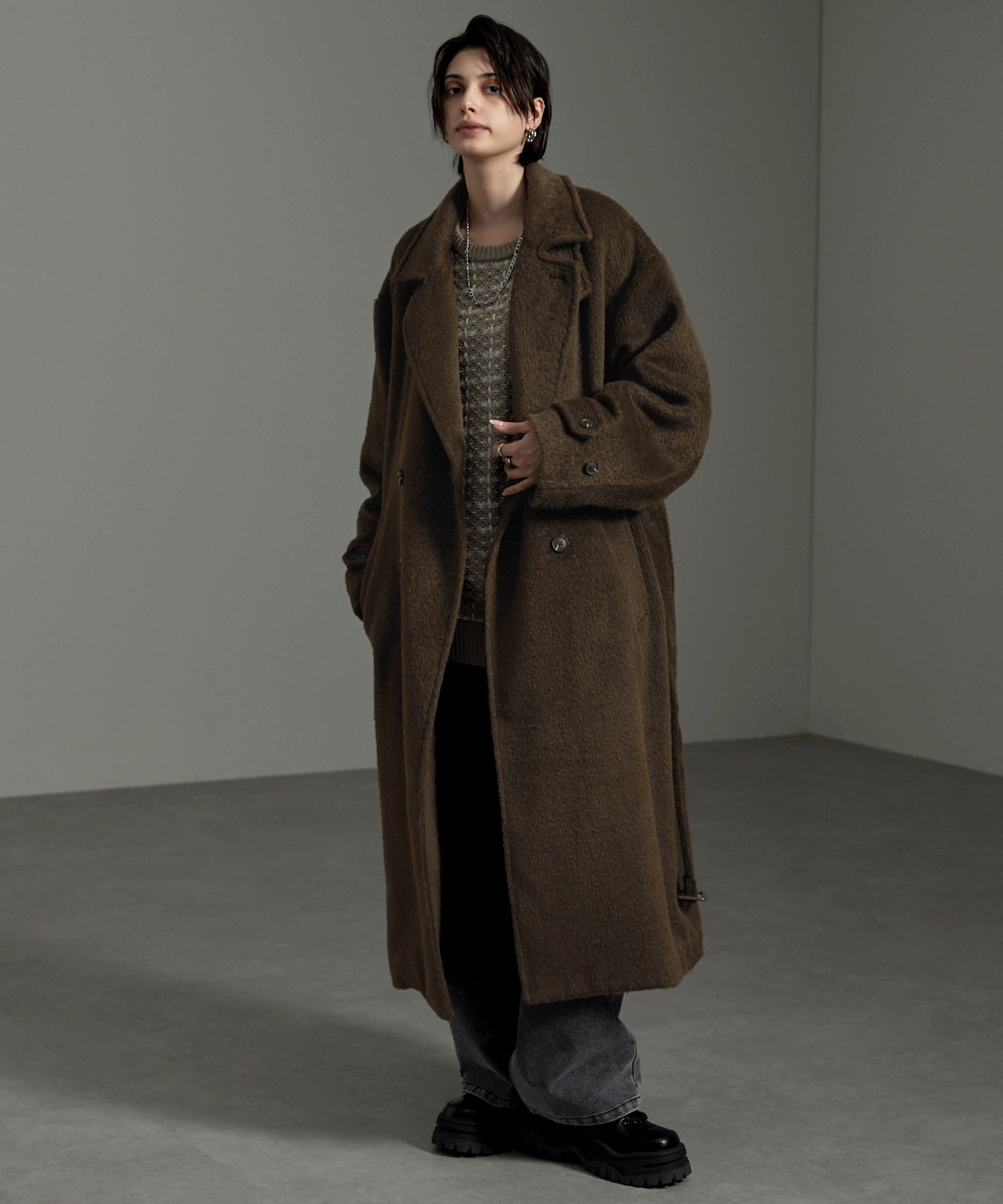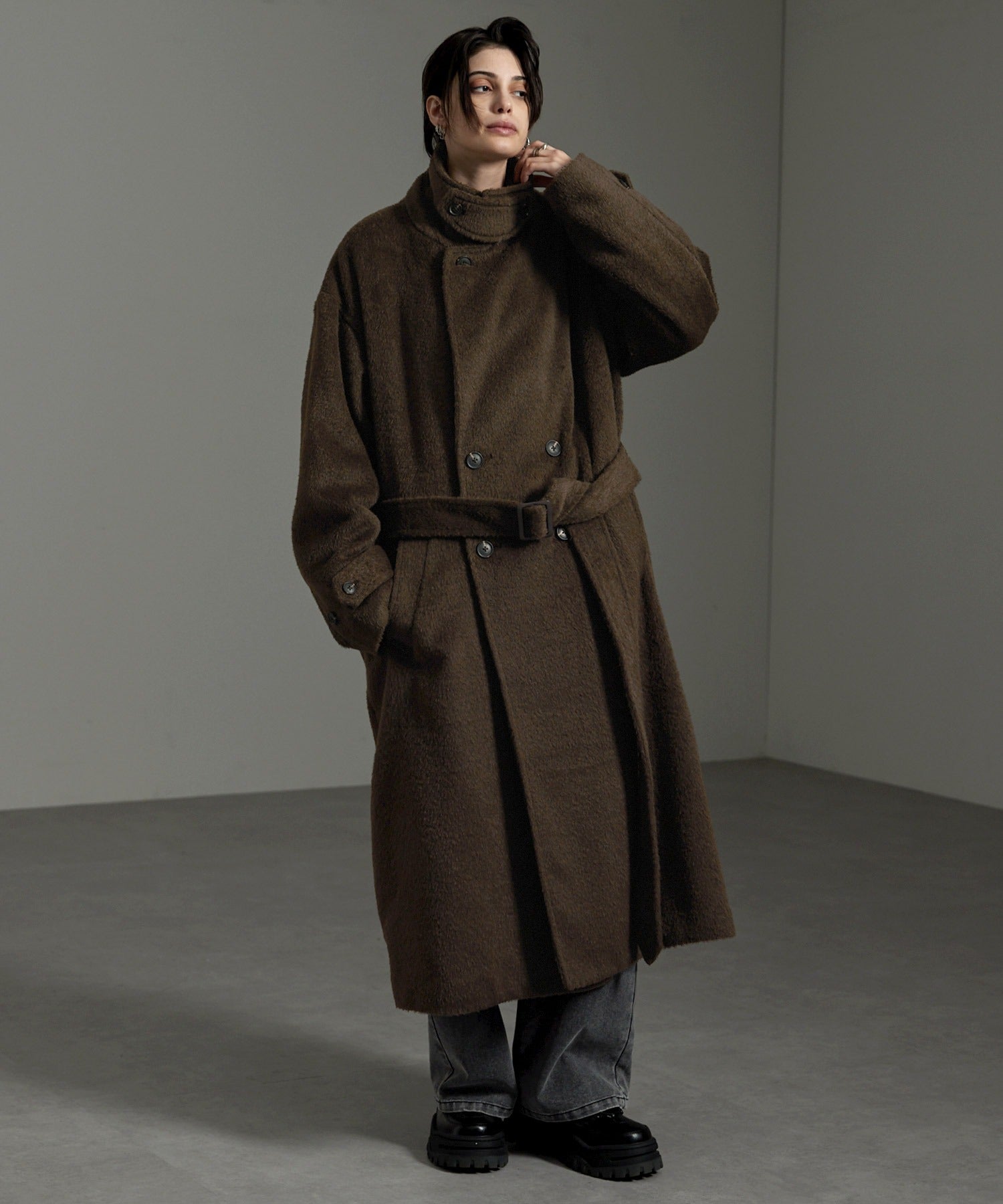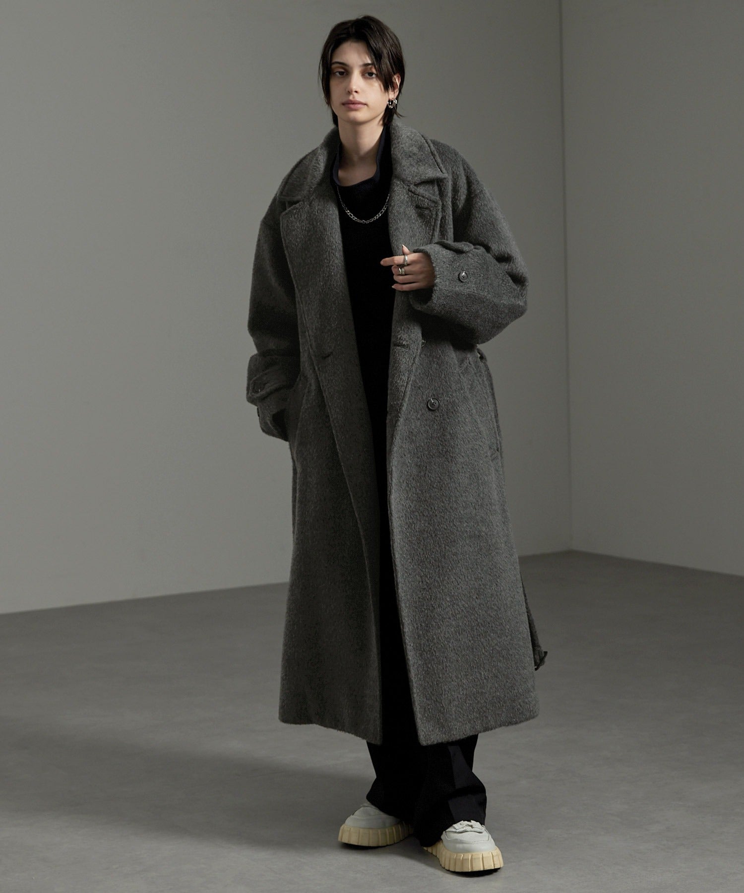 選用具備獨特起毛感的長毛呢面料,兼具羊毛般的挺度與層次豐富的色彩,營造出高級感及細膩質感,布料滑順親膚,提供舒適的穿著體驗,內襯設計提升保暖效果。雙排釦設計,呈現經典復古風格,領口也可調整為立領穿法變換造型,腰部設有可拆卸式腰帶,可依喜好調整造型,展現不同風格。寬鬆版型設計,袖口擁有充足空間,適合多層次穿搭。