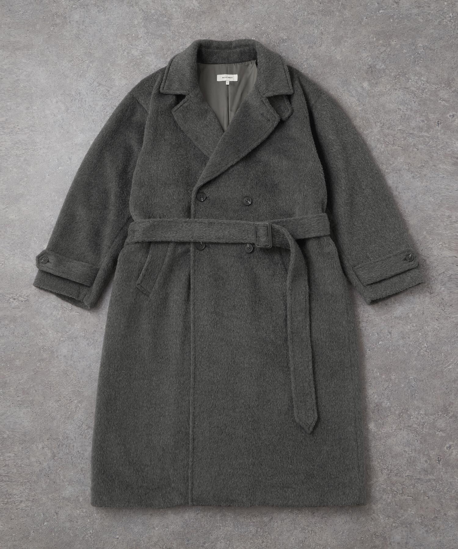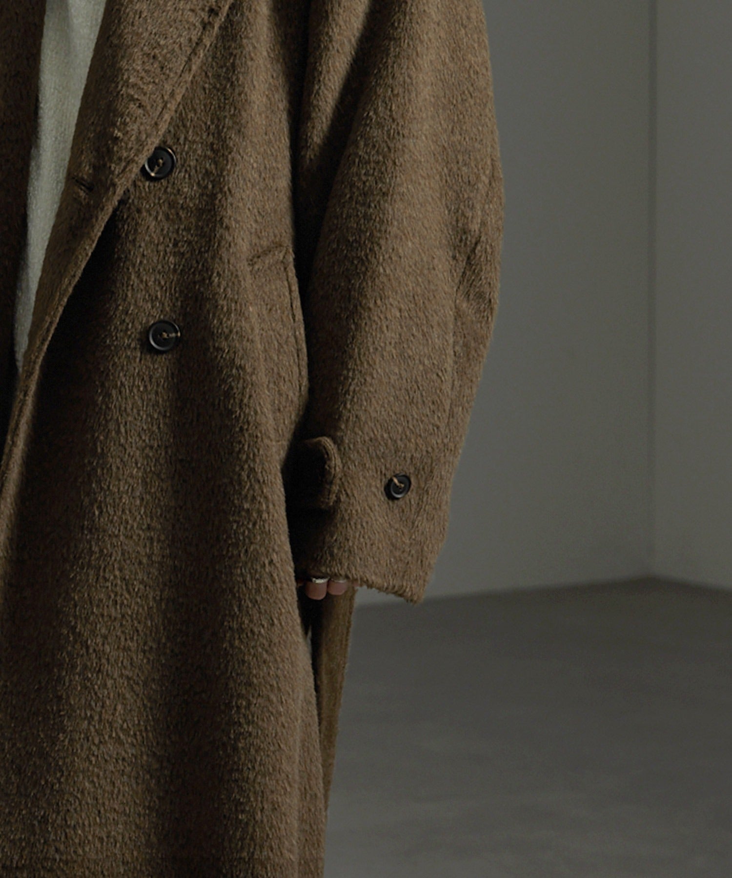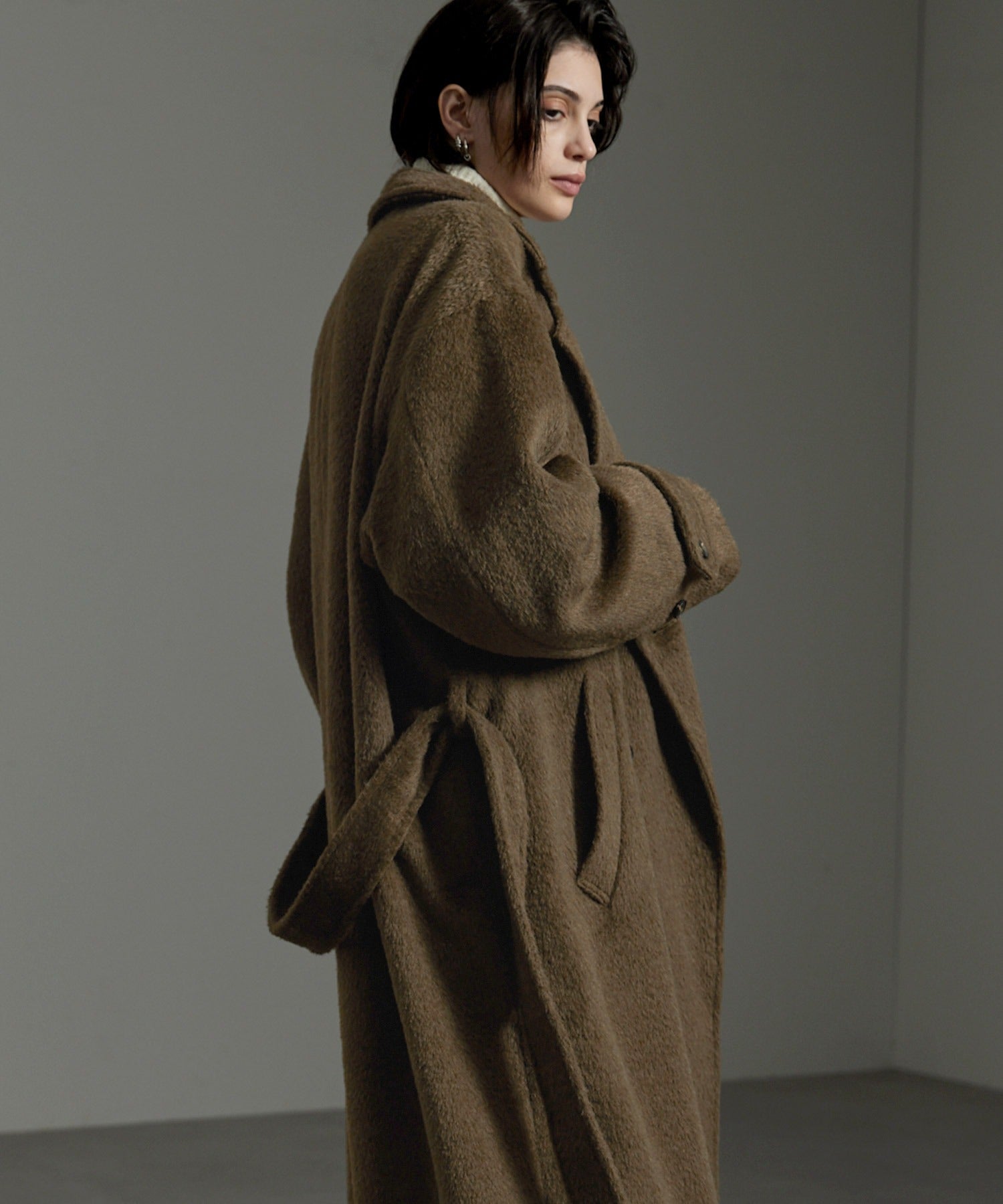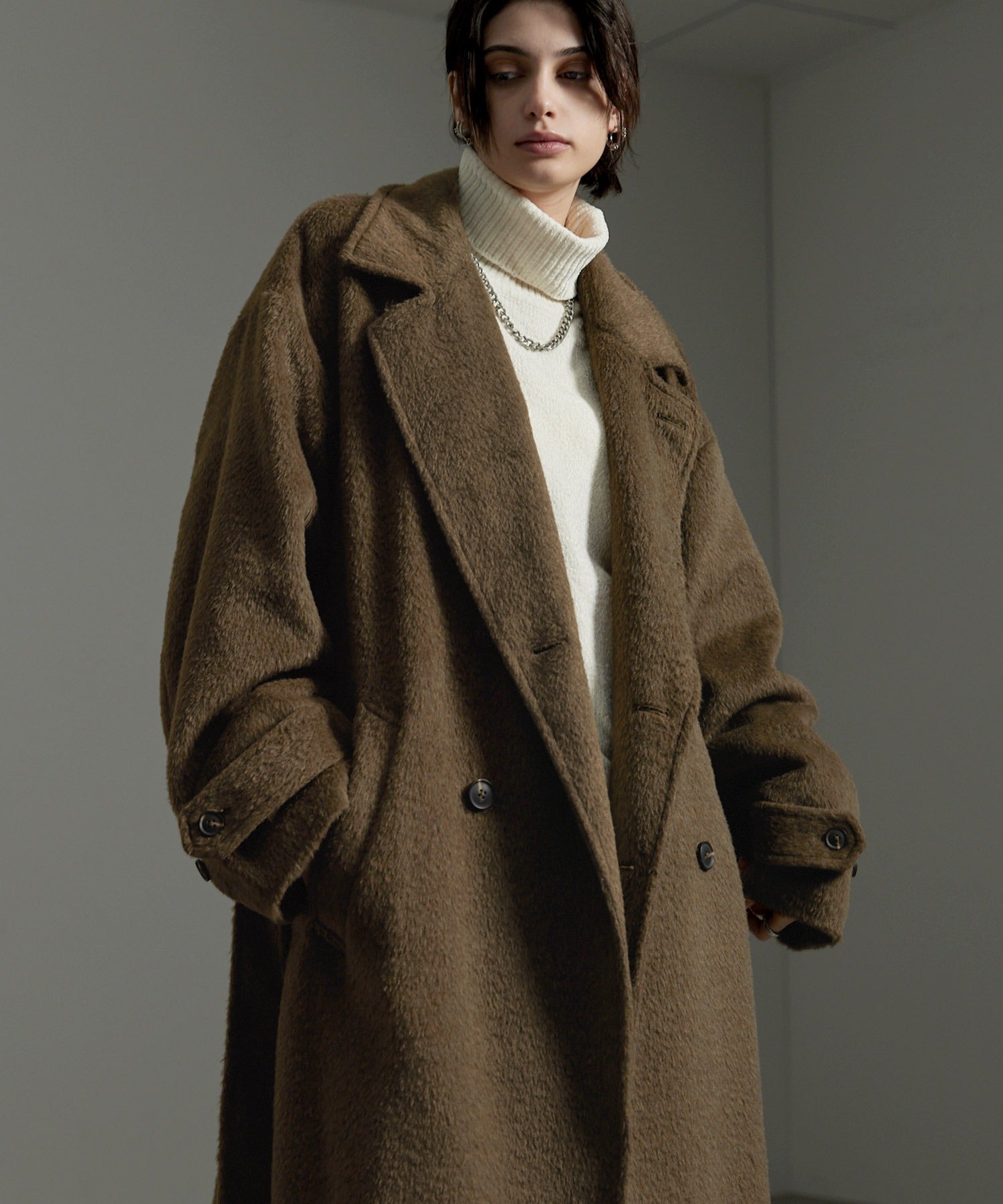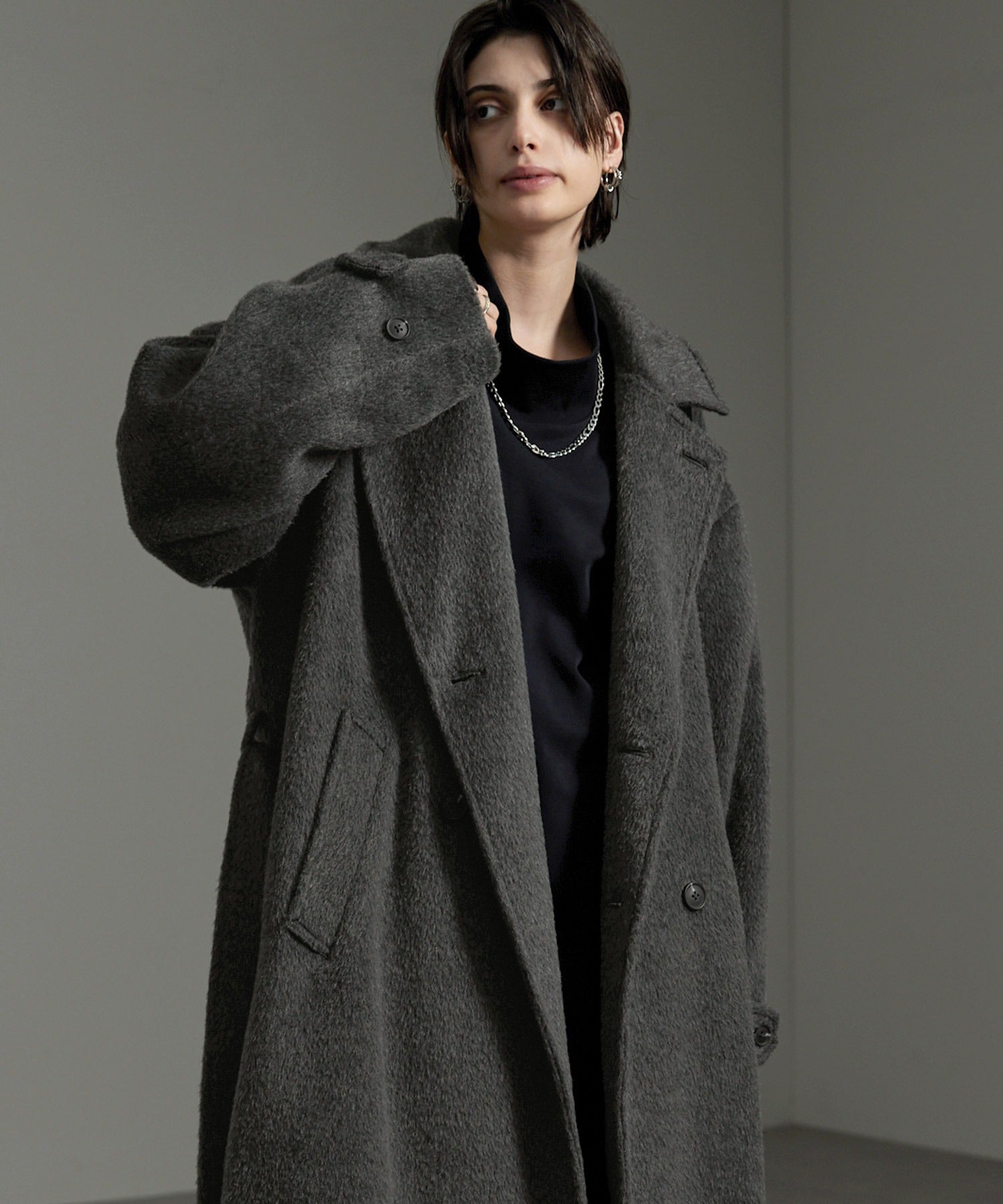 選用具備獨特起毛感的長毛呢面料,兼具羊毛般的挺度與層次豐富的色彩,營造出高級感及細膩質感,布料滑順親膚,提供舒適的穿著體驗,內襯設計提升保暖效果。雙排釦設計,呈現經典復古風格,領口也可調整為立領穿法變換造型,腰部設有可拆卸式腰帶,可依喜好調整造型,展現不同風格。寬鬆版型設計,袖口擁有充足空間,適合多層次穿搭。