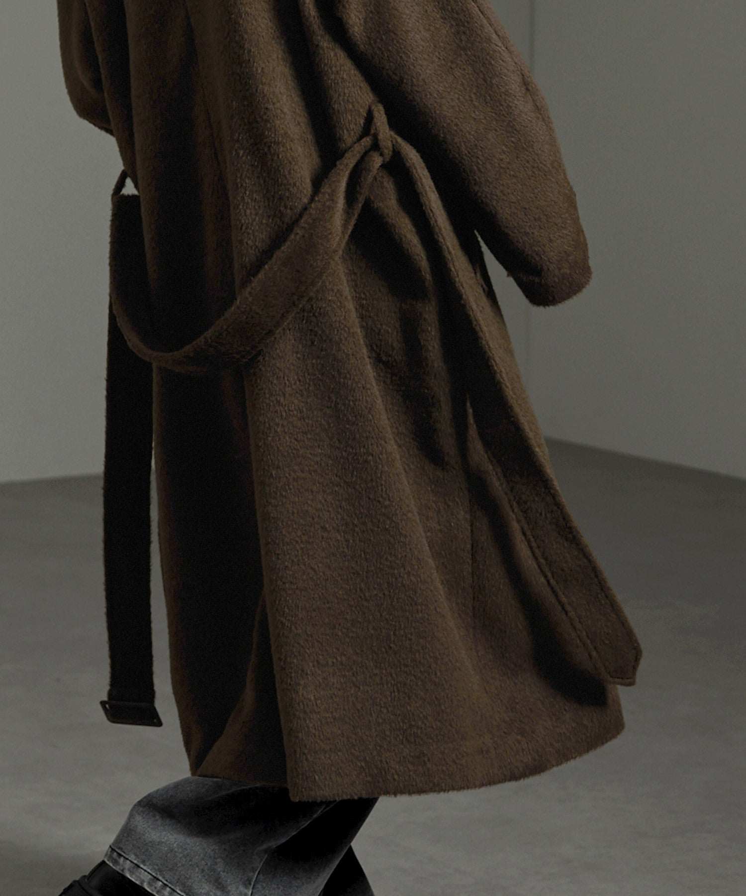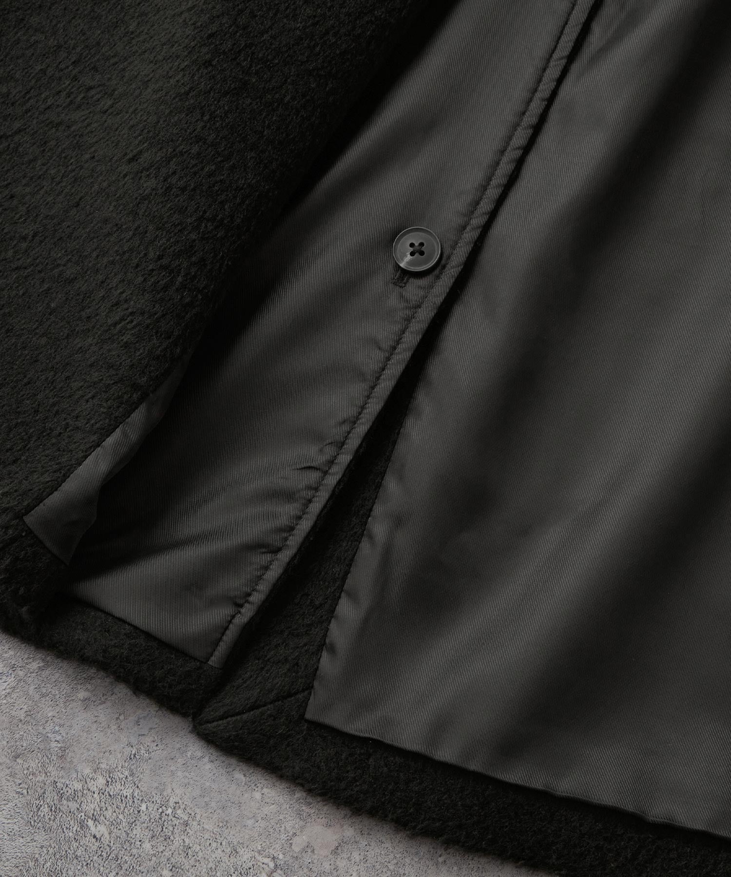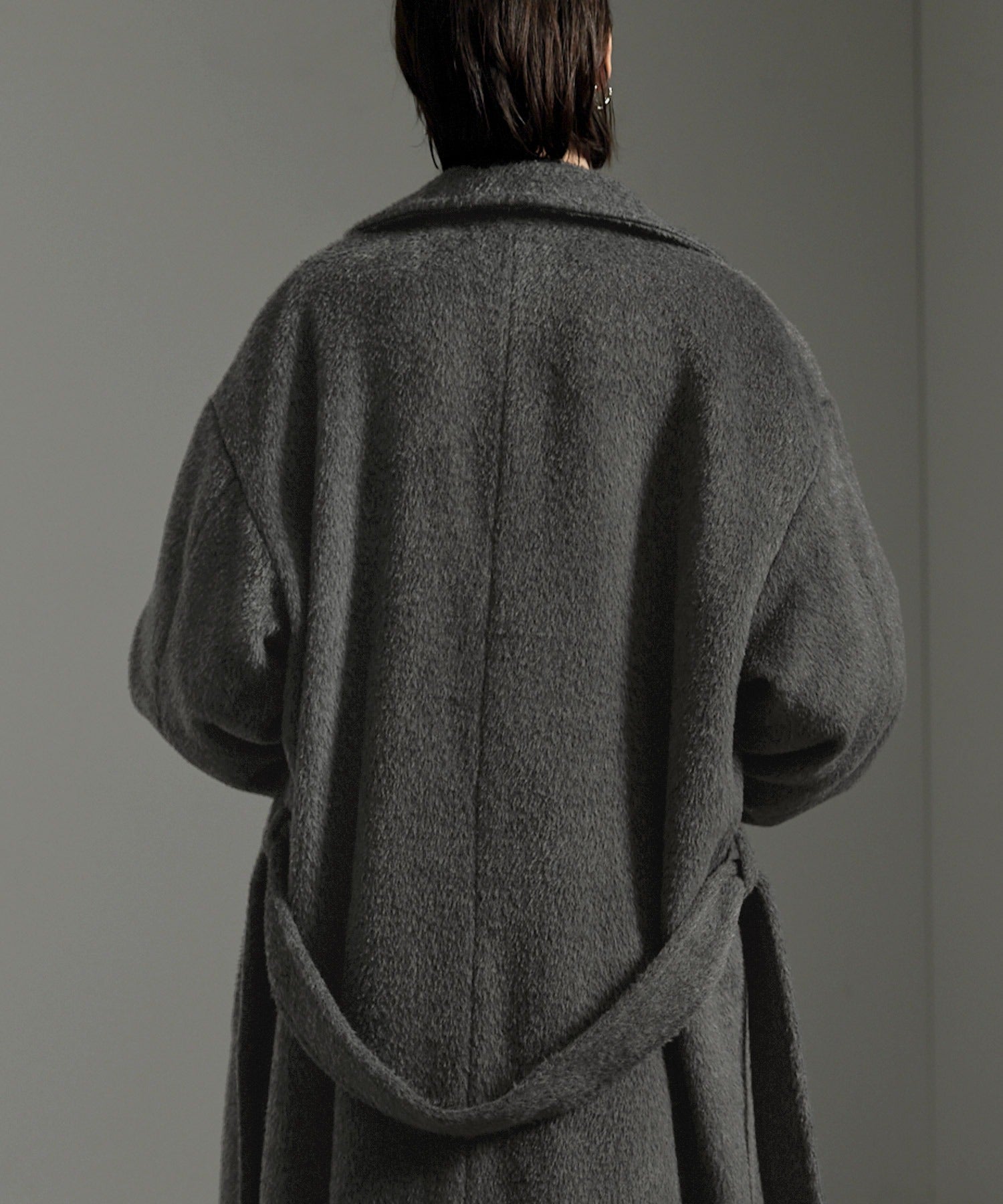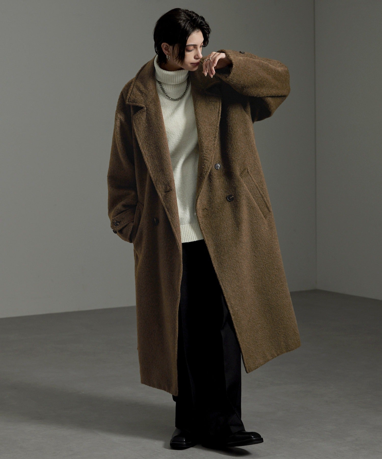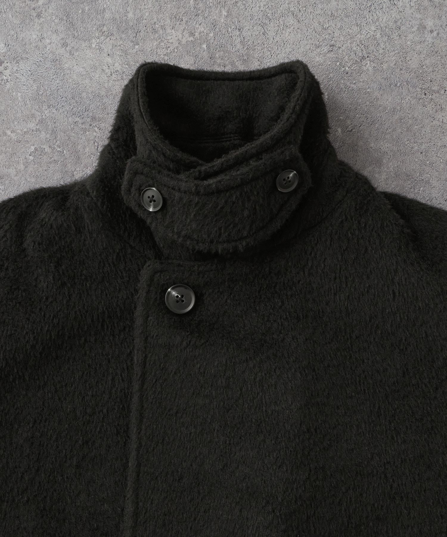 選用具備獨特起毛感的長毛呢面料,兼具羊毛般的挺度與層次豐富的色彩,營造出高級感及細膩質感,布料滑順親膚,提供舒適的穿著體驗,內襯設計提升保暖效果。雙排釦設計,呈現經典復古風格,領口也可調整為立領穿法變換造型,腰部設有可拆卸式腰帶,可依喜好調整造型,展現不同風格。寬鬆版型設計,袖口擁有充足空間,適合多層次穿搭。