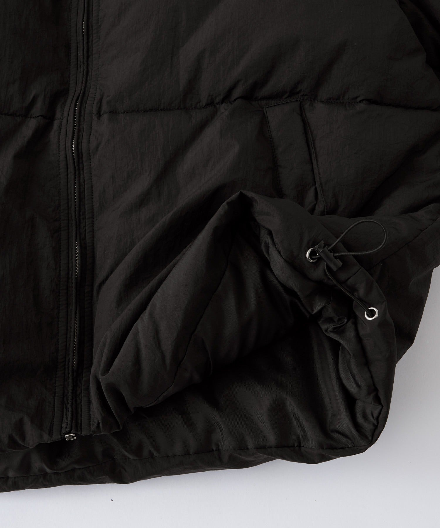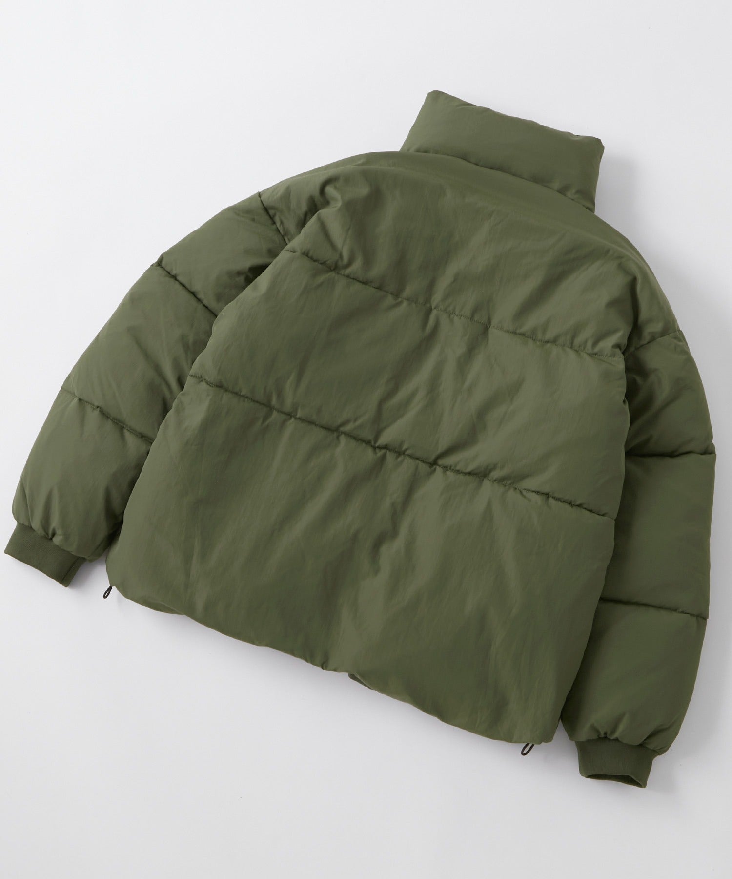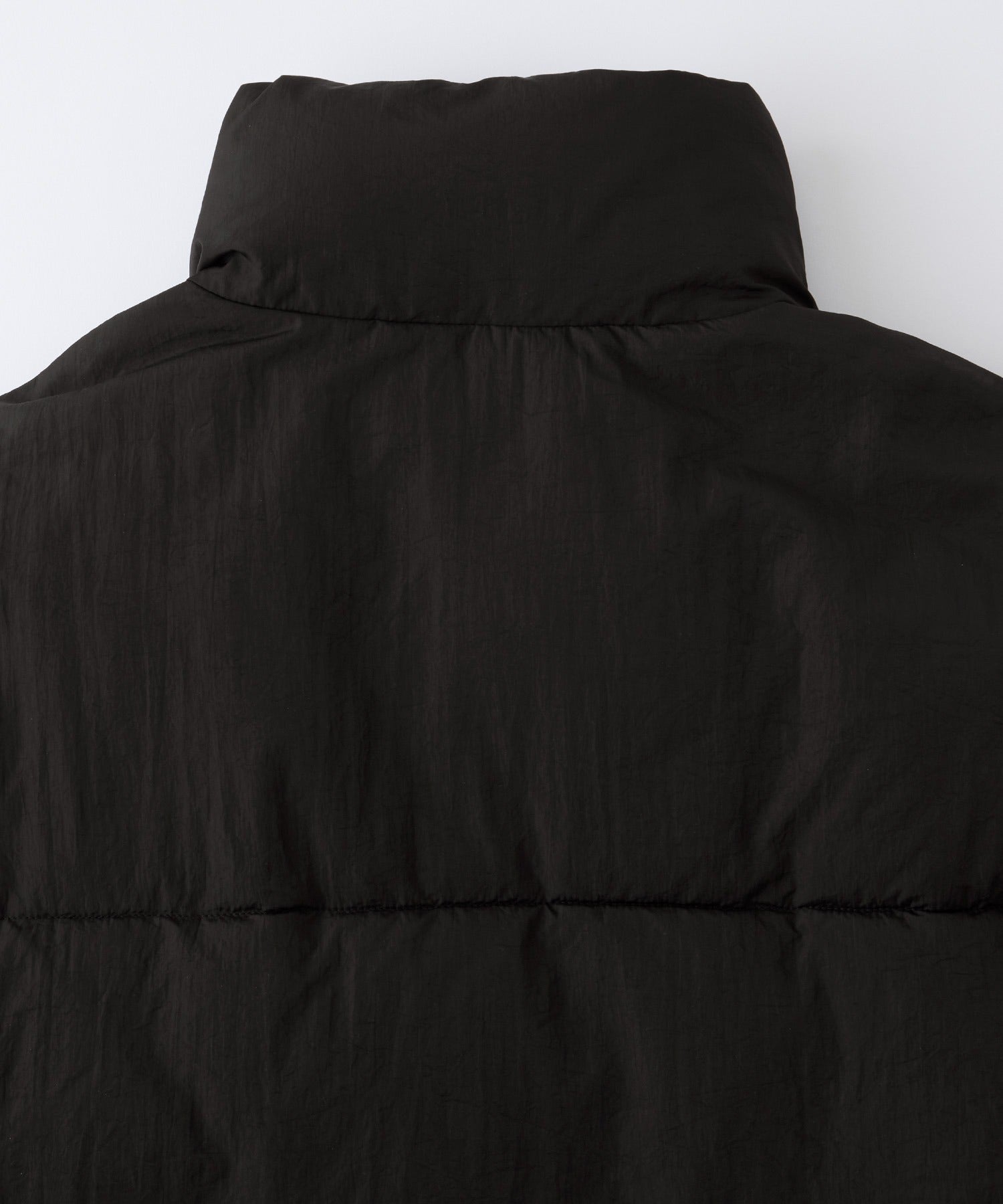外層面料選用耐摩擦且具適度彈性的尼龍材質,高密度織造使其呈現沉穩的霧面質感,同時經過防潑水處理,可有效抵擋雨水與輕微污漬,讓清潔變得更加簡單,領口採用高領設計,內部填充如羽絨般溫暖且輕盈的中綿,保暖性極佳,領口柔軟舒適,提供舒適的穿著體驗與溫暖感。此外,兩側設有方便插手的口袋,衣擺則配有可調整輪廓的彈性抽繩,時尚的短版剪裁,搭配平衡感滿分,是一款男女皆可穿著的中性單品。