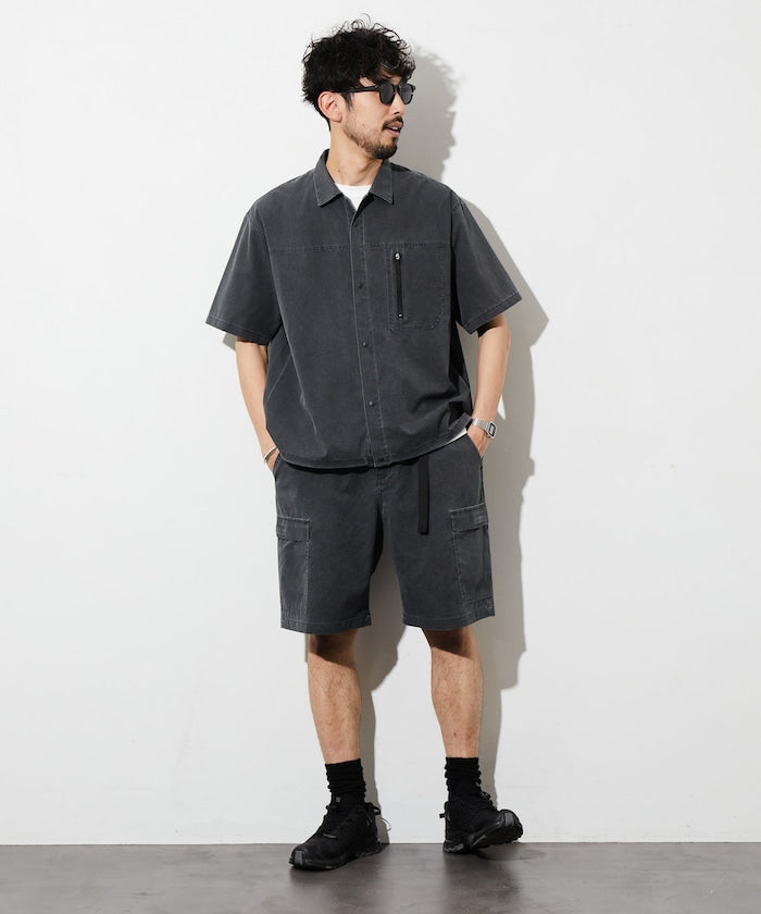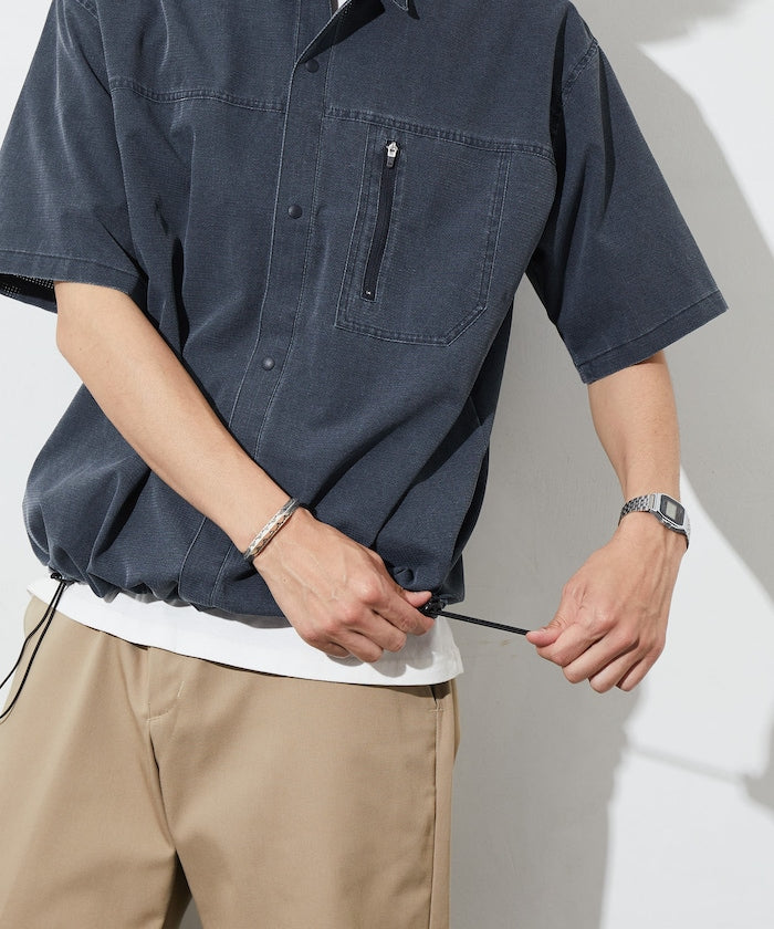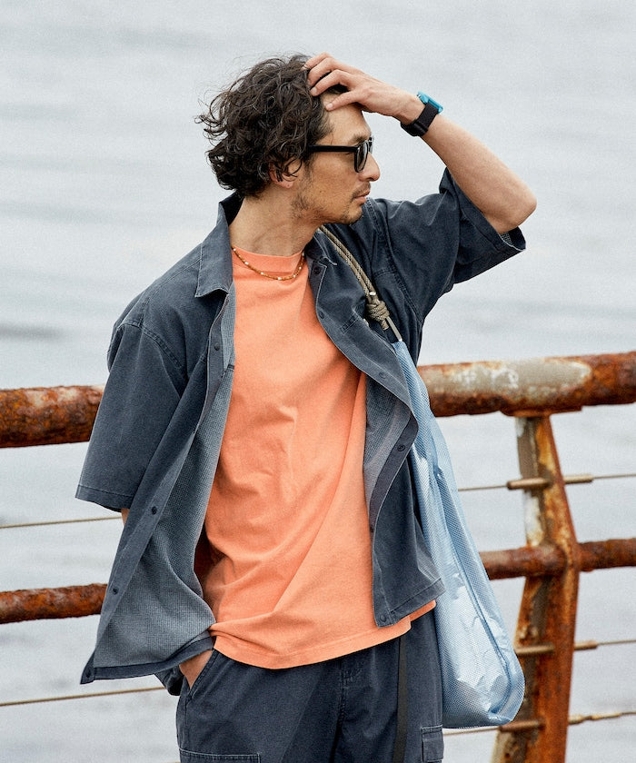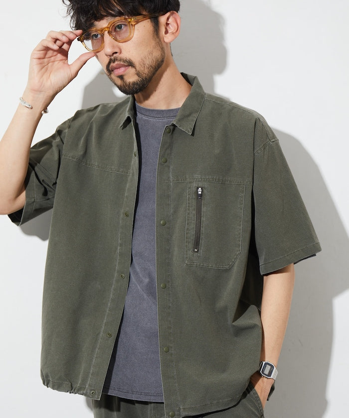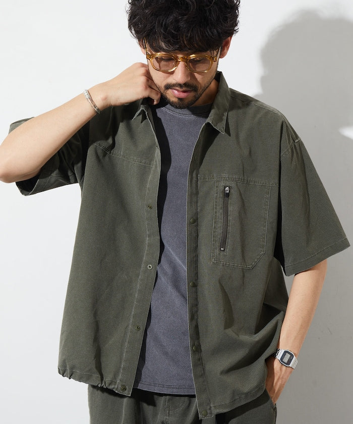 FREAK’S STORE AIR TECH BREATH Mesh Pigmented Open Collar Shirt 刷色拉鍊短袖襯衫
