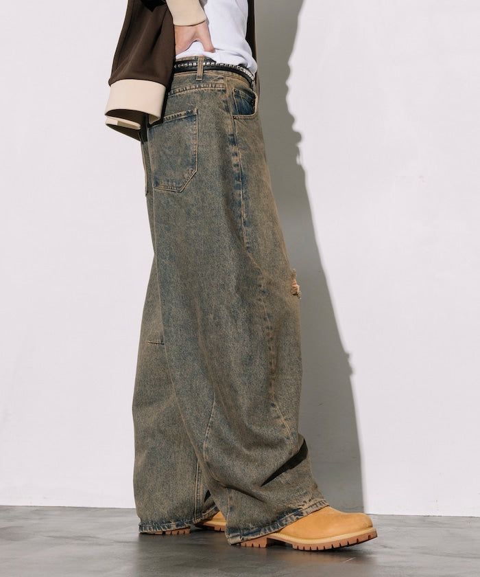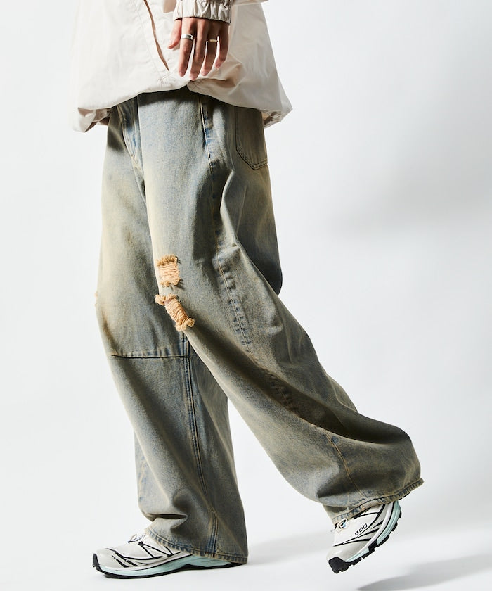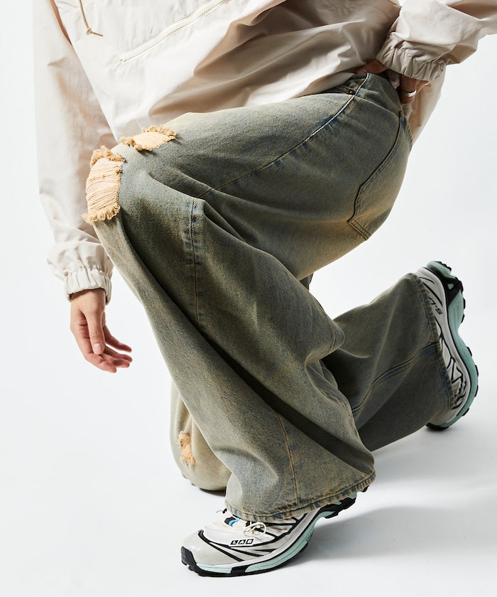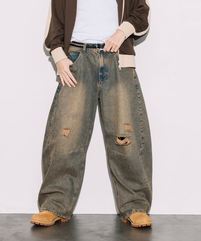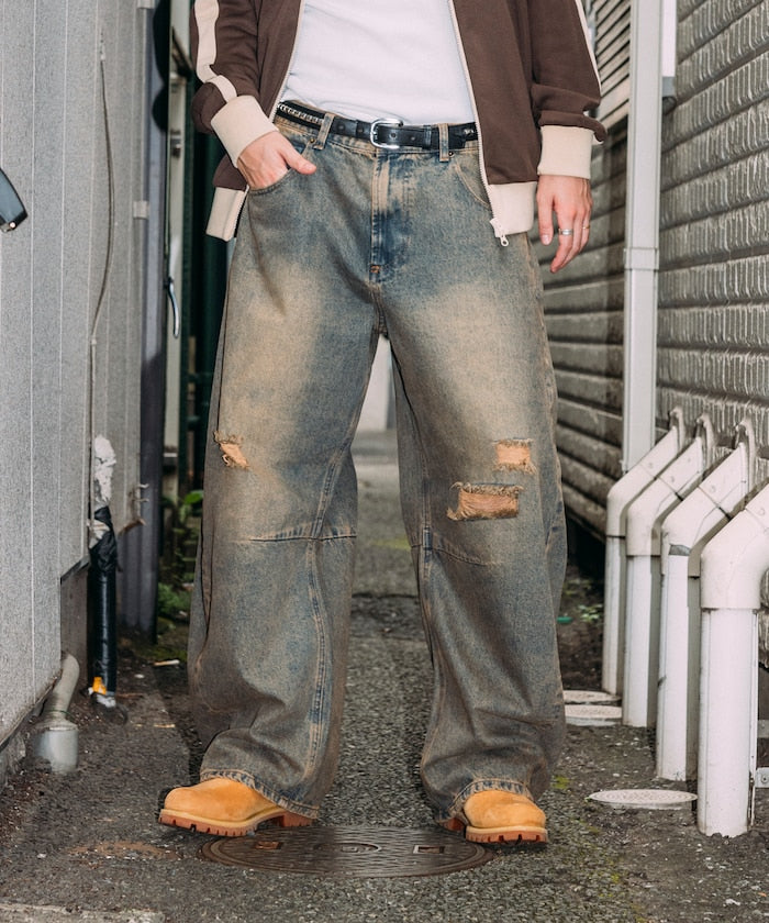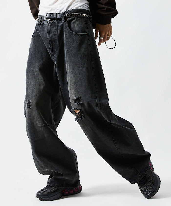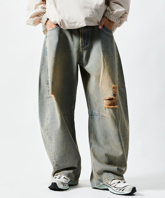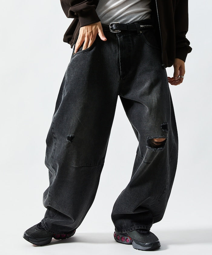 FREAK'S STORE 寬版刷破錐形牛仔褲