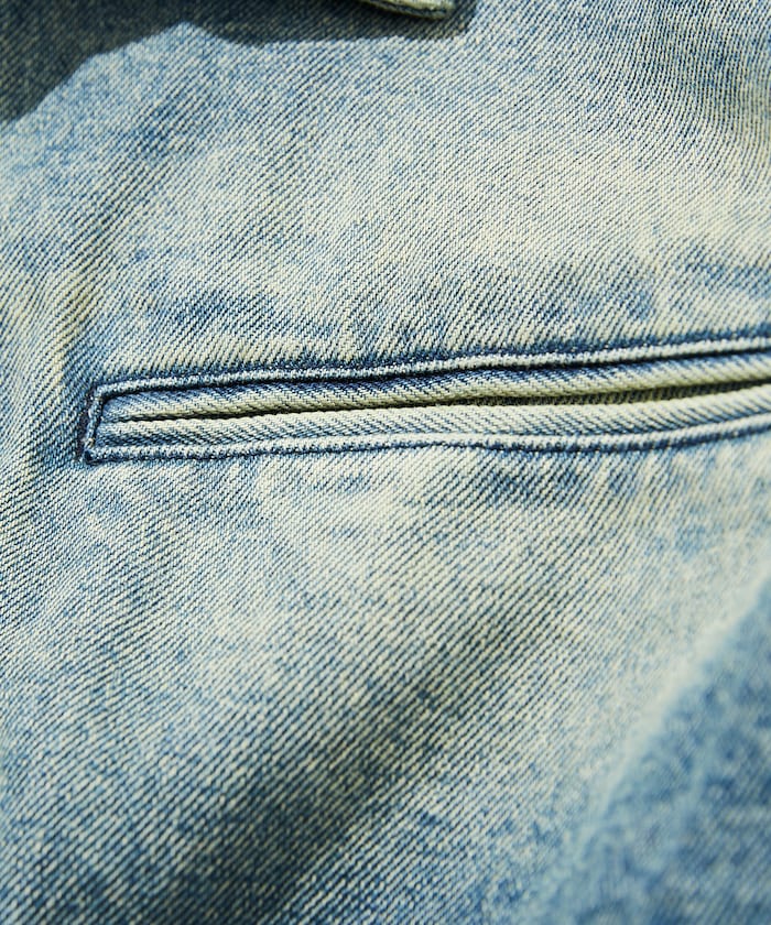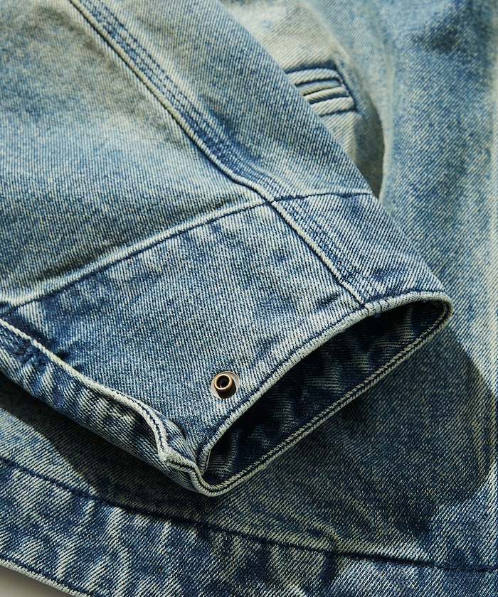 以美國經典工裝「底特律夾克(Detroit Jacket)」為靈感,保留細節並融入現代風格,胸前及兩側設有口袋,兼具設計感與實用性,下擺設有金屬扣,可依需求調整版型,寬鬆的版型、短版剪裁的方正輪廓,展現俐落造型。