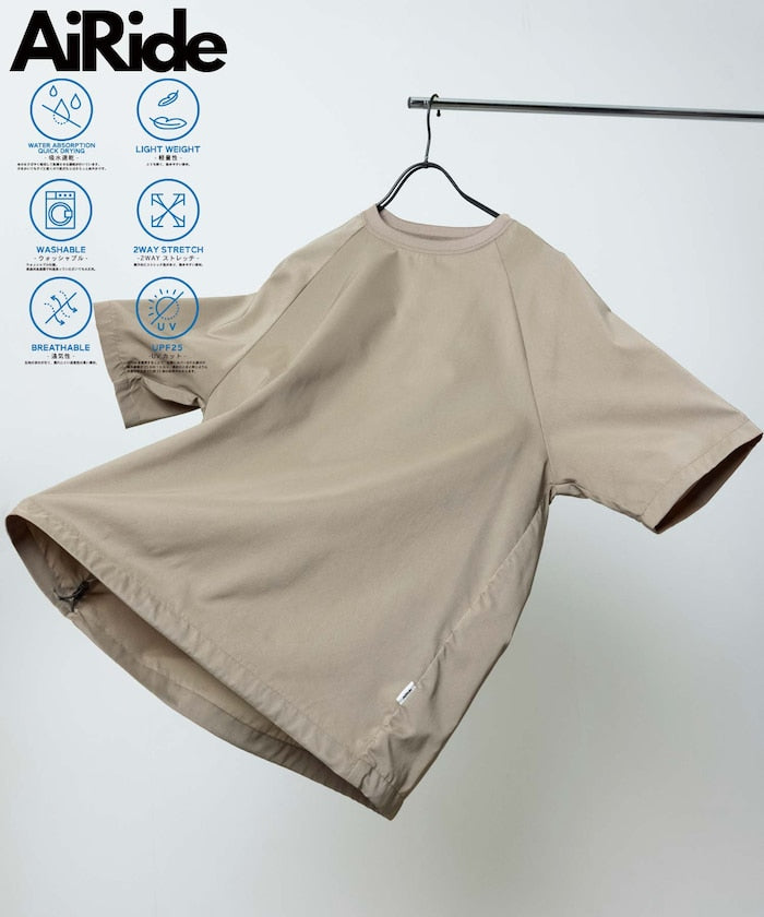 本單品採用具有透氣性和彈性的AiRide功能性面料,具備UPF25及90%以上的紫外線防護率,同時兼具吸水速乾性和輕量性。採用適度寬鬆的版型,簡約的素色設計,易於搭配多種穿搭風格,下擺設有抽繩,可自由調整輪廓線條。擁有舒適穿著感與輕鬆休閒的版型,適合多種場合穿搭,是實穿性極高的一款單品。