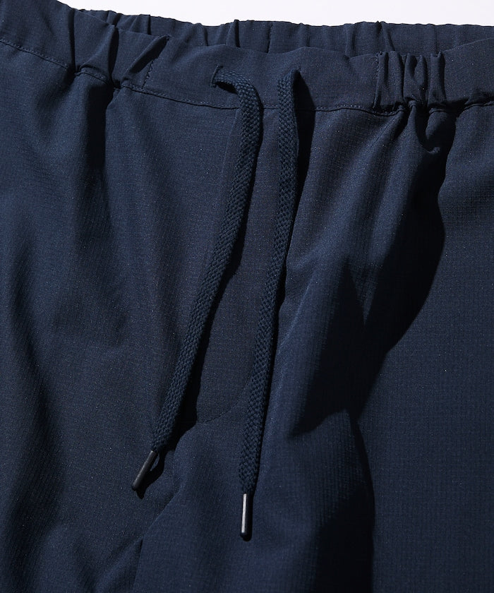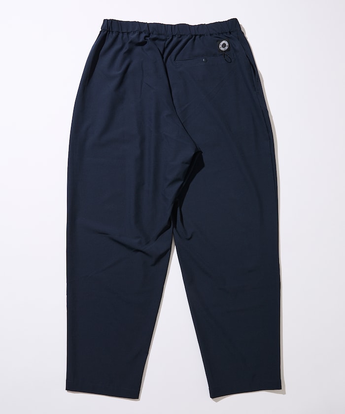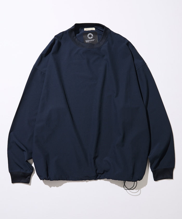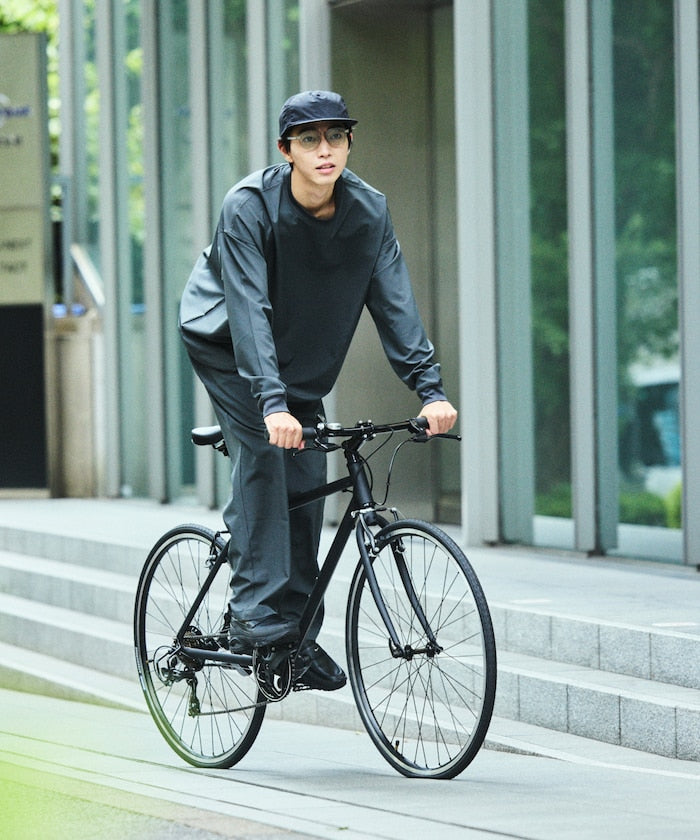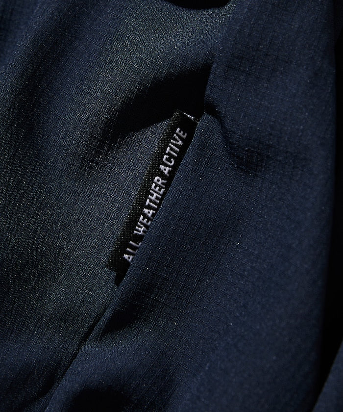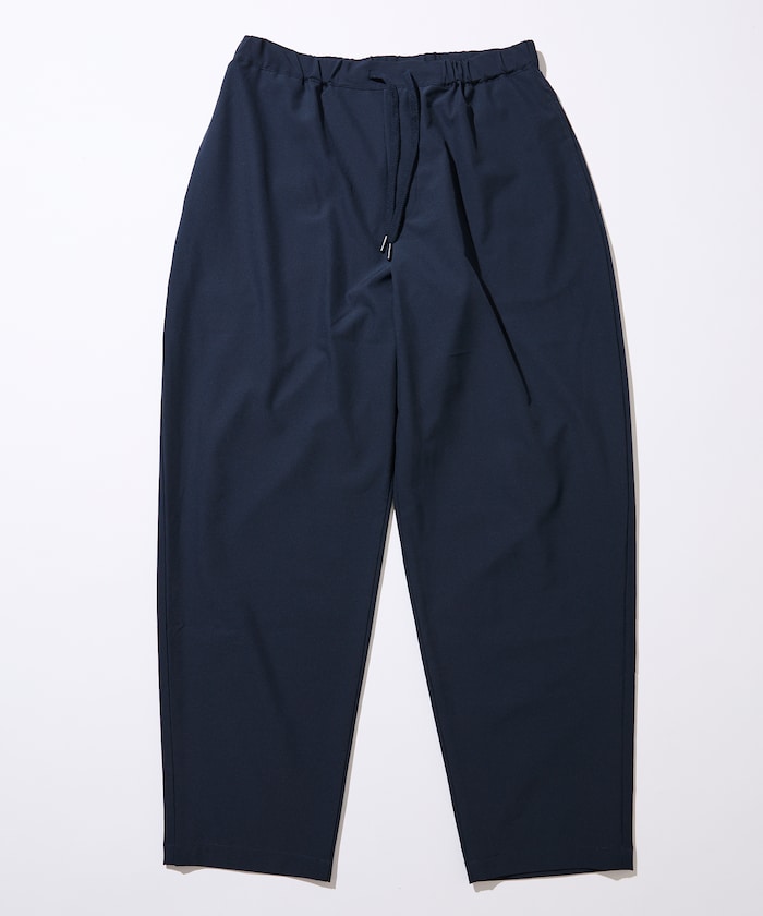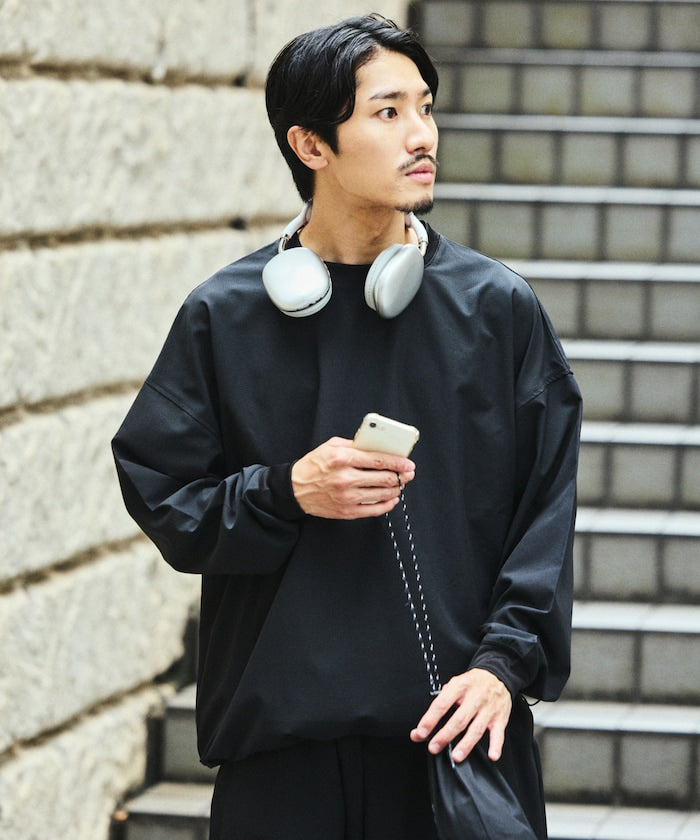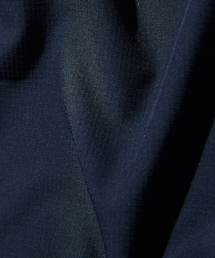 採用兼具優異防潑水性與高彈性的全新素材,高度機能設計,搭配多種巧思細節的一件單品,剪裁為適度寬鬆的版型,展現輕鬆舒適的氛圍。上衣為圓領套頭款式,下擺處設有抽繩,可依喜好調整輪廓,褲款則為勾勒柔和曲線的寬版錐形剪裁,可收納的設計,旅行或外出攜帶十分便利。