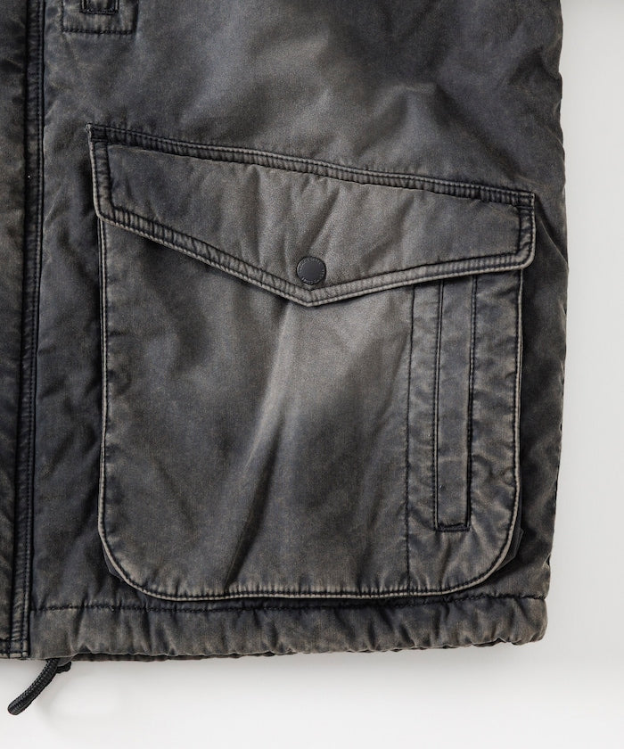 採用棉、尼龍交織的混紡材質,領口以燈芯絨材質拼接,質感升級,經過仿舊褪色處理,呈現自然復古的質感。設計靈感源自釣魚夾克,配有大型翻蓋口袋與拉鍊口袋,收納力極佳,輕鬆外出不需背包。落肩剪裁、微寬鬆的版型,搭配短版方形下擺設計,不挑褲型、易於穿搭,是一款男女皆可著用的中性單品。