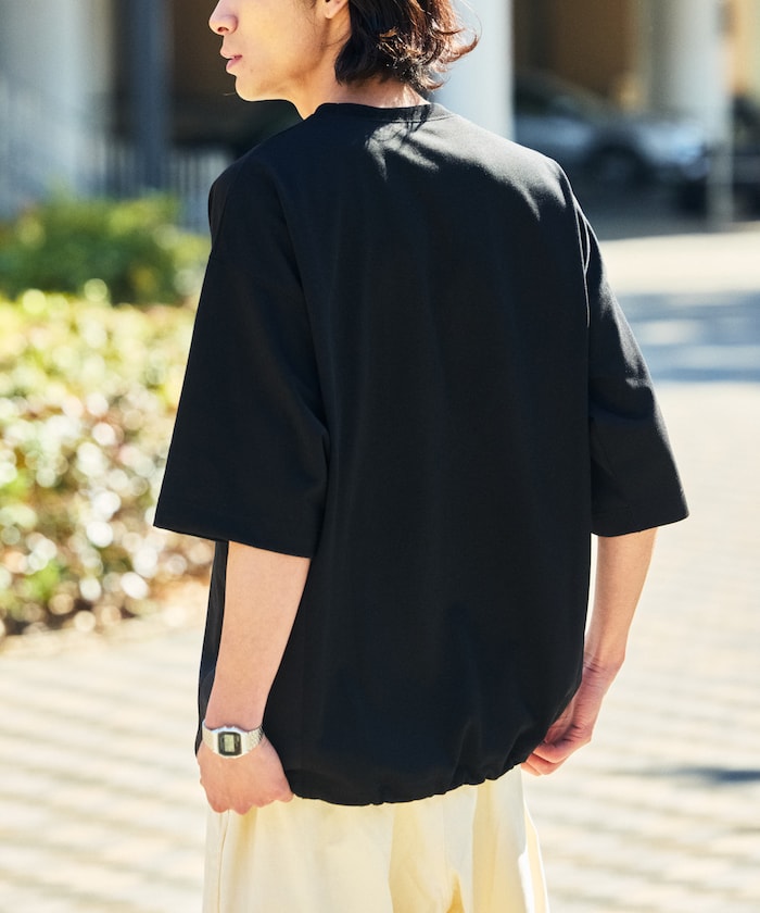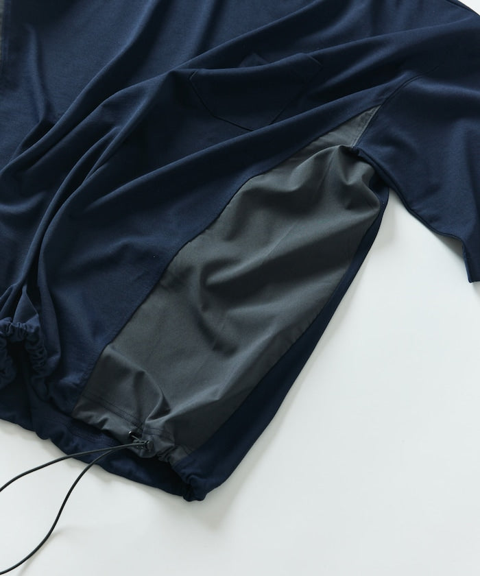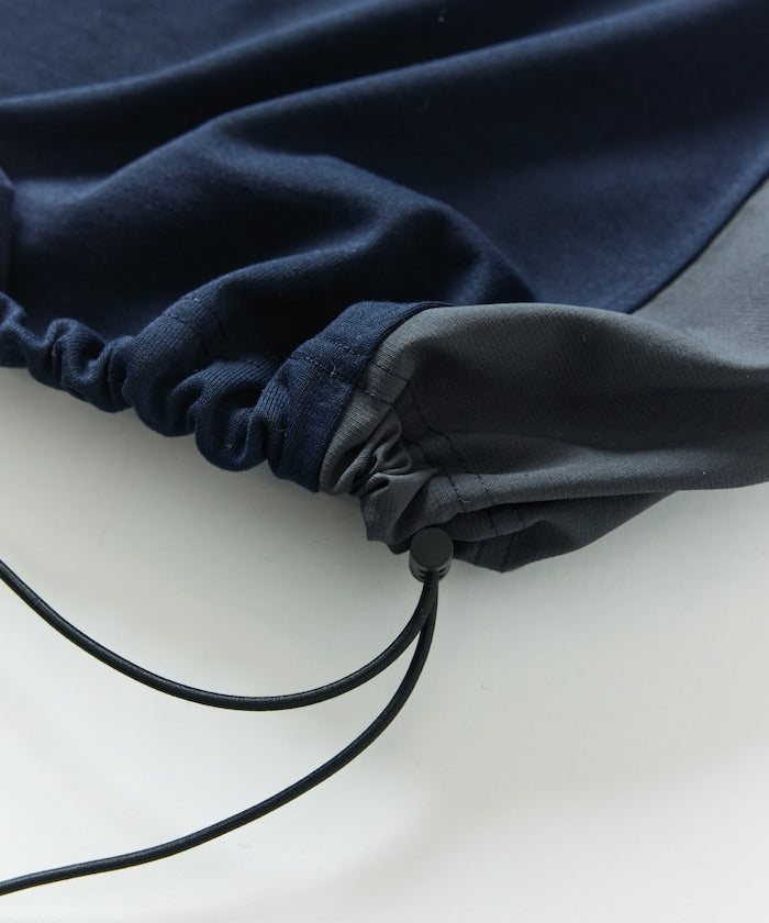採用 Drymix 機能性材質,Drymix 擁有快速吸濕排汗性,能迅速吸收並蒸發水分,保持清爽舒適的穿著感受,還有抗UV防曬處理,及防皺特殊處理,即使洗滌後也不易產生皺褶。側邊採用高彈性材質拼接,兼具設計感與機能性,下擺有抽繩設計,可自行做調整,適度的寬鬆版型,能輕鬆搭配多種不同造型。