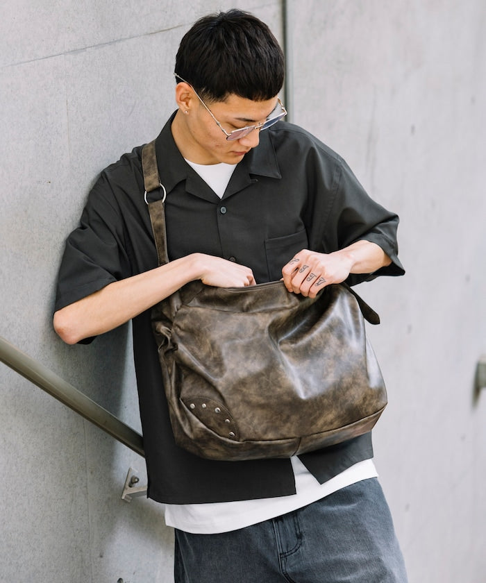 使用合成皮革並經特殊加工處理,呈現出仿舊感的獨特斑駁質感,點綴鉚釘細節,為簡約穿搭增添率性感與風格層次,恰到好處的尺寸設計,完美適用於日常外出,經典百搭的配色,男女皆可輕鬆搭配各種風格,為日常搭配首選。