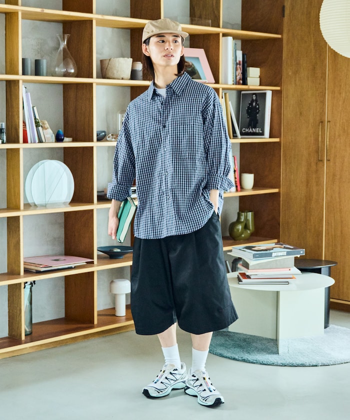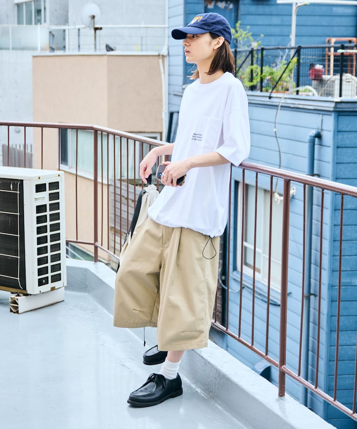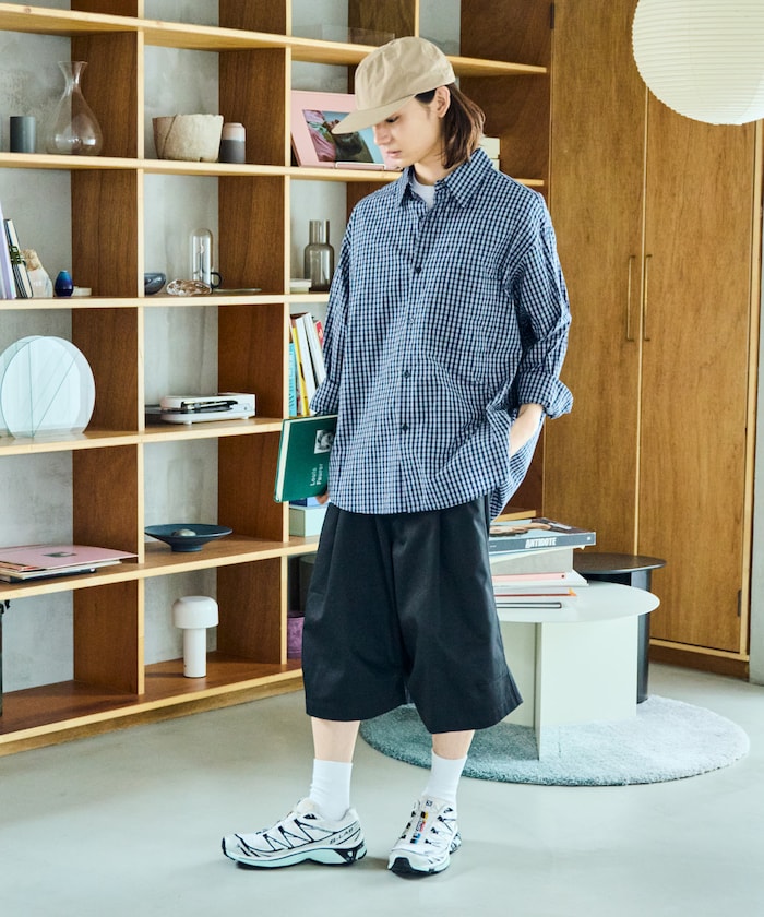 選用略帶硬挺感的斜紋布料,四季皆可穿著,兼具舒適與耐穿性,直筒的設計、褲型自然下垂,膝下長度搭配適中的寬鬆感,完全符合當季流行的褲長設計,配有抽繩的彈性褲頭,讓穿脫更加輕鬆舒適。
