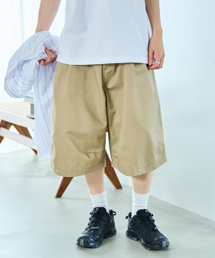 FREAK'S STORE Loose Fit Twill Tuck Wide Shorts 寬版打摺短褲