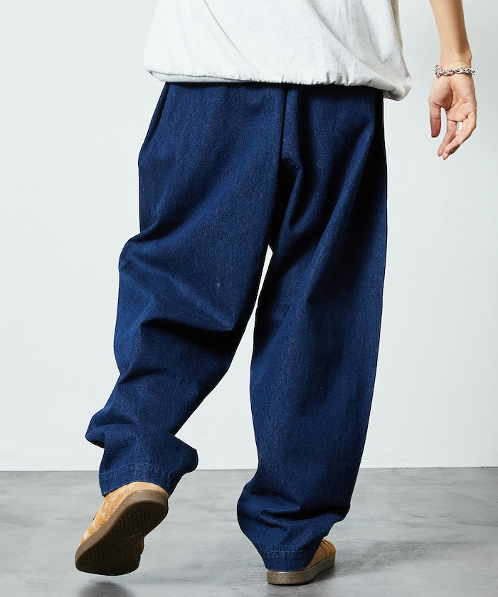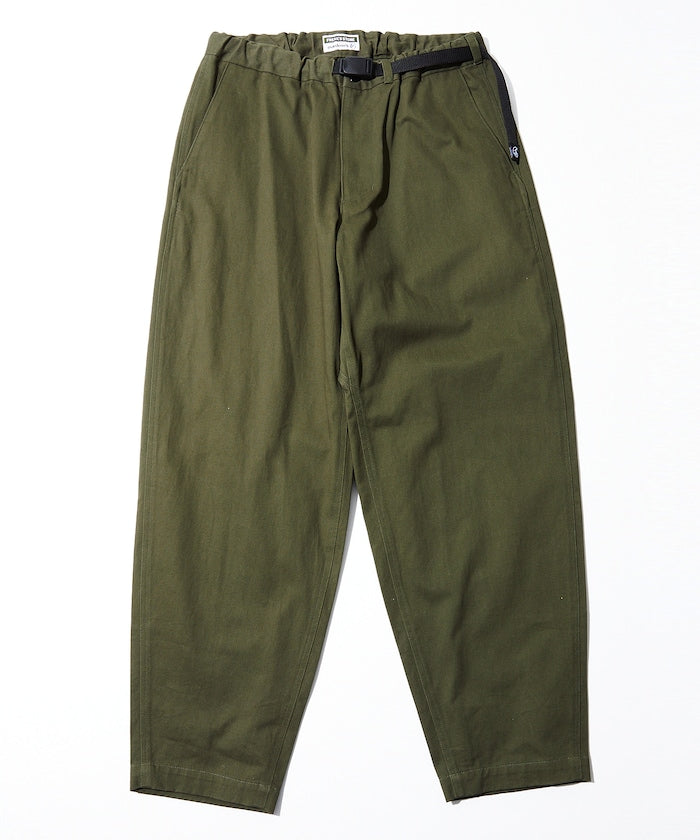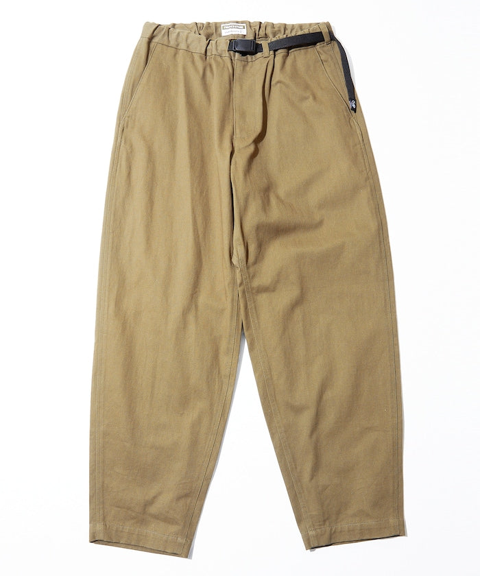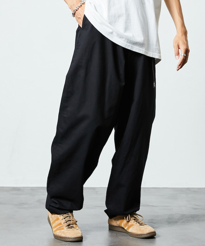 逐漸向褲腳收窄的寬版錐形剪裁,無需腰帶方便穿脫的鬆緊腰設計,採用純棉材質又帶有適度的挺度,四季皆可穿搭,是一年四季皆可穿的萬能單品。