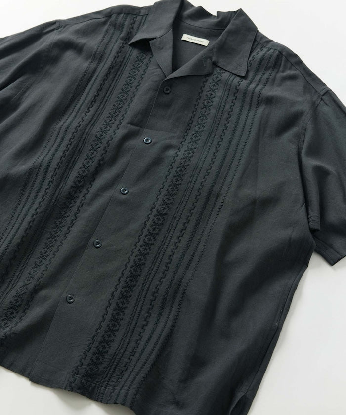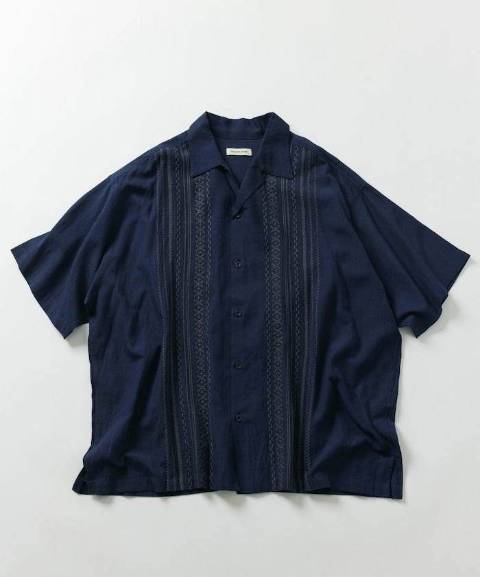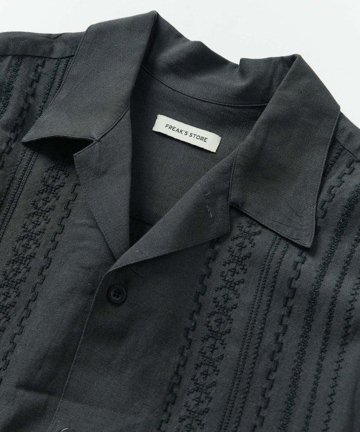FREAK'S STORE Relax Fit Linen Nylon Cuba Shirt 刺繡短袖古巴襯衫