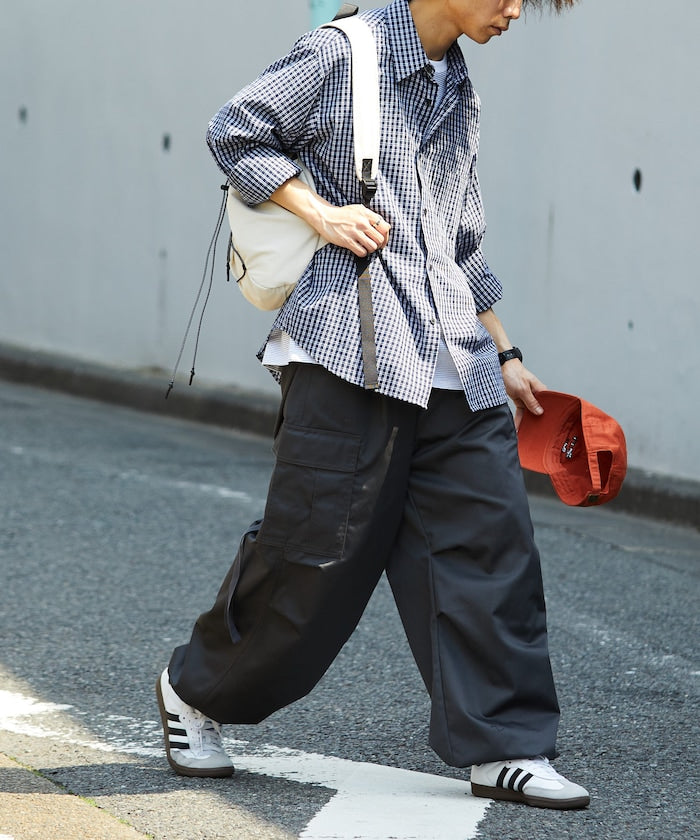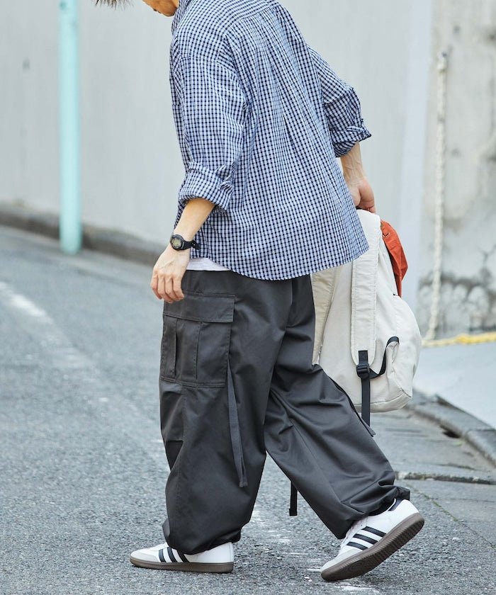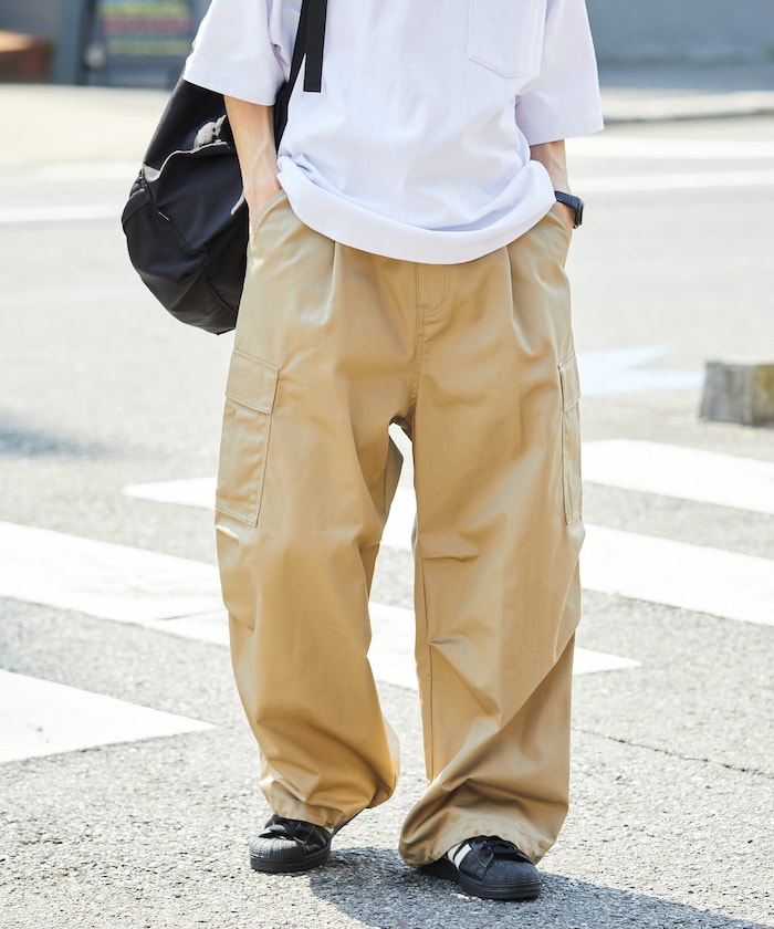 融合軍裝元素與街頭感剪裁,承襲古著工裝褲細節,大容量側邊口袋、可調整下擺的抽繩設計、膝部立體打摺剪裁等都精緻重現,褲管為寬鬆但略微錐形設計,使整體線條更具層次與動感,採用具挺度的布料,適合全年穿著,永不退流行的軍裝風格,無論是街頭、戶外或極簡風格都能靈活搭配。