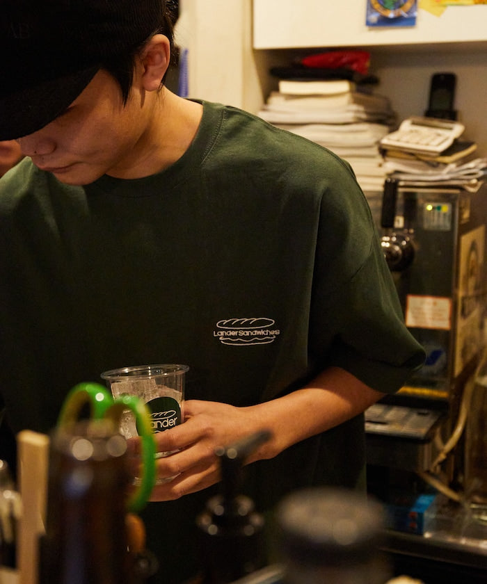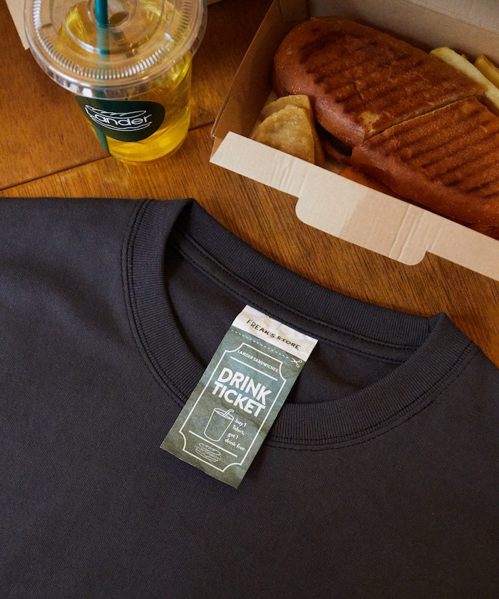 與日本橫濱人氣三明治店【LANDER】合作款推出的限定單品,以店鋪氛圍為靈感,將其魅力融入T恤設計,背面印有LANDER原創圖像,充滿街頭感,胸前則以簡約的小圖案設計作為平衡,領口的吊牌為實體店可使用的「1杯飲品兌換券」,適度寬鬆的版型設計,能輕鬆搭配各種穿搭風格。