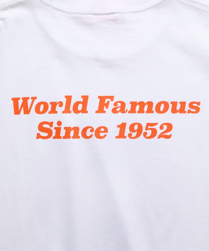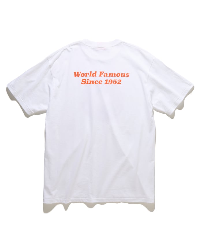 與美國洛杉磯人氣甜甜圈店 Randy’s Donut 合作推出的單品,由 FREAK’S STORE 操刀設計,正面印有美國第一家分店、同時也是洛杉磯地標的 Inglewood 店屋頂上那顆巨大的甜甜圈造型招牌,背面則印有 World Famous Since 1952 字樣。布料表面輕盈卻不易透,擁有 5.7 盎司的紮實厚度,袖口與下擺皆採用單線車縫,呈現復古感,是一款運用 Randy’s Donuts 象徵性的經典 Logo 與藝術圖案打造的單品,能為日常休閒穿搭增添亮點。