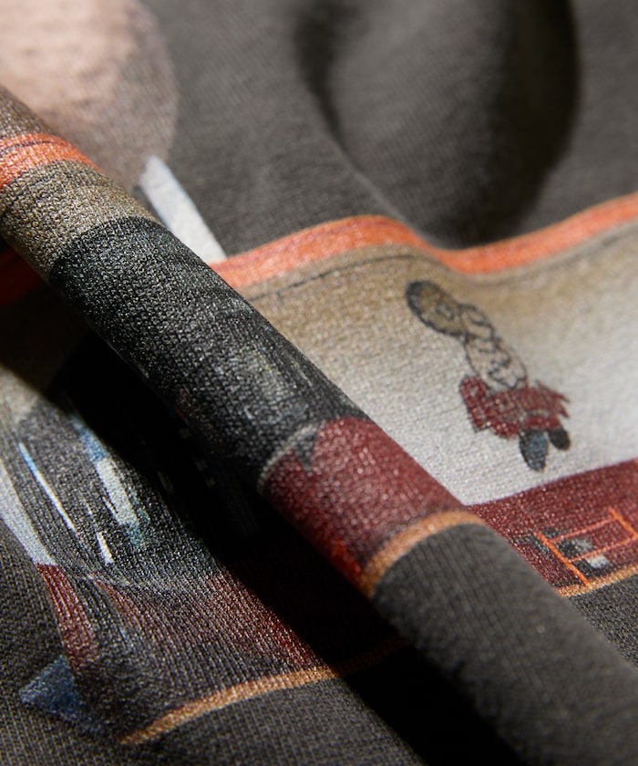 與美國洛杉磯人氣甜甜圈店 Randy’s Donut 合作推出的單品,由 FREAK’S STORE 操刀設計,正面印有美國第一家分店、同時也是洛杉磯地標的 Inglewood 店照片,背面則印有該店的地址。布料表面輕盈卻不易透,擁有 5.7 盎司的紮實厚度,袖口與下擺皆採用單線車縫,呈現復古感,是一款運用 Randy’s Donuts 象徵性的經典 Logo 與藝術圖案打造的單品,能為日常休閒穿搭增添亮點。