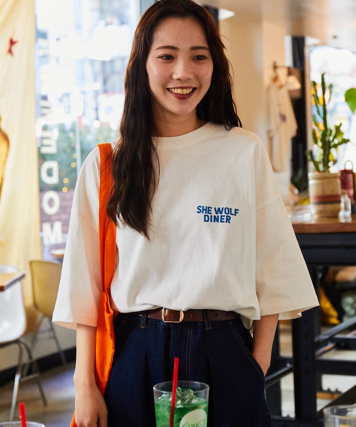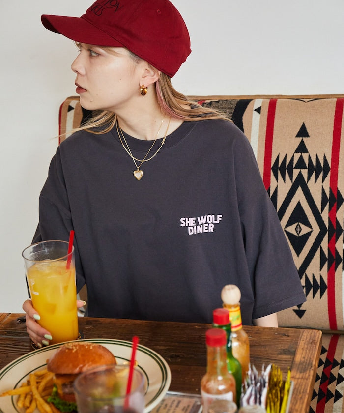 與東京澀谷的人氣美式餐廳【SHE WOLF DINER】聯名推出的單品,背面印有以汽車為主題的店鋪原創圖案,正面則為簡約的標誌設計,採用低彩度的配色,更凸顯圖案設計的精緻與質感。傳遞店鋪氛圍的設計風格,適中的寬鬆剪裁,男女皆能搭配各種造型穿出自我風格。
