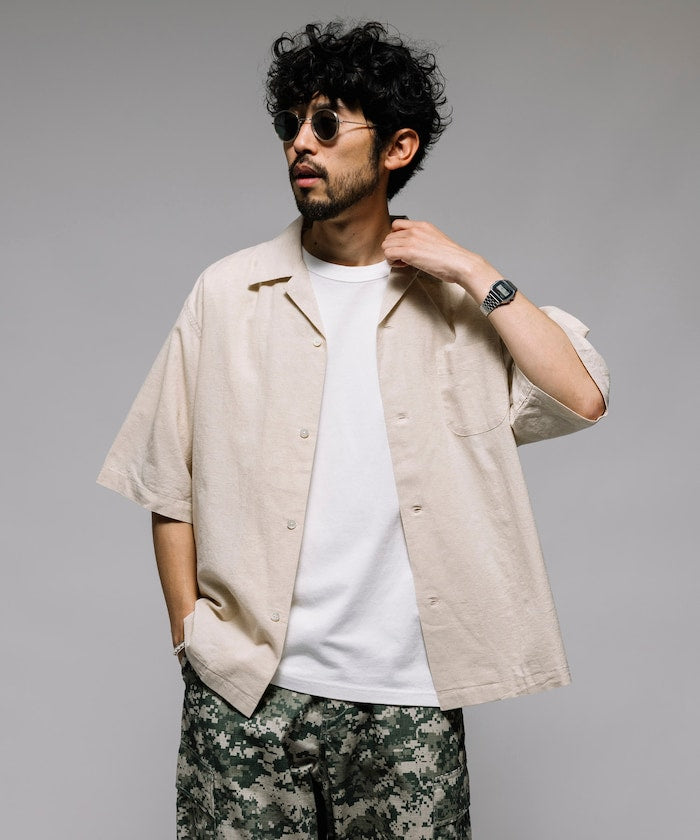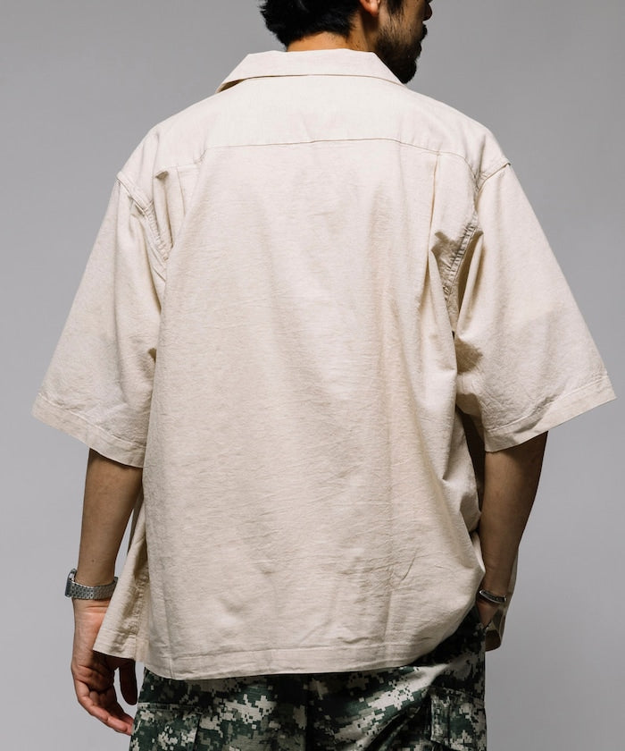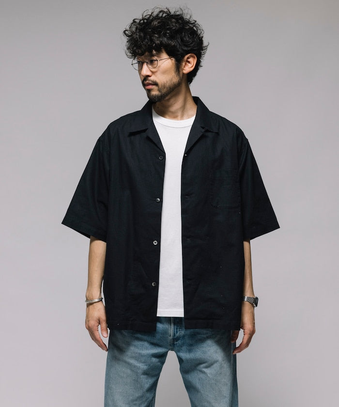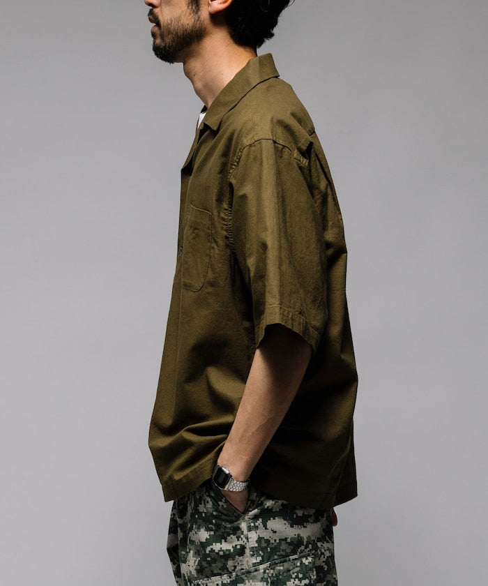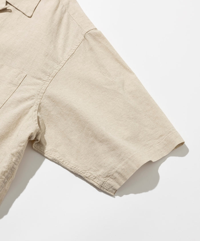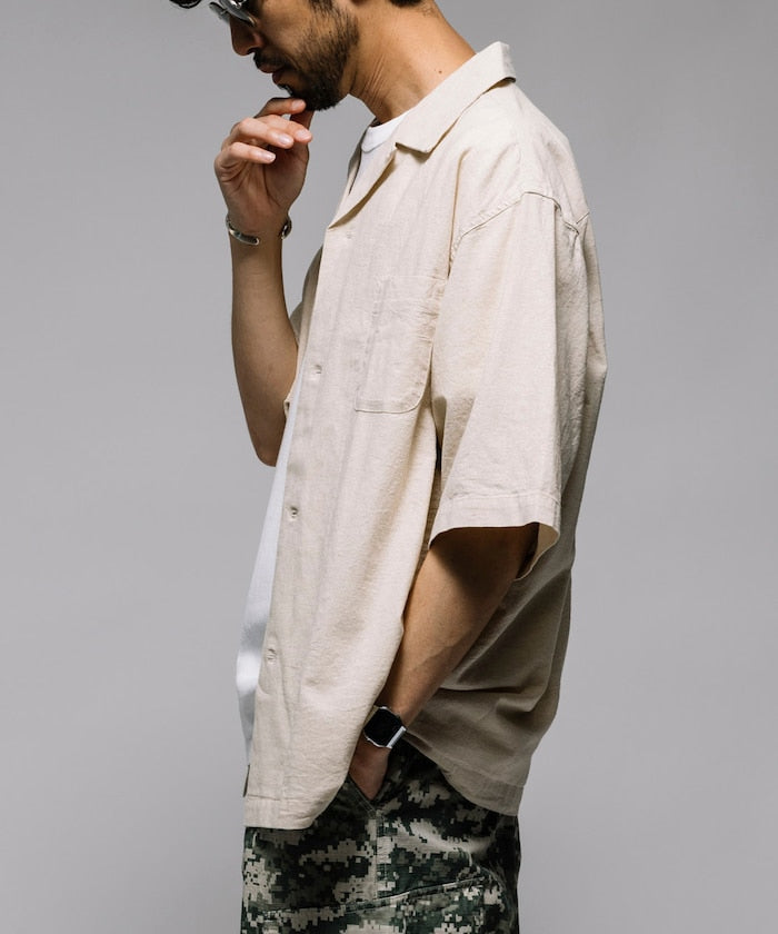 HINSON Custom cotton linen open collar short sleeve shirt 棉麻短袖襯衫