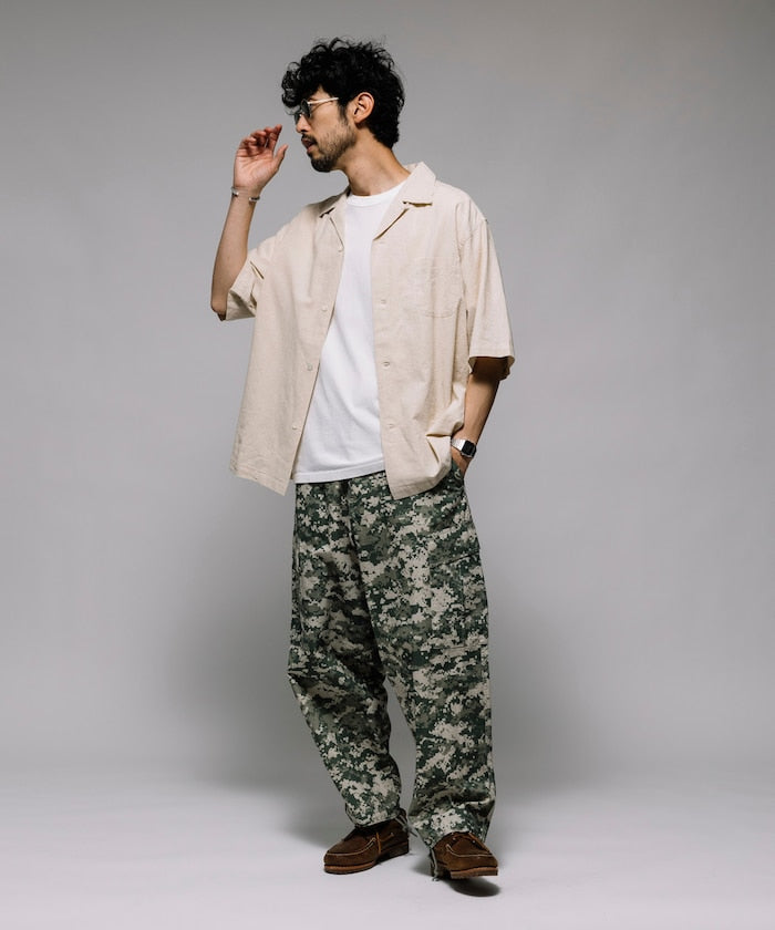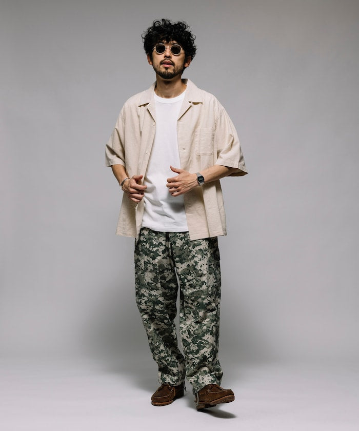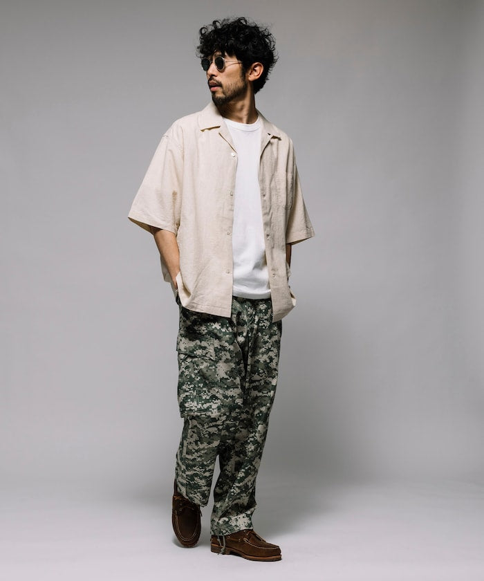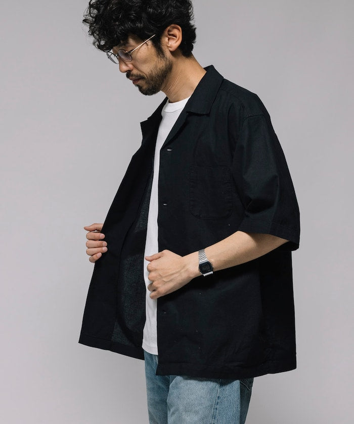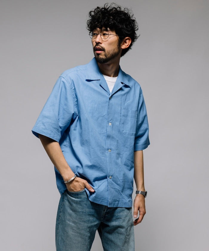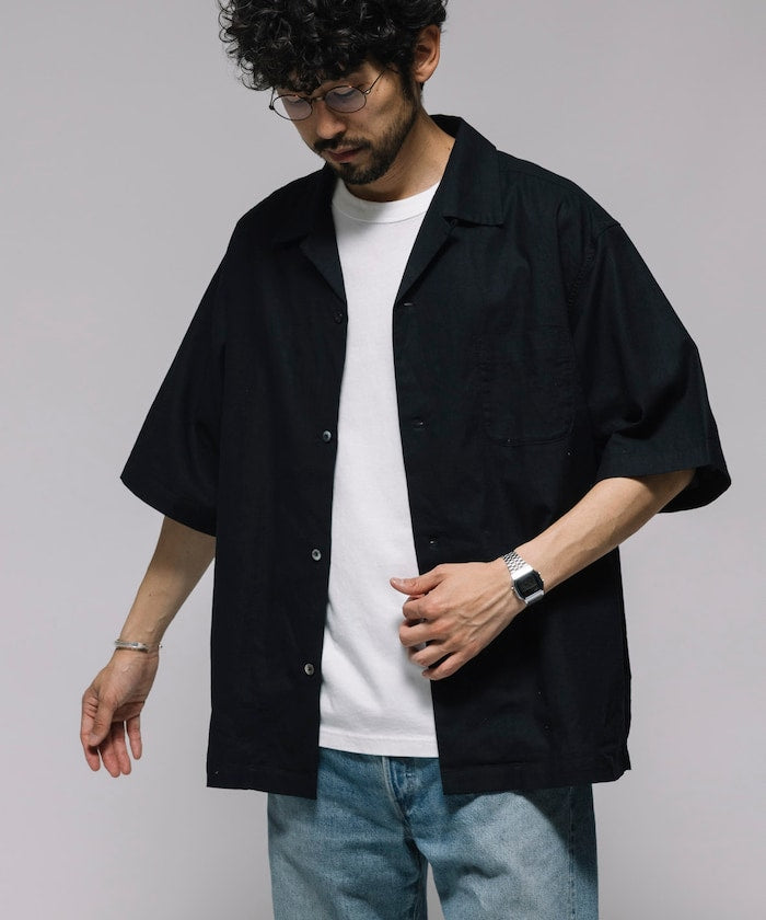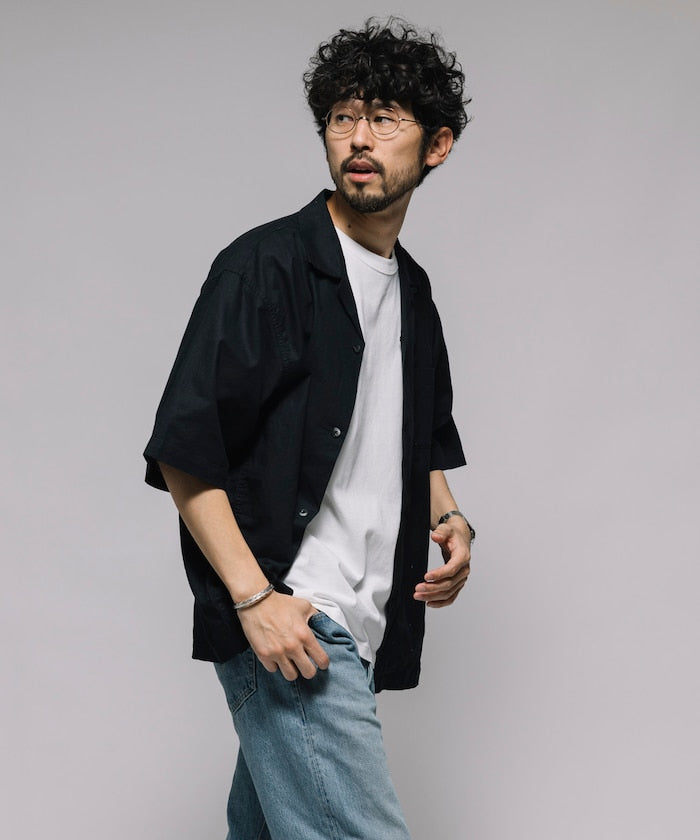 HINSON Custom cotton linen open collar short sleeve shirt 棉麻短袖襯衫