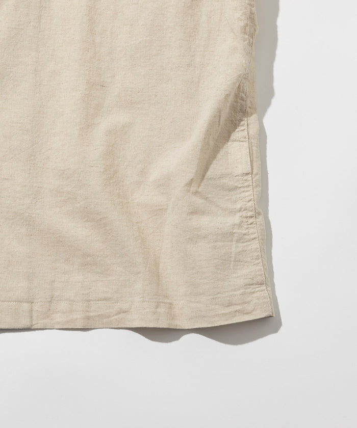 以復古軍裝襯衫為靈感,巧妙融入現代感剪裁, 使用混亞麻素材,布面帶有獨特的麻點與織紋,呈現天然素材的質感與風味,採用寬鬆的剪裁,前襟搭配貝殼釦,細節質感滿分,可作為輕薄罩衫穿搭,擁有高度實穿性。