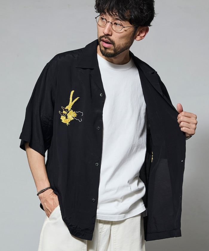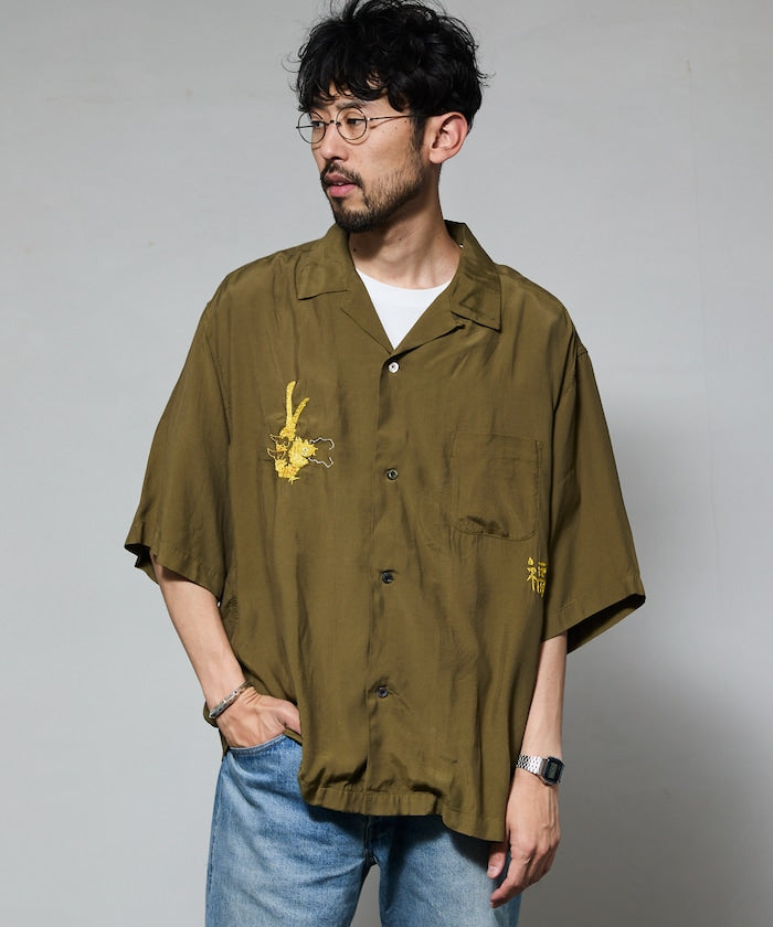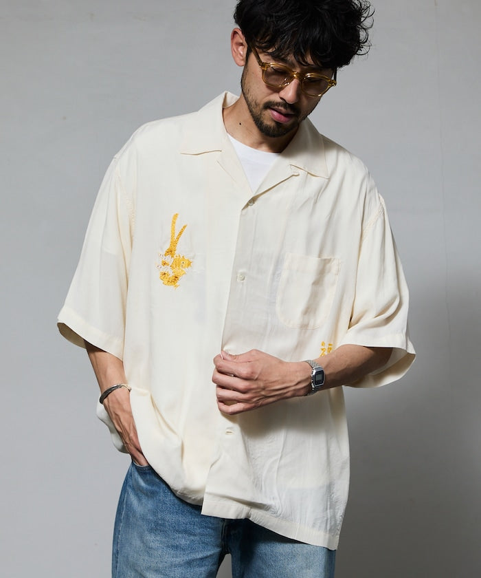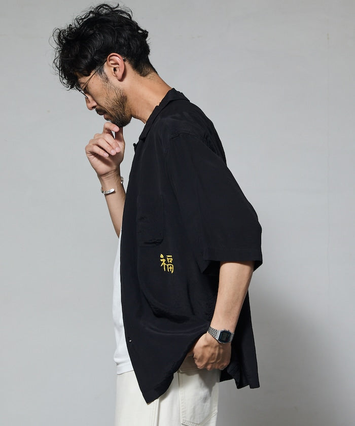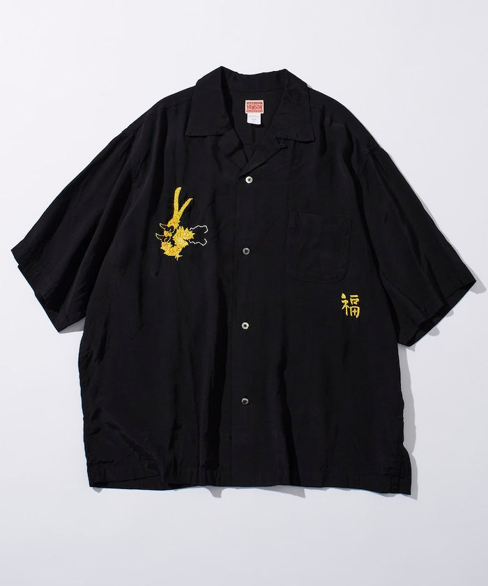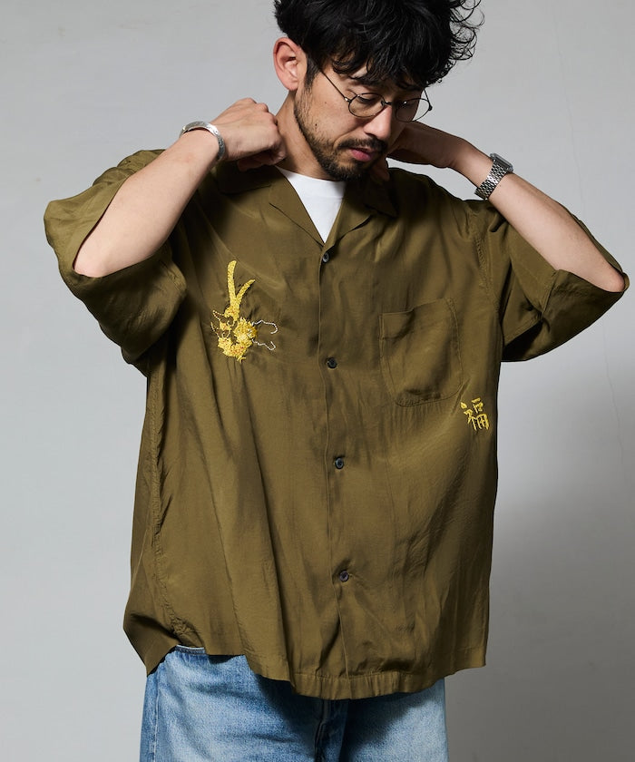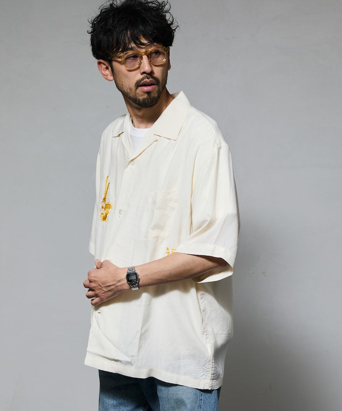 HINSON relaxed fit Nylon souvenir shirt 寬版刺繡短袖襯衫