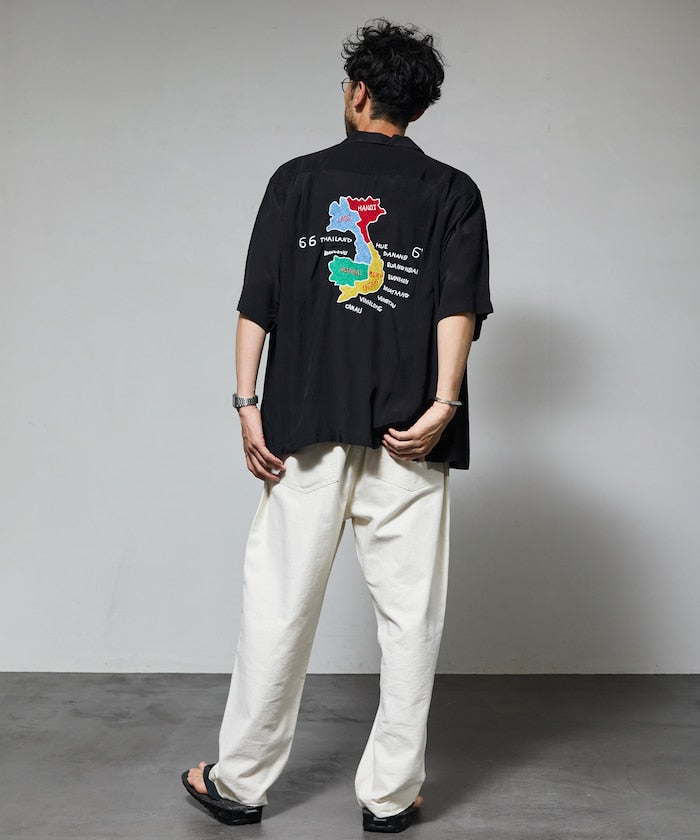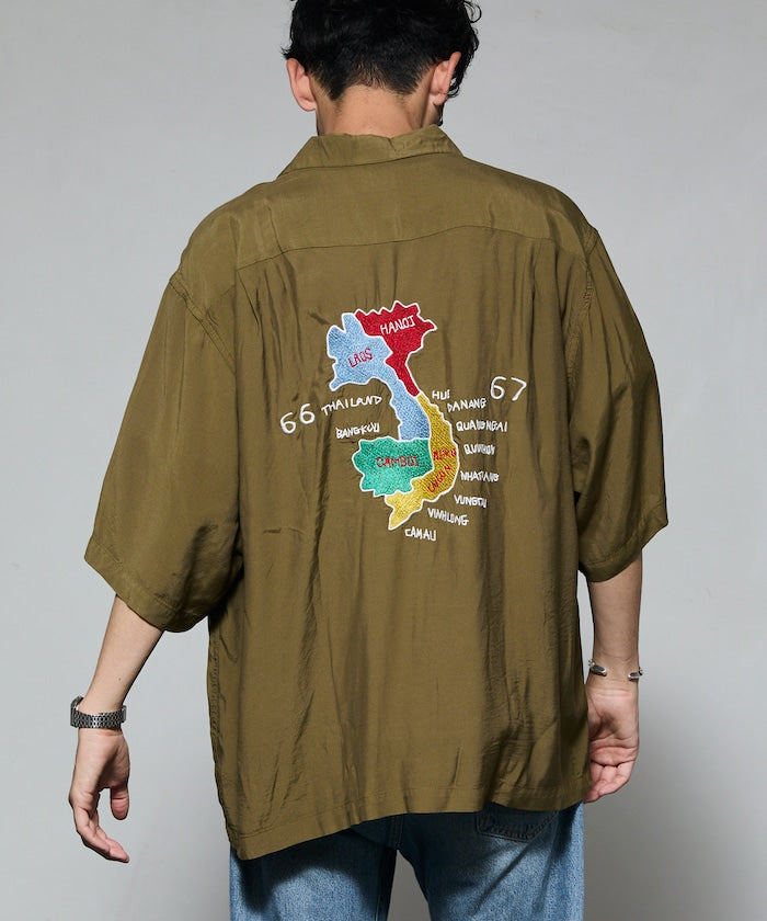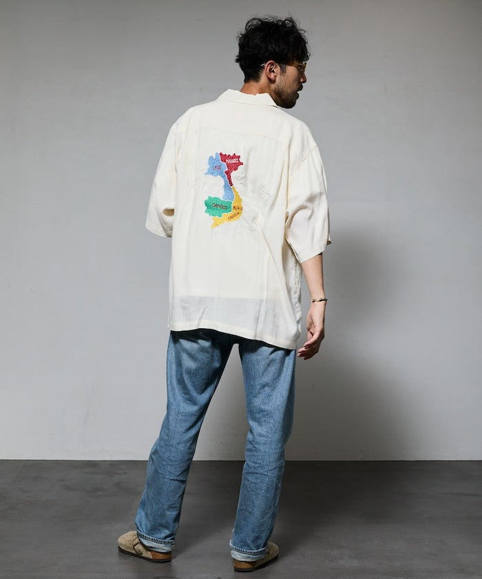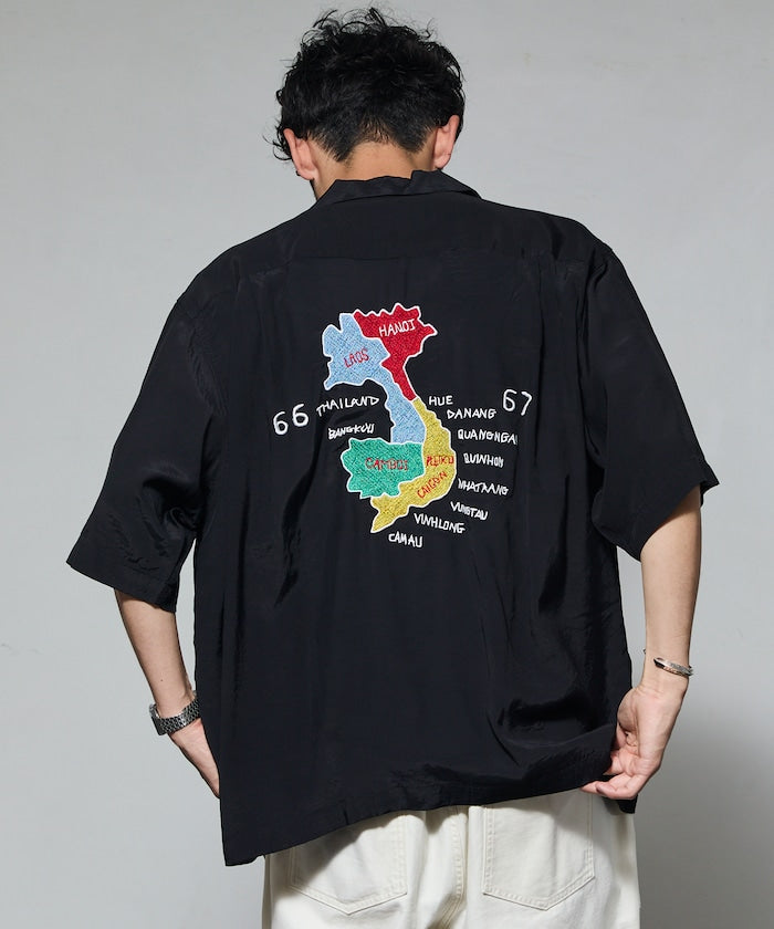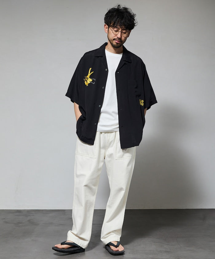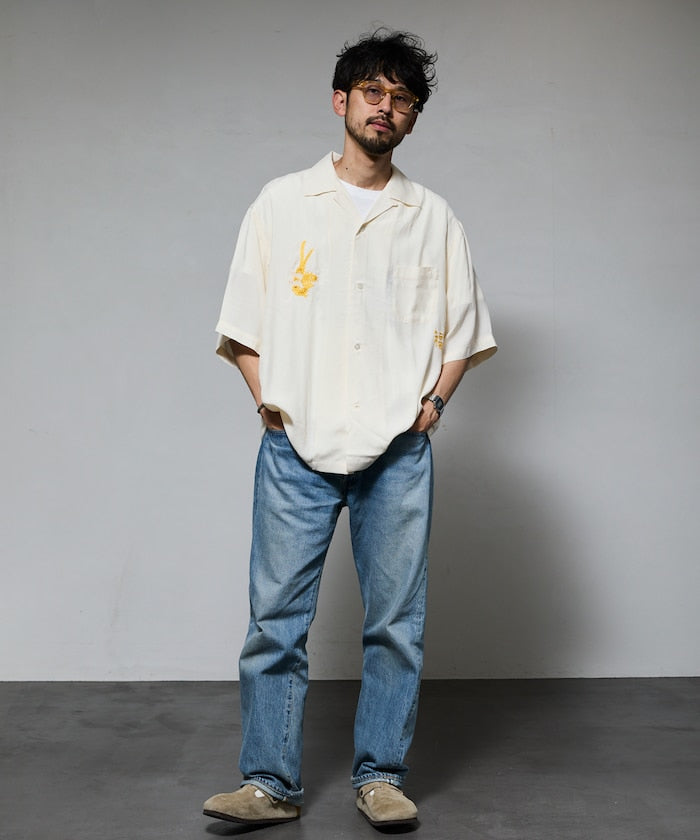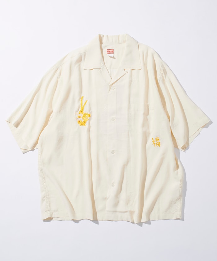 HINSON relaxed fit Nylon souvenir shirt 寬版刺繡短袖襯衫