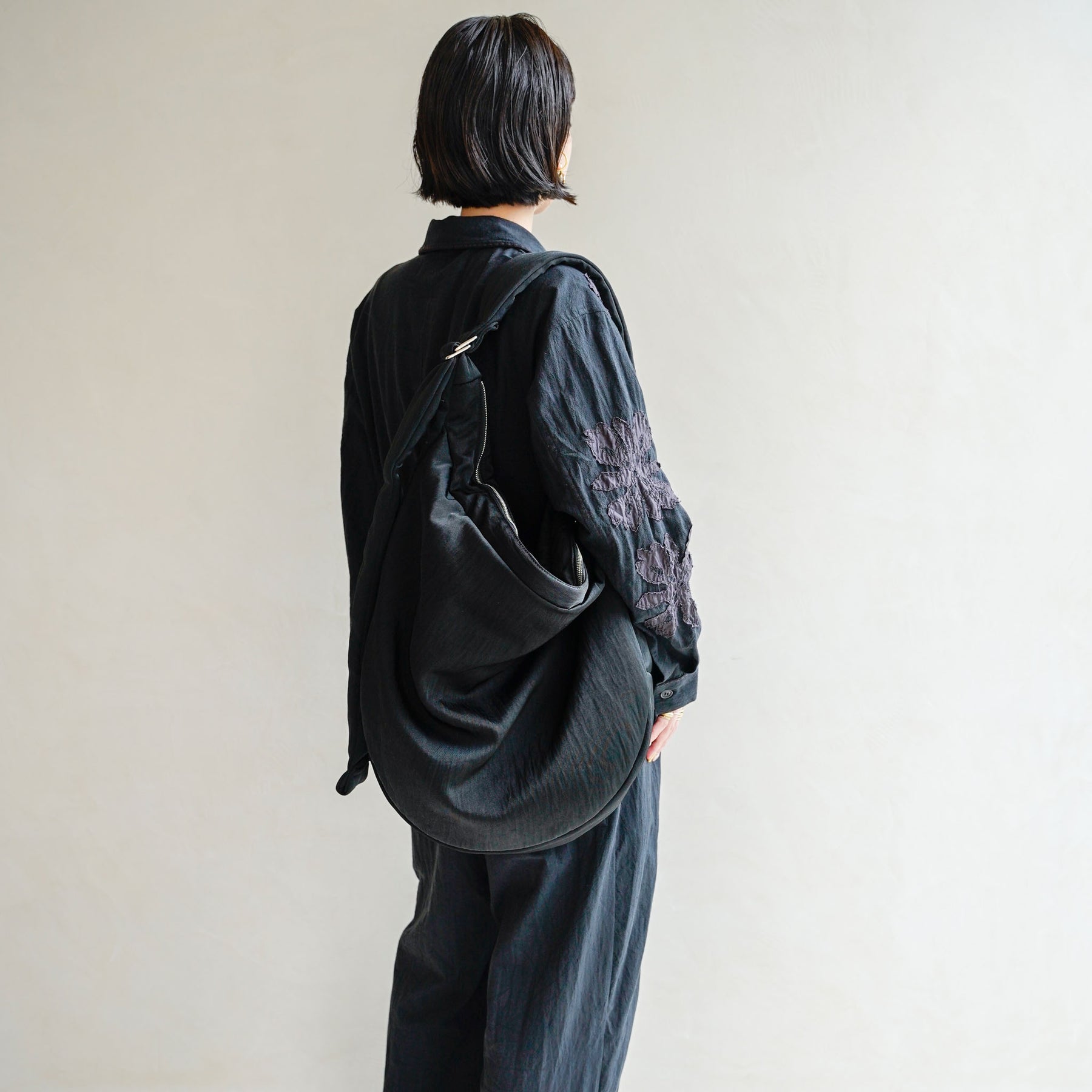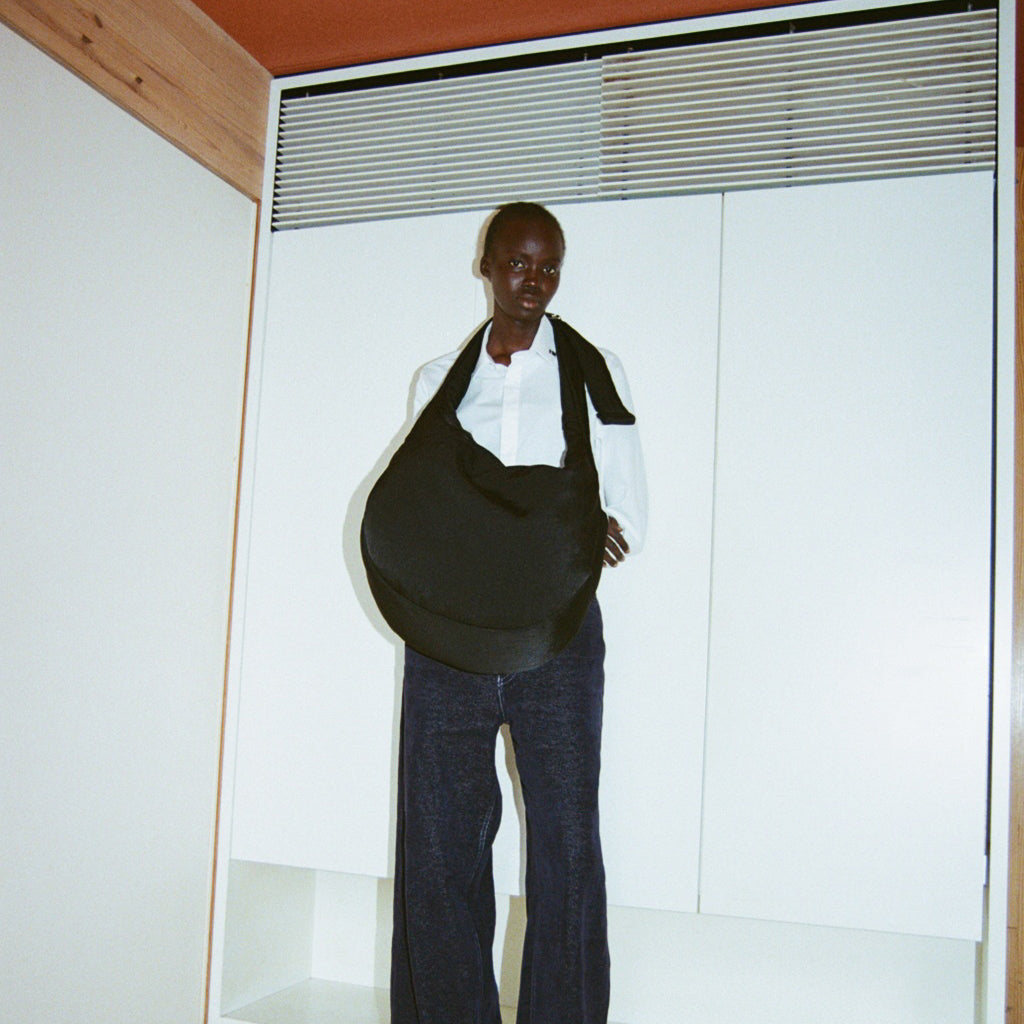 採用獨家中綿尼龍材質製作的大尺寸的半月型斜背包,容量足以容納一件輕便外套。其中CERATO BRIGHT 材質是一種由亮面尼龍纖維編織而成的中等重量獨家素材,擁有無與倫比的柔軟性和豐盈厚實的質感,經過防潑水處理,因此即使在雨天也能安心使用,PUFFER TAFFETA 這款面料則採用了具有良好觸感和耐用性的高密度線纖維,柔軟且富有垂感,擁有適當的挺度,且不易起皺,是一種充滿層次感的蓬鬆材質。包包本身可透過調節扣環來調整提把長度,無論是斜背還是肩背都可以輕鬆轉換,簡約的設計,外部兩側皆設有口袋,內部也有拉鍊口袋可收納物品,機能性十足。