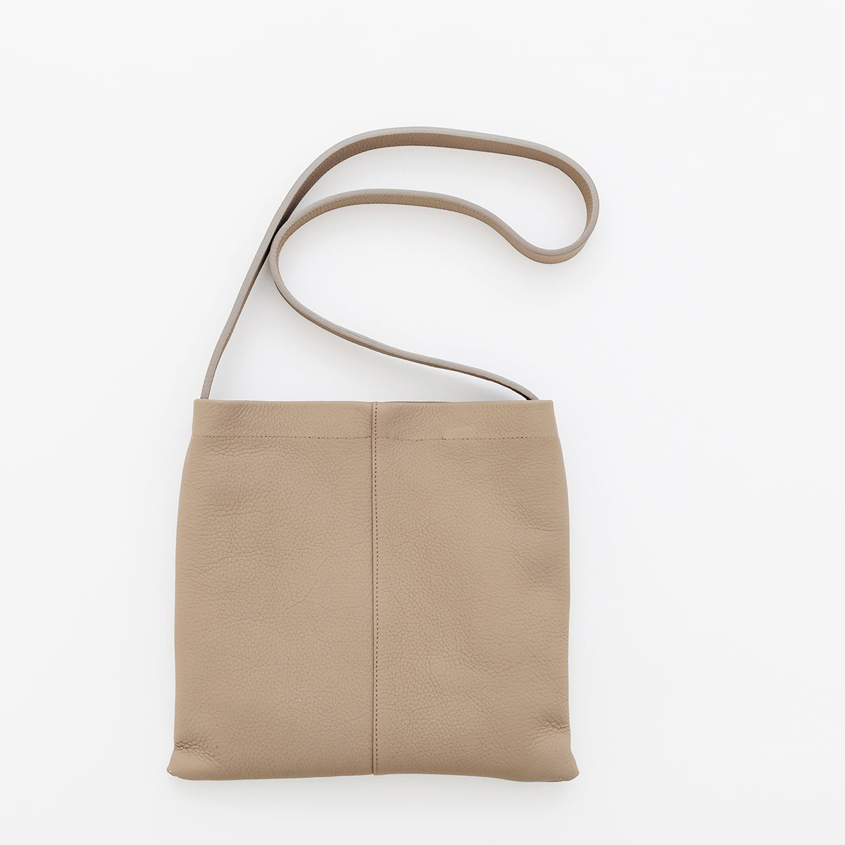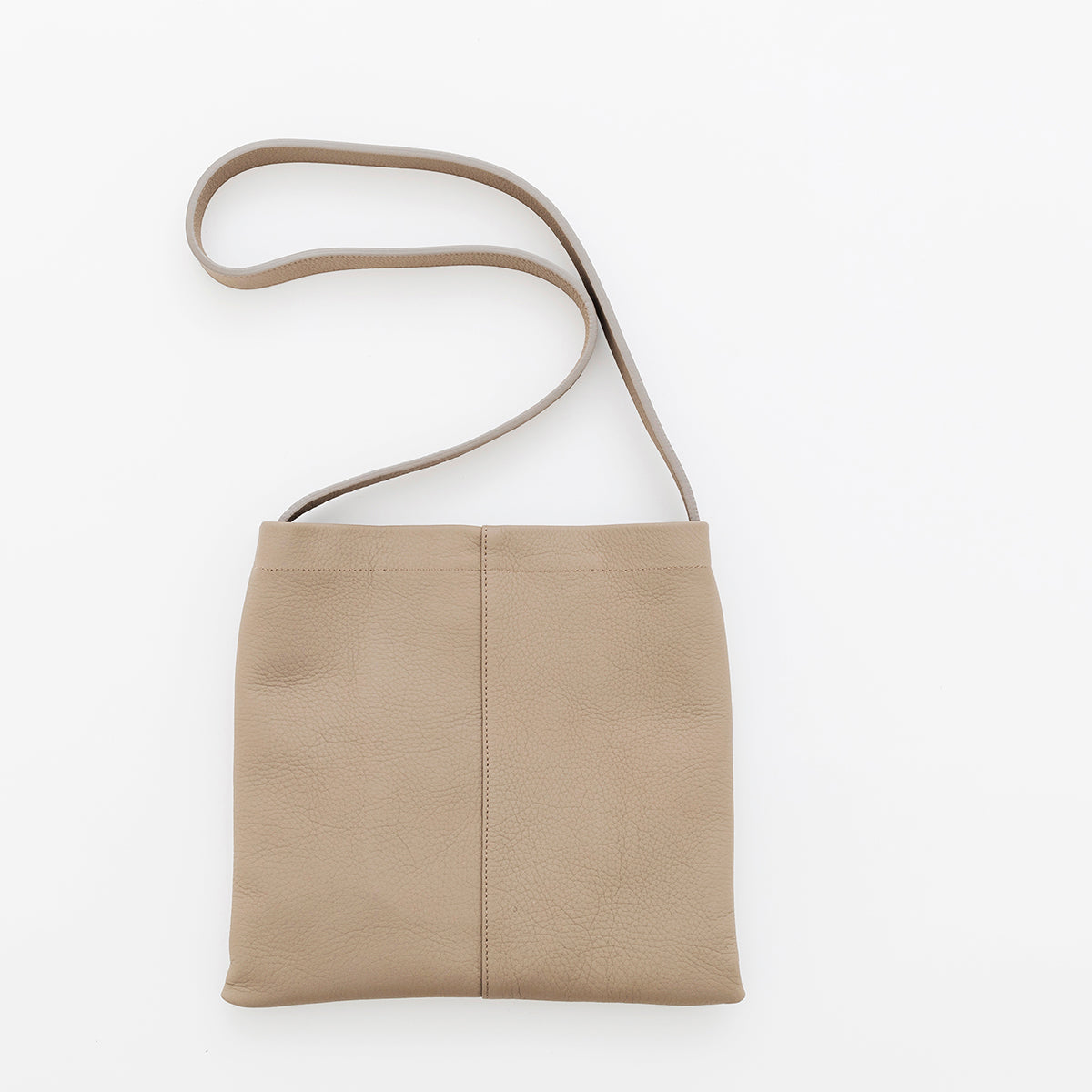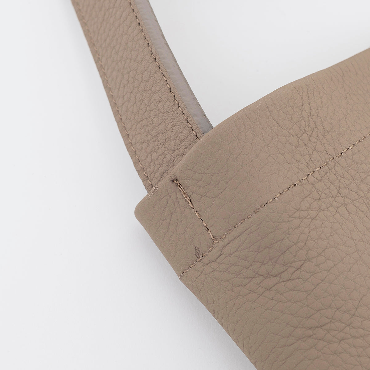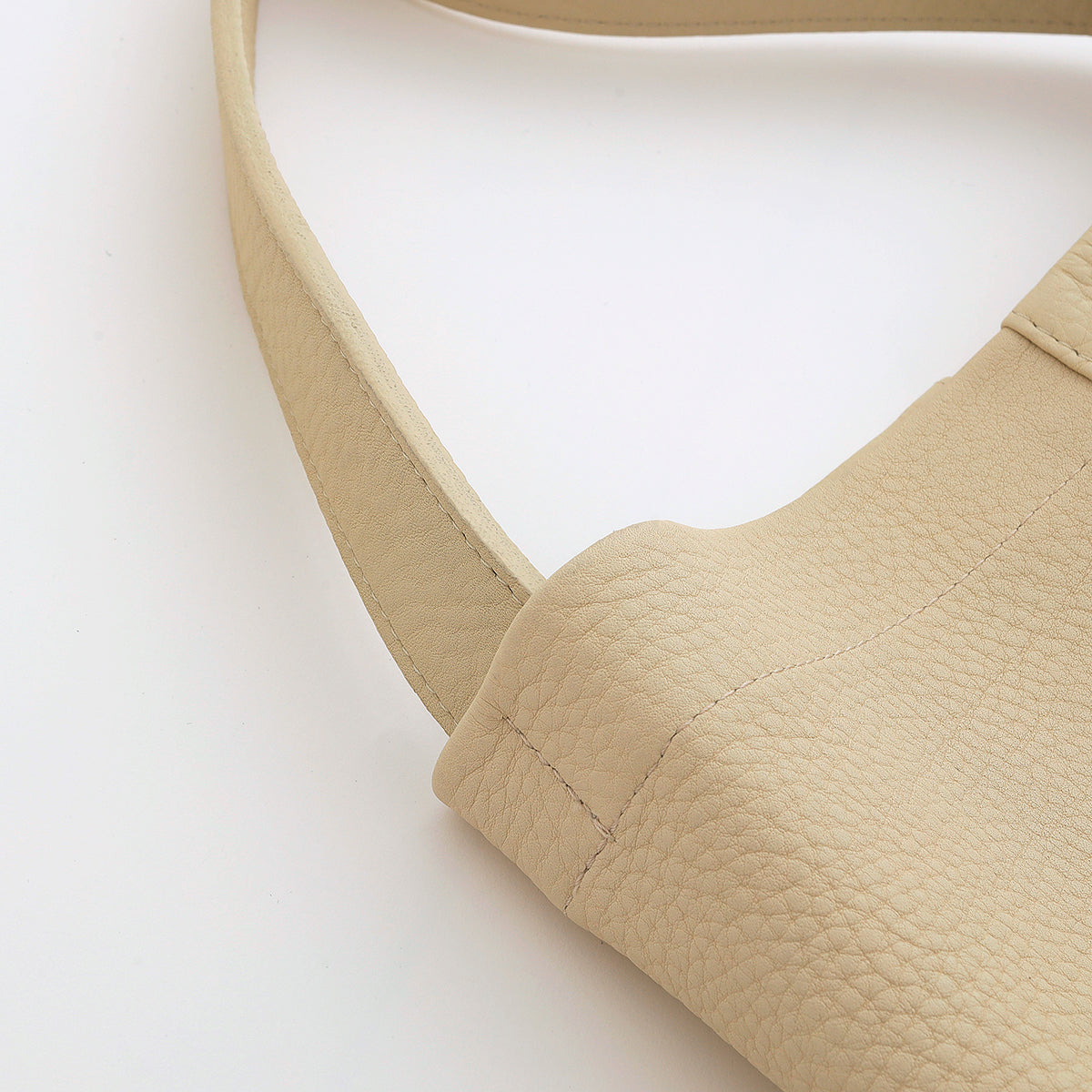 這款斜背包尺寸適中,擁有簡約俐落的設計,內部設有適合放置手機的口袋,非常適合作為日常外出的隨身包,能夠容納手機、錢包、小型化妝包等隨身物品,提供實用的收納空間。包身輕量化的設計,同時減少因皮革內裡為單片設計而導致物品沾附絨毛的問題,此外,肩背帶由兩層皮革拼合製成,厚實但柔軟度恰到好處,提供舒適的緩衝感受。極簡的設計風格,無論男女皆可輕鬆搭配各種造型,成為日常穿搭中的實用單品。