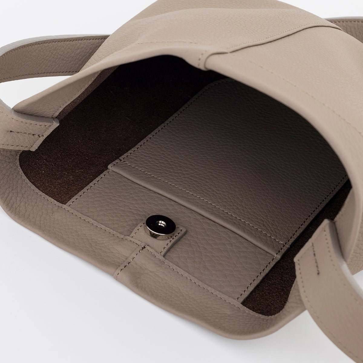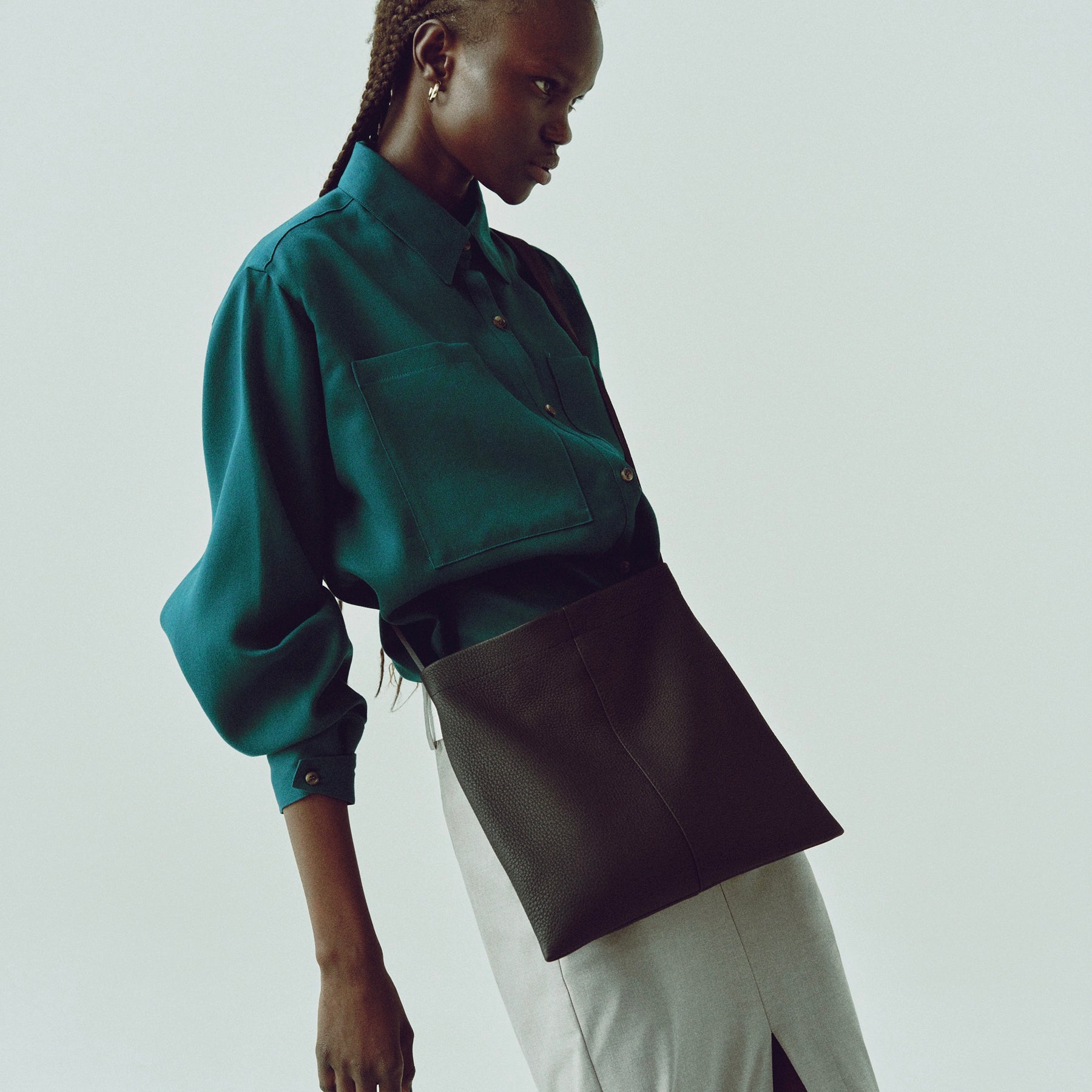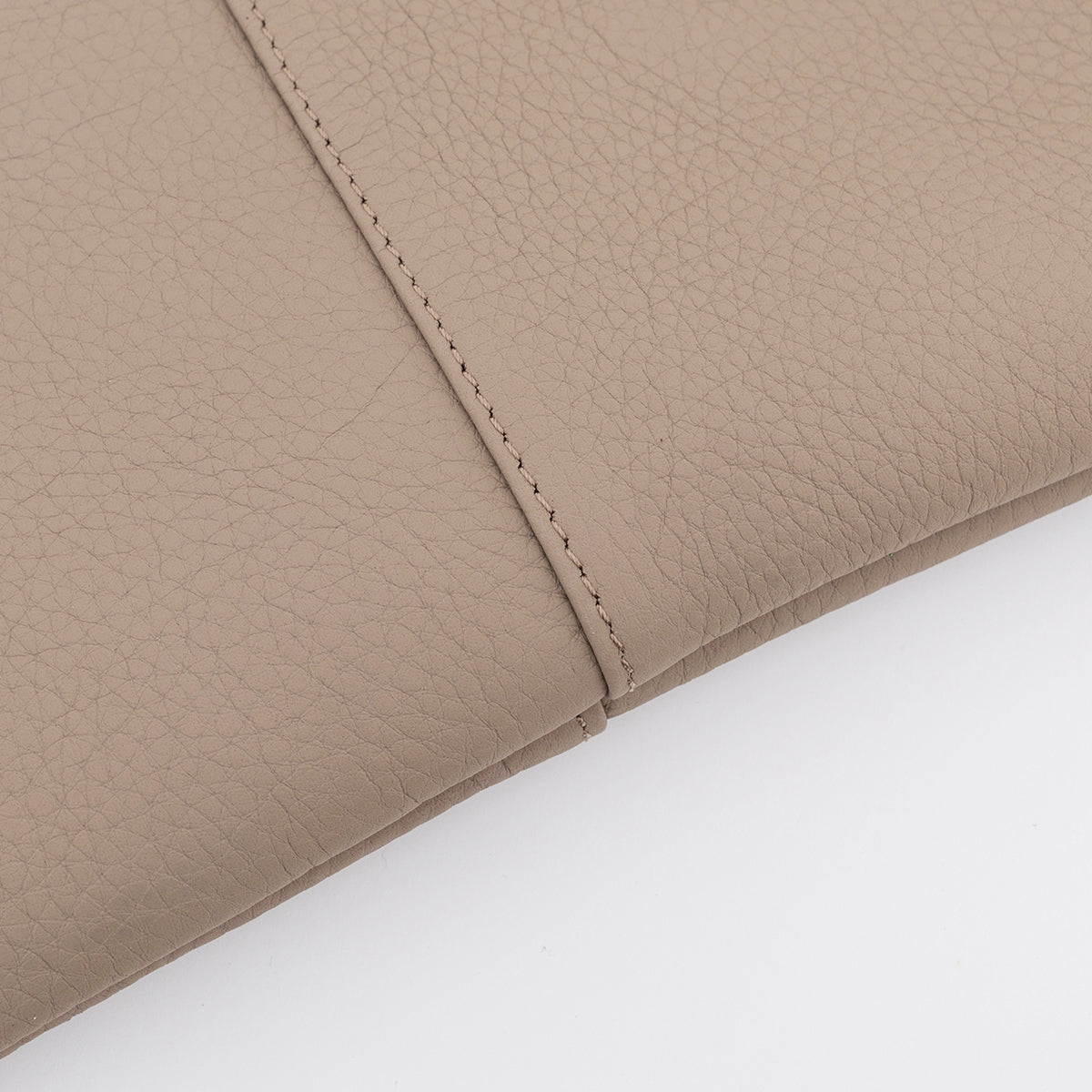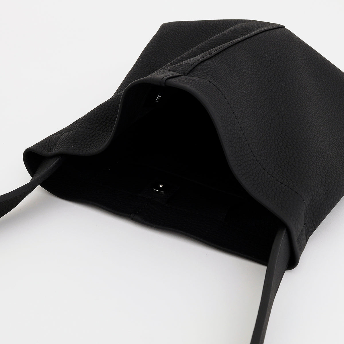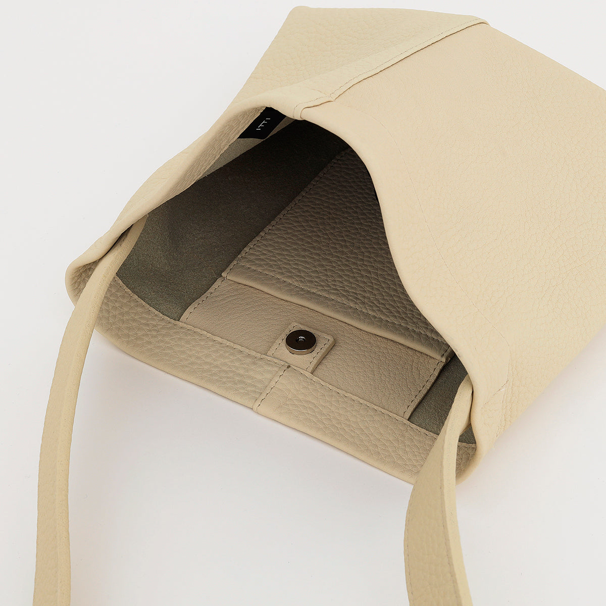 這款斜背包尺寸適中,擁有簡約俐落的設計,內部設有適合放置手機的口袋,非常適合作為日常外出的隨身包,能夠容納手機、錢包、小型化妝包等隨身物品,提供實用的收納空間。包身輕量化的設計,同時減少因皮革內裡為單片設計而導致物品沾附絨毛的問題,此外,肩背帶由兩層皮革拼合製成,厚實但柔軟度恰到好處,提供舒適的緩衝感受。極簡的設計風格,無論男女皆可輕鬆搭配各種造型,成為日常穿搭中的實用單品。