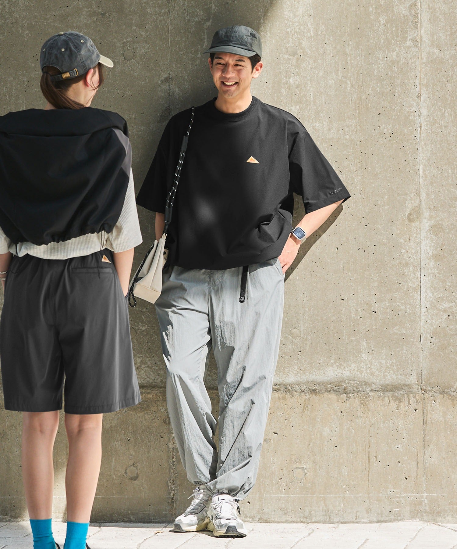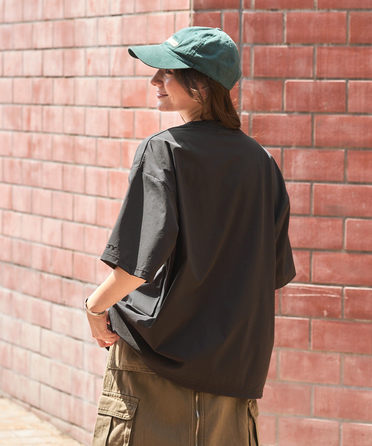選用彈性材質,不僅穿起來靈活舒適,還具備優異的紫外線防護功能,可以無懼陽光,安心出遊,胸前飾有象徵品牌的三角形織章,腰部設有抽繩設計,可依喜好調整版型,打造出理想的穿搭比例,整體為寬鬆剪裁,提供舒適自在的穿著體驗。