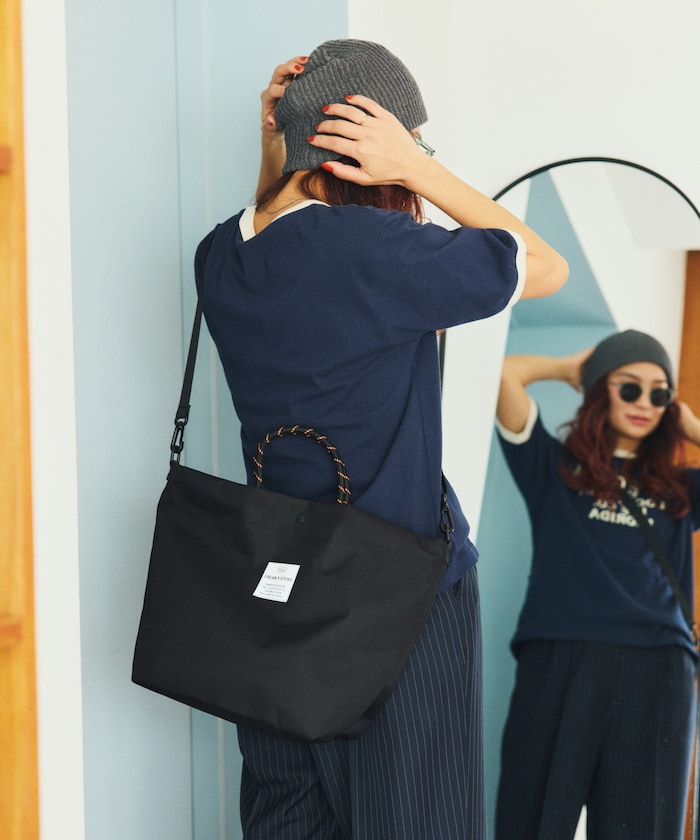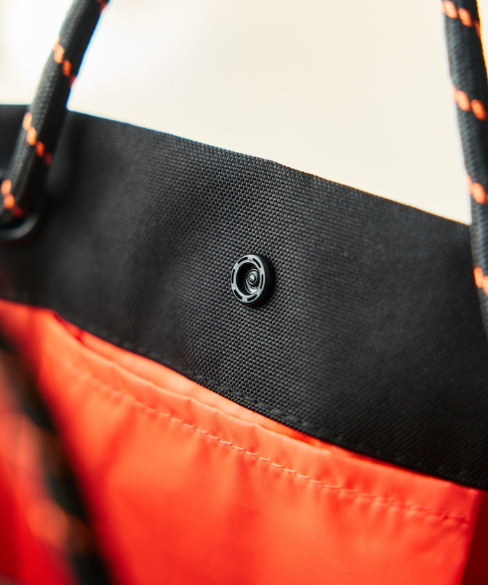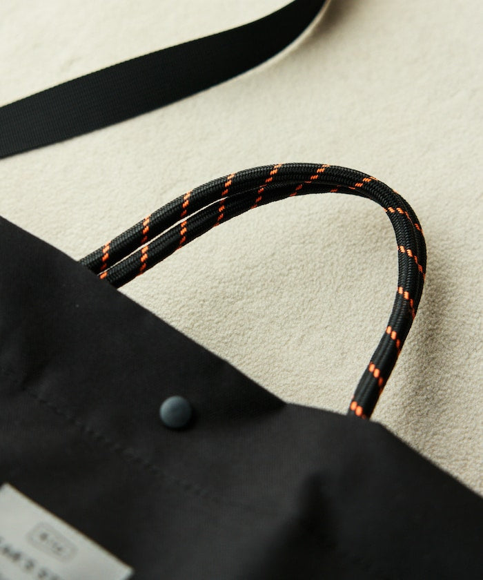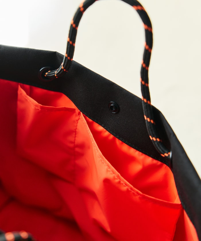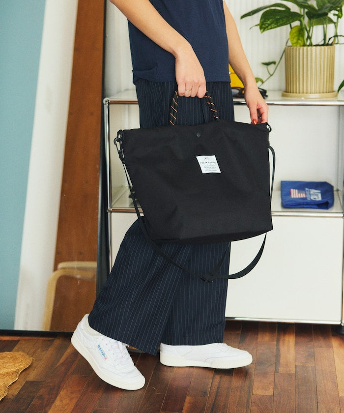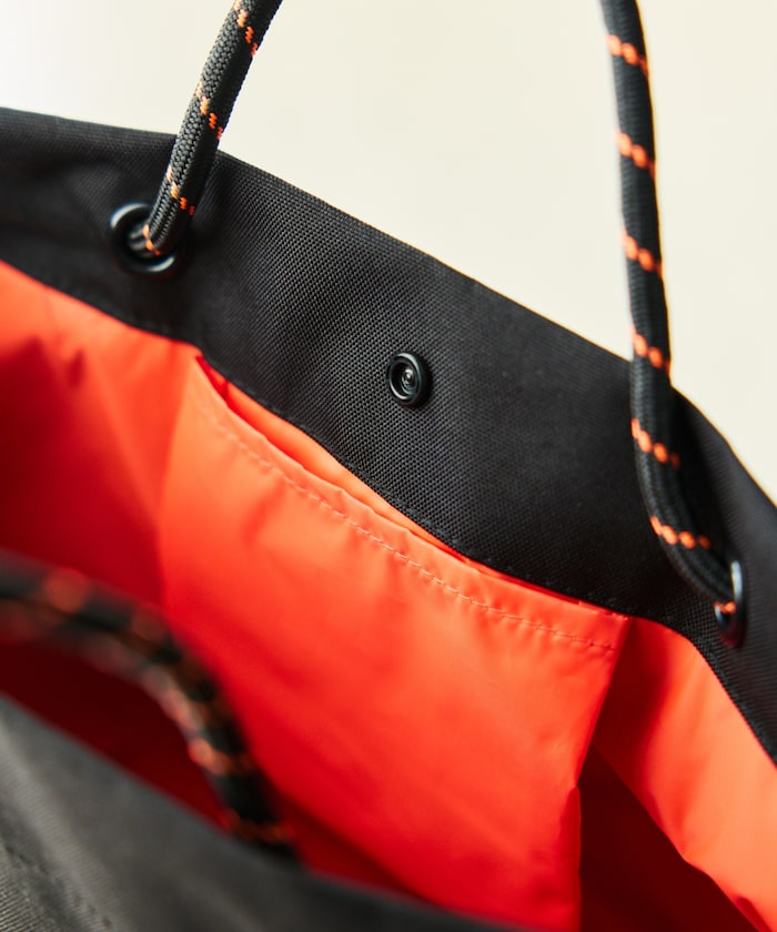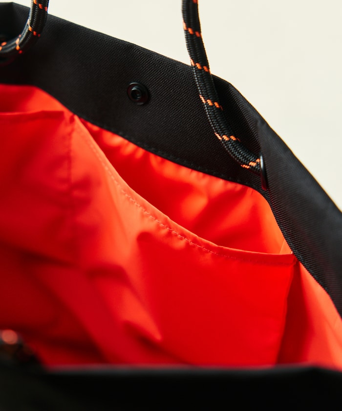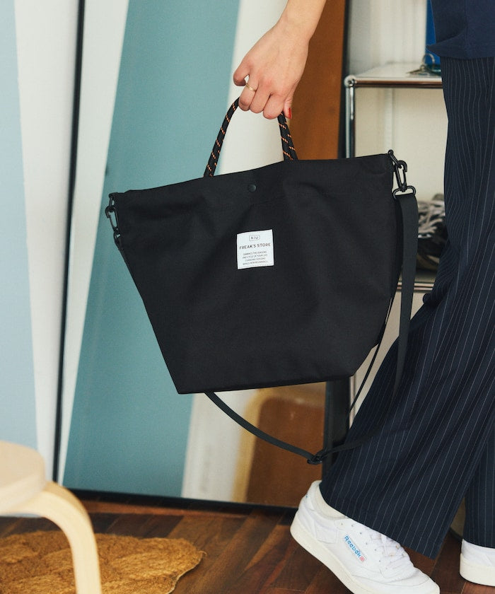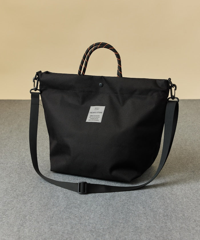 KIU 與 FREAK'S STORE 合作的托特包,採用高耐久 600D 面料,經過防潑水處理的聚酯纖維材質,抗污耐用,內部設有多個口袋,小物收納更便利, 開闔處配有按扣設計,可防止物品掉出,另放入 11 吋筆記型電腦,兼顧日常通勤與休閒需求,背帶為可拆卸設計,可作手提或肩背,靈活變換風格,兼具機能性與設計感。